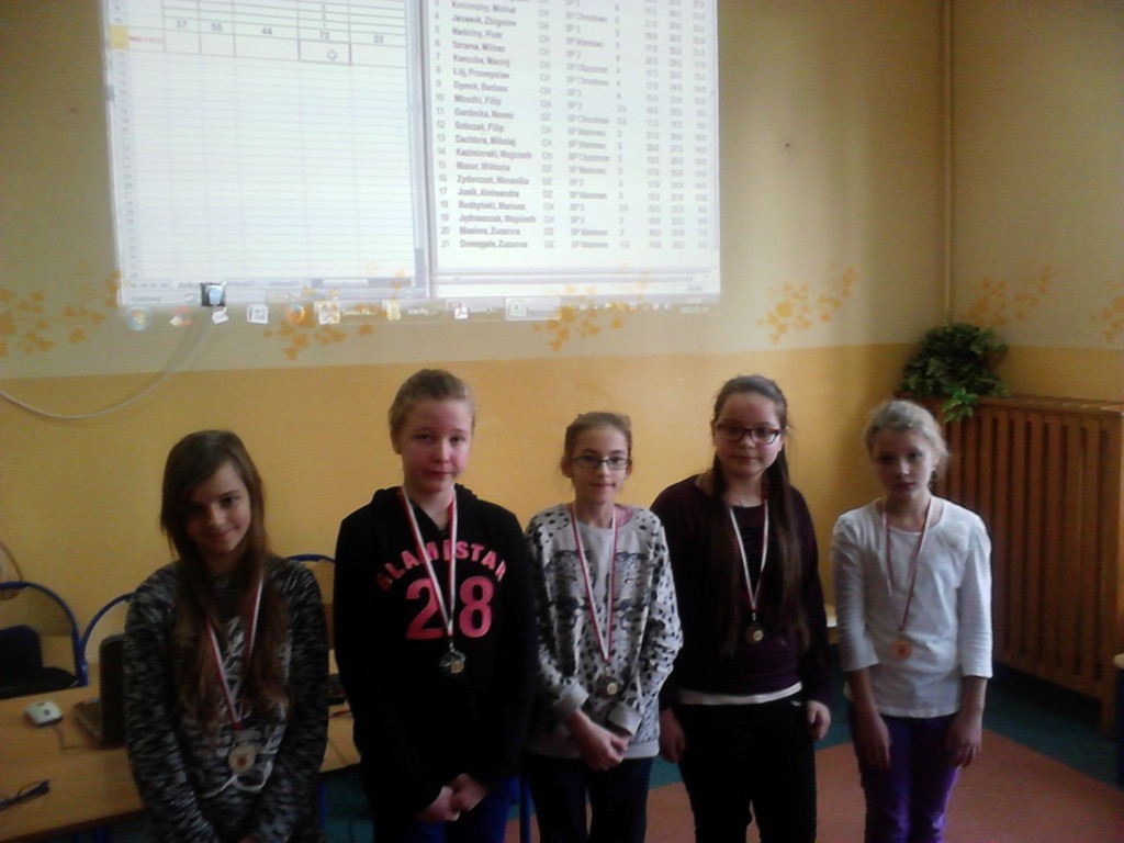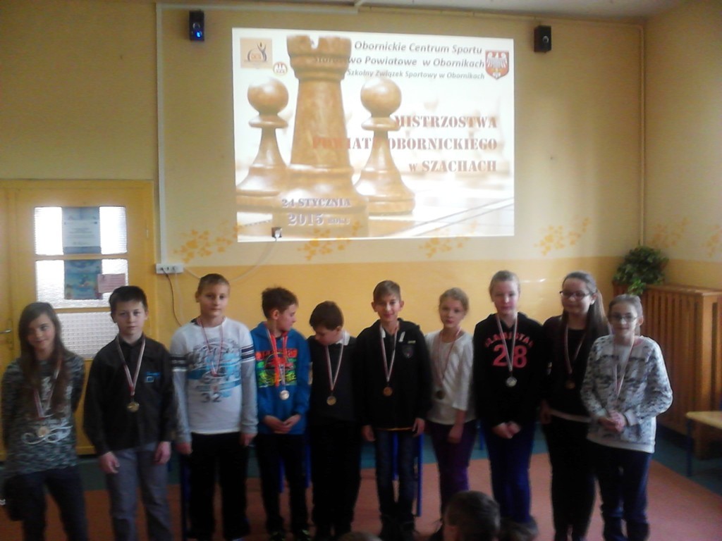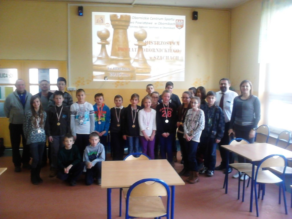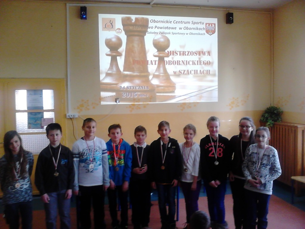 W rozegranych w sobotę 24 stycznia Mistrzostwach Powiatu Obornickiego w Szachach, reprezentacja naszej szkoły odniosła wielki sukces. W kategorii indywidualnej chłopców Patryk Kasperek z klasy VI zdobył złoty medal i został Mistrzem Powiatu Obornickiego. W kategorii dziewcząt srebrny medal wywalczła Wiktoria Mazur także z klasy VI. Wielkie brawa dla naszych mistrzów!!! Równie dobre miejsca zajęli: Aleksandra Jusik - IV, Zuzanna Masiera - V oraz Piotr Nadolny - V w swoich kategoriach.