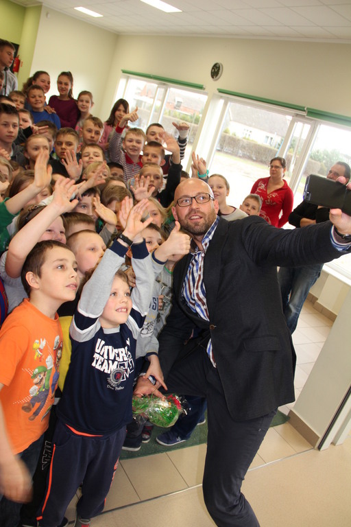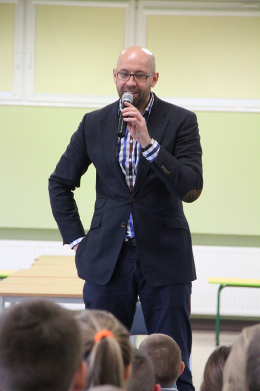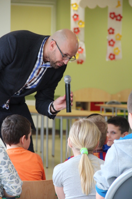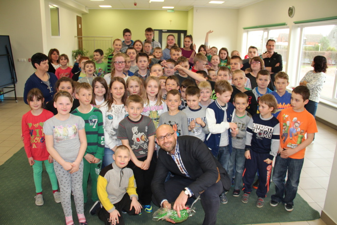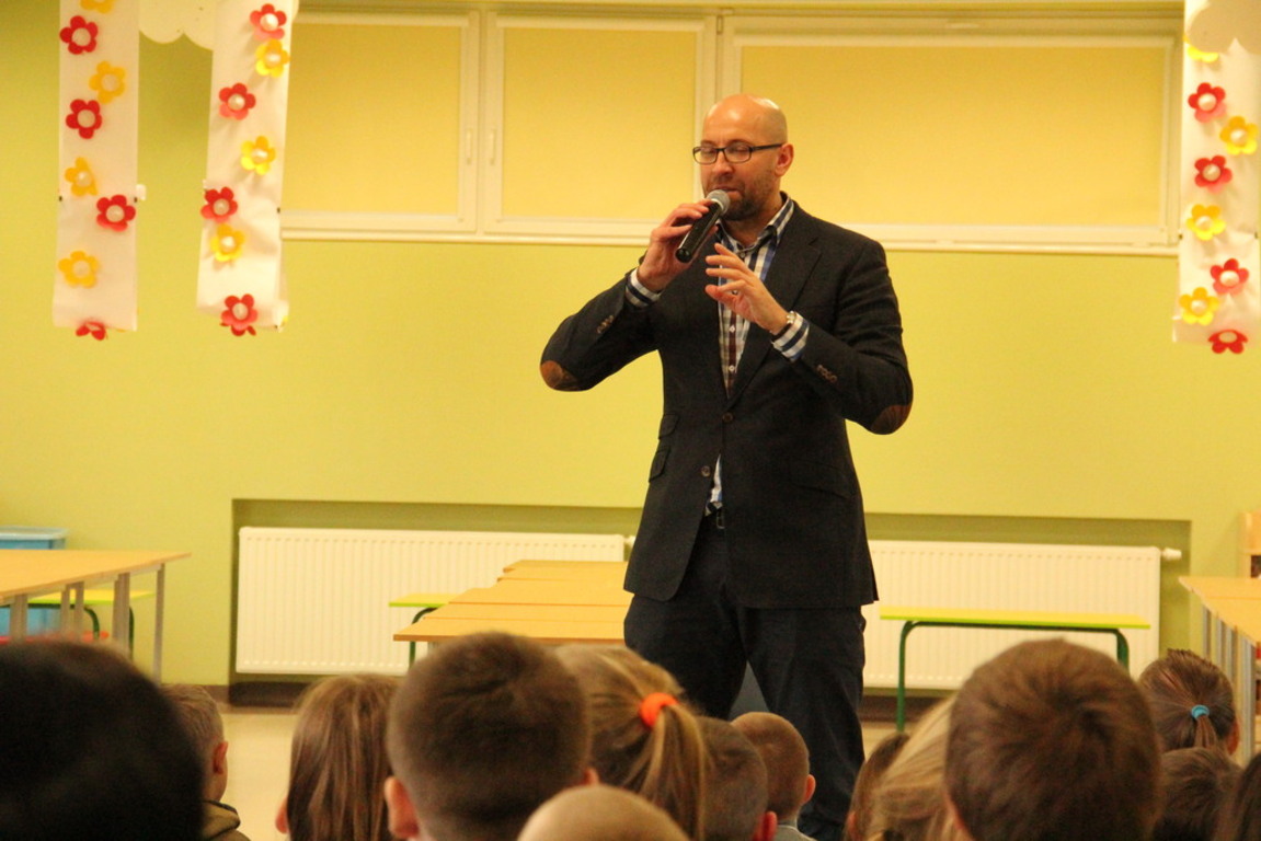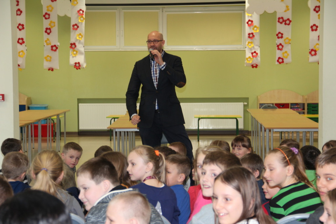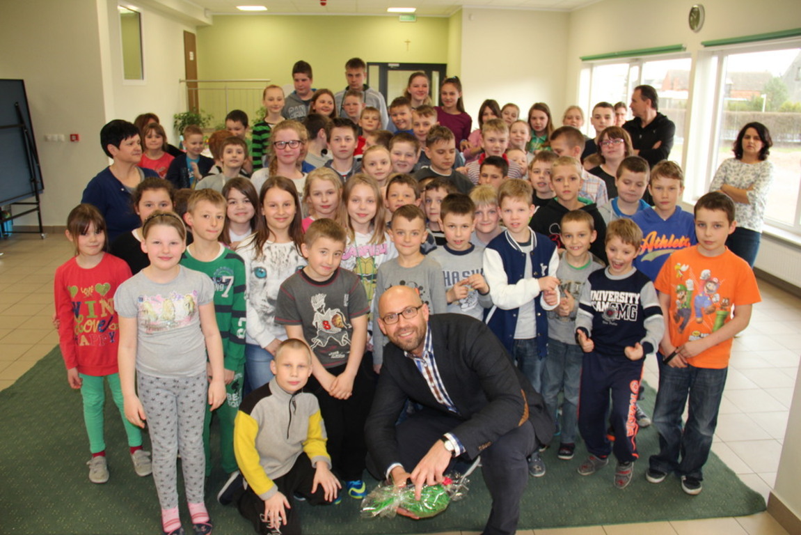 Wizyta posła Jakuba Rutnickiego w szkole była bardzo wyczekiwanym momentem w życiu naszych uczniów. To druga tak ważna wizyta w naszej placówce. We wrześniu, przy okazji otwarcia nowych murów naszej szkoły, mieliśmy przyjemność spotkać się z senatorem Filipem Libickim – Senatorem naszego okręgu. Pan Jakub Rutnicki zapoznał nas z pracą posła, mówił o możliwościach jakie daje mu obejmowanie tego stanowiska. Opowiadał o swoich sportowych pasjach i życiu osobistym, również takie pytania zadawały dzieci. Ogłosił konkurs, w którym zwyciężyła Dominika Wieczorek a nagrodę obiecał przesłać. Umówił się na rozgrywki piłkarskie z naszymi uczniami.