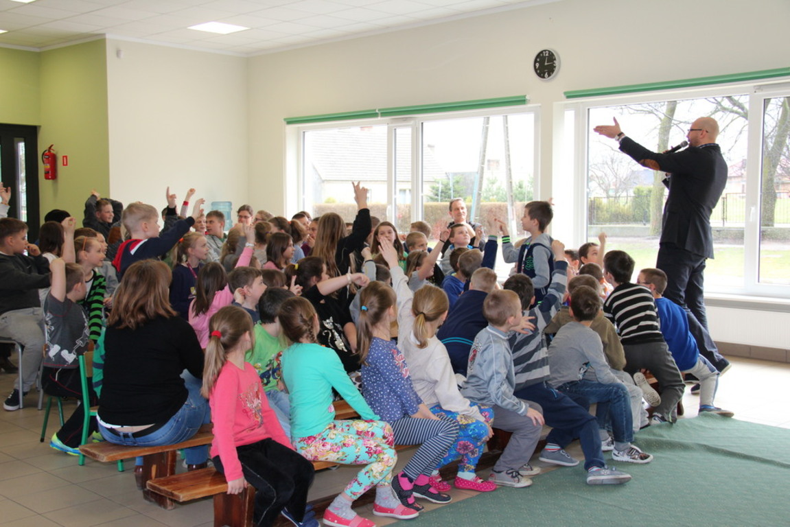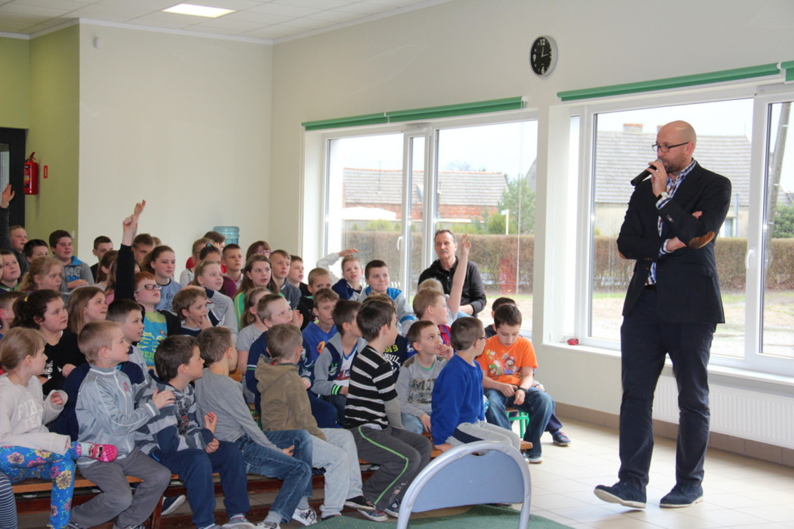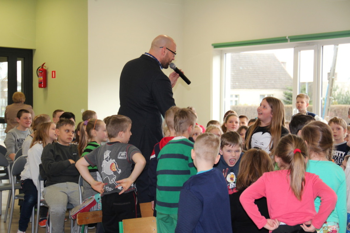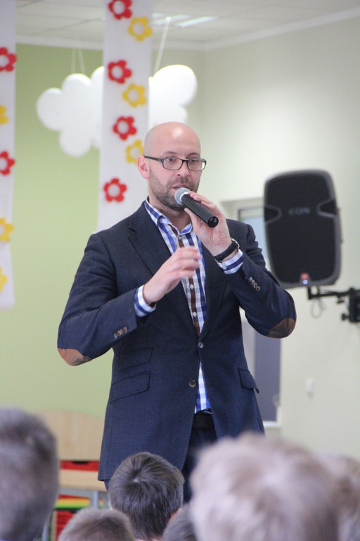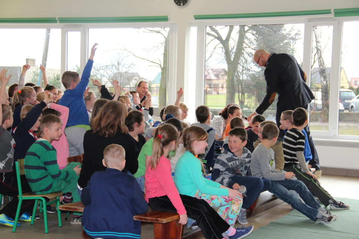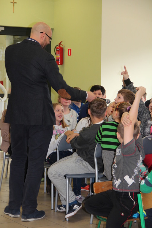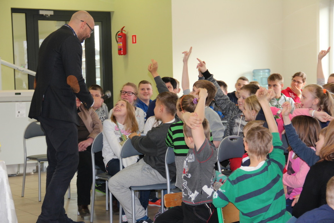 Wizyta posła Jakuba Rutnickiego w szkole była bardzo wyczekiwanym momentem w życiu naszych uczniów. To druga tak ważna wizyta w naszej placówce. We wrześniu, przy okazji otwarcia nowych murów naszej szkoły, mieliśmy przyjemność spotkać się z senatorem Filipem Libickim – Senatorem naszego okręgu. Pan Jakub Rutnicki zapoznał nas z pracą posła, mówił o możliwościach jakie daje mu obejmowanie tego stanowiska. Opowiadał o swoich sportowych pasjach i życiu osobistym, również takie pytania zadawały dzieci. Ogłosił konkurs, w którym zwyciężyła Dominika Wieczorek a nagrodę obiecał przesłać. Umówił się na rozgrywki piłkarskie z naszymi uczniami.