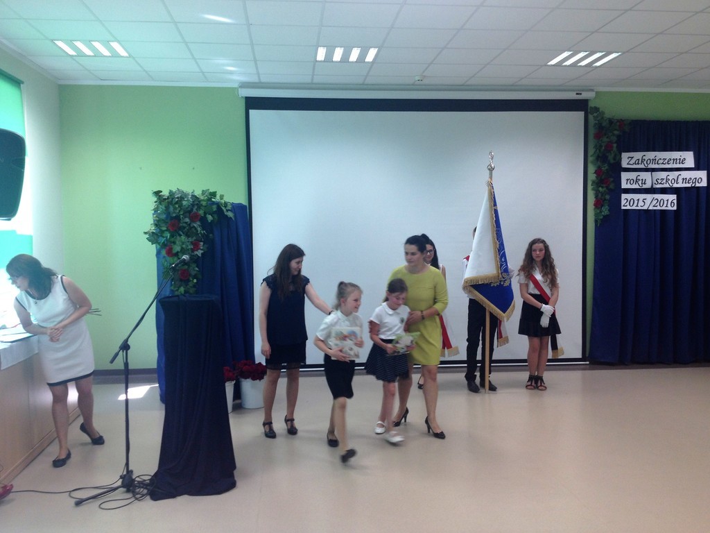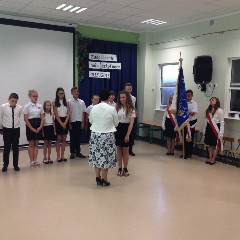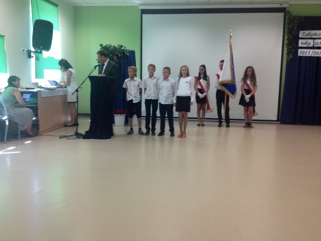 Pani dyrektor Danuta Jagodzińska w swoim przemówieniu pogratulowała wszystkim uczniom osiągnięć w roku szkolnym 2015/2016, przypomniała także o zasadach bezpiecznego wypoczynku, ale przede wszystkim życzyła im udanych wakacji, pełnych niezapomnianych przygód oraz wrażeń.
