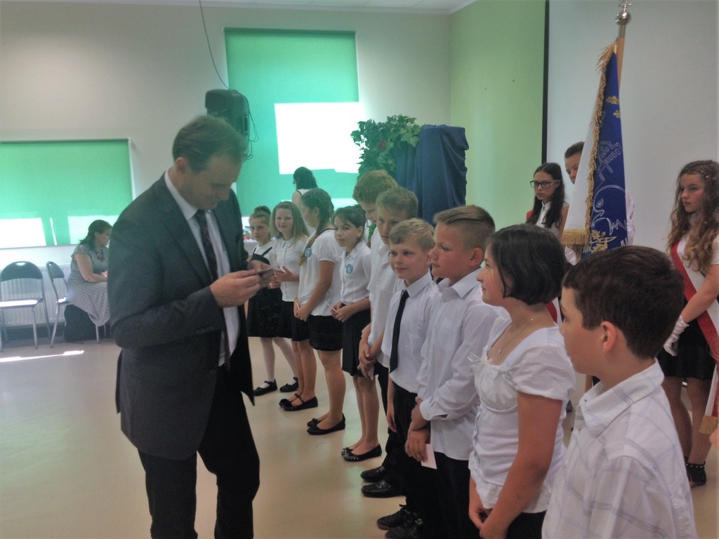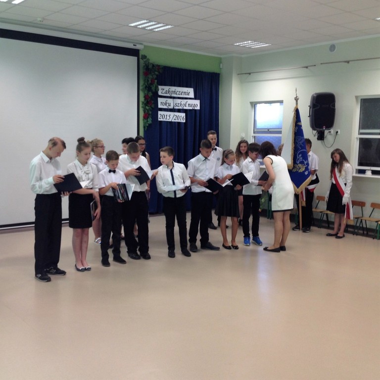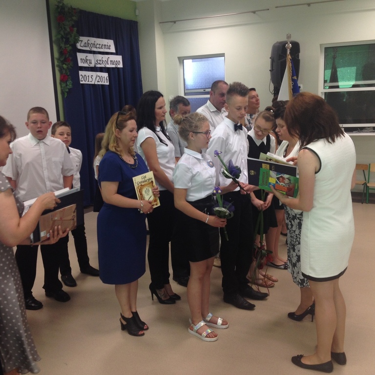 Następnie wraz z wychowawcami wręczyła listy gratulacyjne dla rodziców i nagrody książkowe uczniom z bardzo dobrymi wynikami w nauce i wzorowym zachowaniem, podsumowano również wyniki konkursów i zawodów szkolnych.