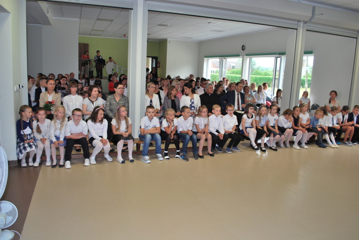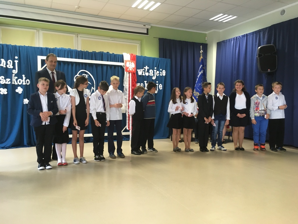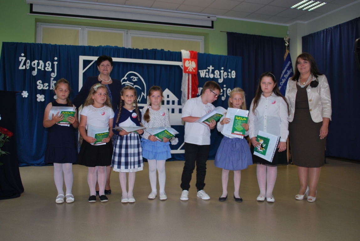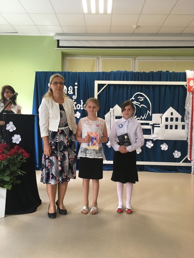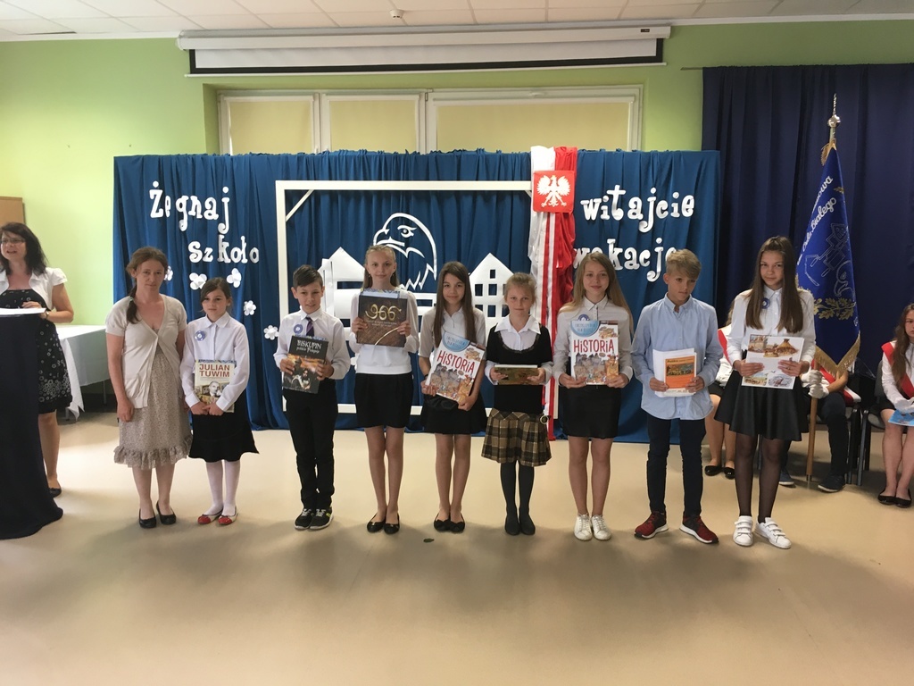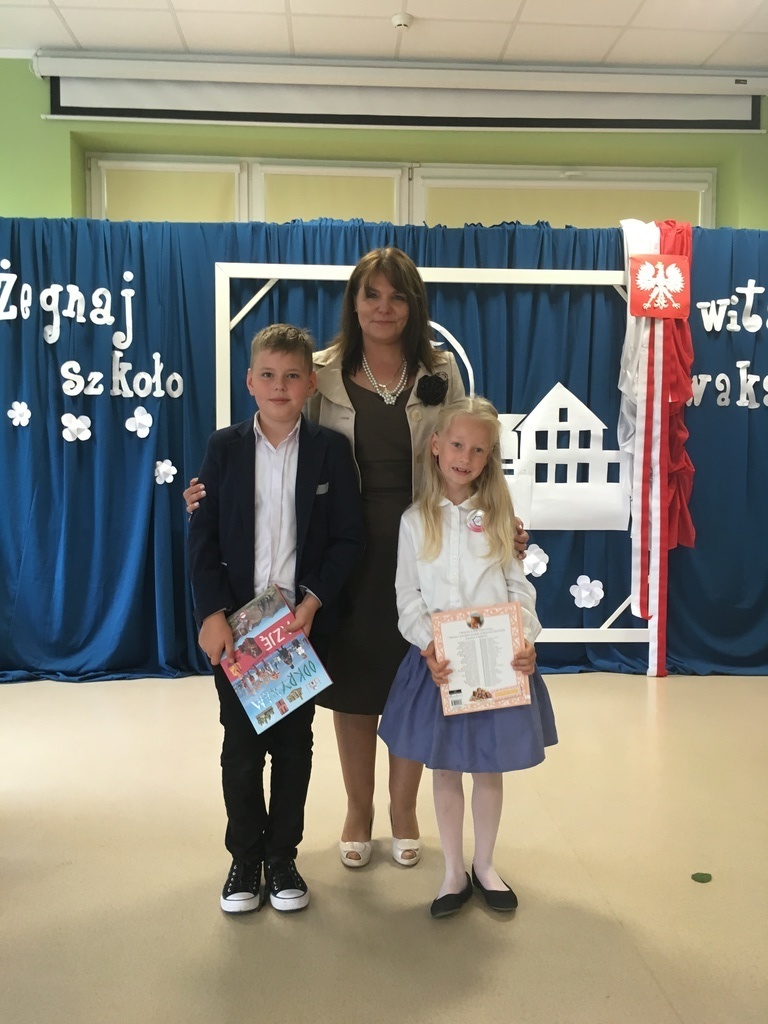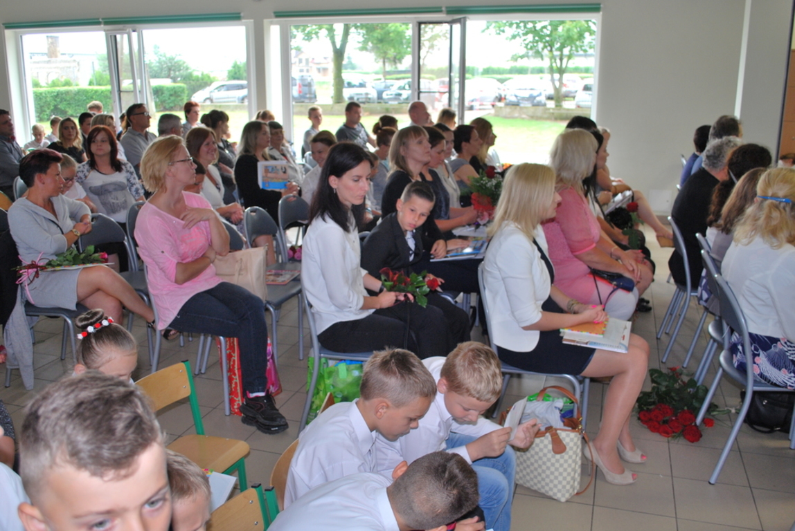 23 czerwca odbyła się uroczystść zakończenia roku szkolnego 2016/2017, poprzedzona mszą świętą w kościele parafilanym. Było to wyjatkowe zakończenie, na co zwróciła uwagę w przemówieniu Pani Dyrektor Danuta Jagodzińska podkręlając, iż w tym roku nie żegnamy absolwentów, gdyż szóstoklaściści pozostaną w murach naszej szkoły. Po wręczeniu świadectw z wyróżnieniem oraz odznak wzrorowego ucznia dzieciom z klas I-III, wręczono świadectwa z czerwonobiałym paskiem najlepszym uczniom z klas IV-VI oraz złote i srebrne odznaki, a także listy gratulacyjne dla rodziców. Nie zabrakło nagród dla najbardziej zasłużonych w dziedzinie matematyki, muzyki, plastyki, religii oraz dla sportowców. Wyróżniono także uczniów ze 100% frekwencją oraz odznaczających się wysoką, a wręcz wzorową kulturą osobistą. Doceniono także niezwykłe zacięcie czytelnicze. Zaś uczniowie, którzy cały rok pilnie pracowali na pierwsze w swym życiu uprawnienia do poruszania się po drogach publicznych otrzymali karty rowerowe. Część artystyczną umilii nam nasi mali instrumentaliści Aleksandra Wieczorek, Gabriela Salitra, Nastazja Każmierczak-Śróda, Iga Dyczkowska. Całość zakończył występ dzieci z klas I-VI, przygotowany we wspólpracy Pań Alicji Andrzejczak-Bieli, Katarzyny Chudzickiej-Budnej, Patrycji Schneider, Alicji Forysiak i Renaty Wrzeszcz. Wszystkim życzymy zasłużonego wakacyjnego wypoczynku!