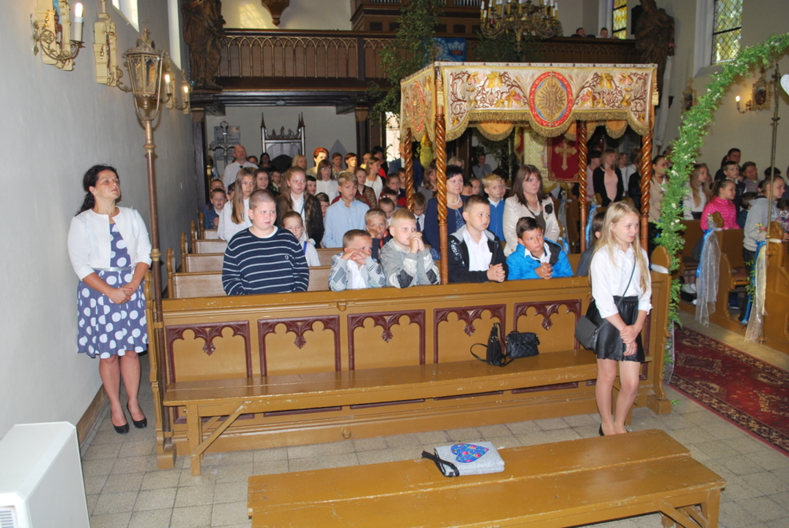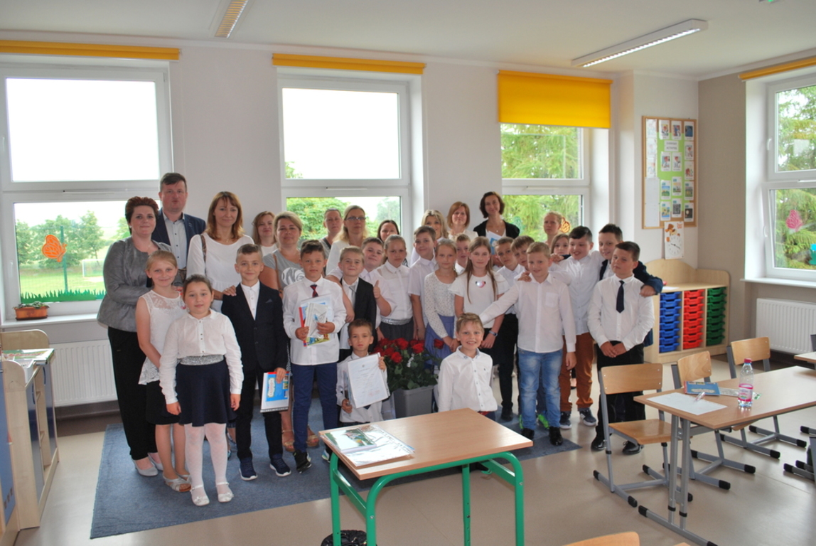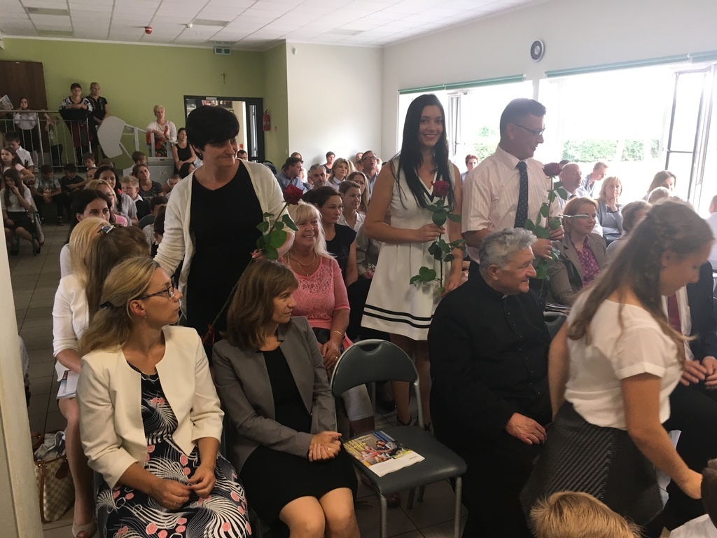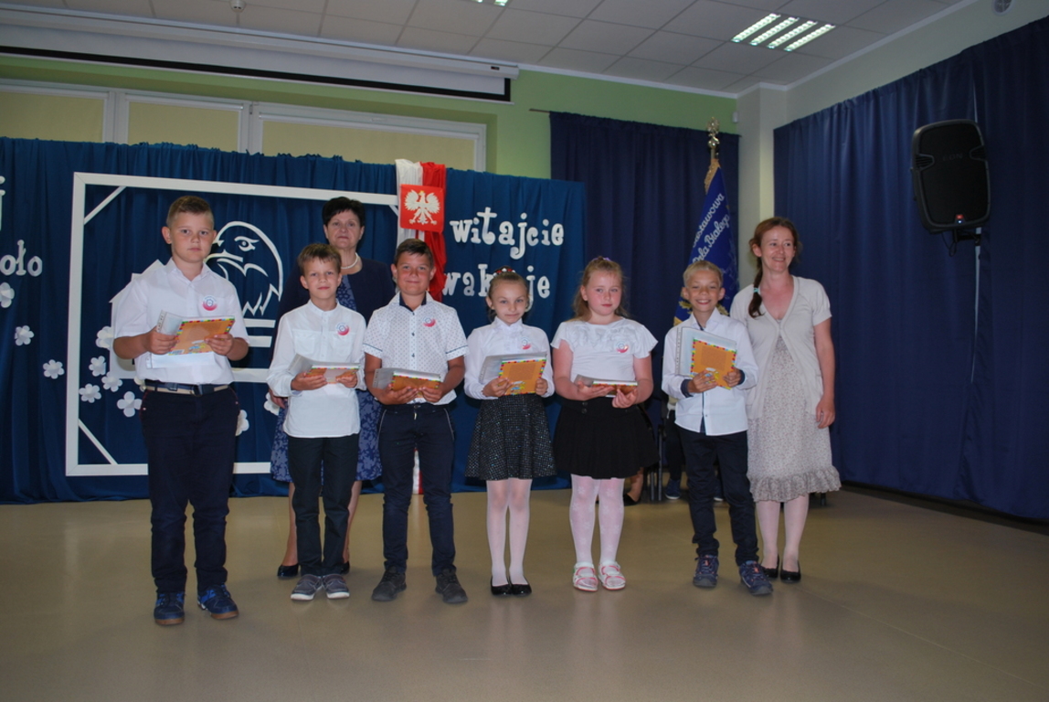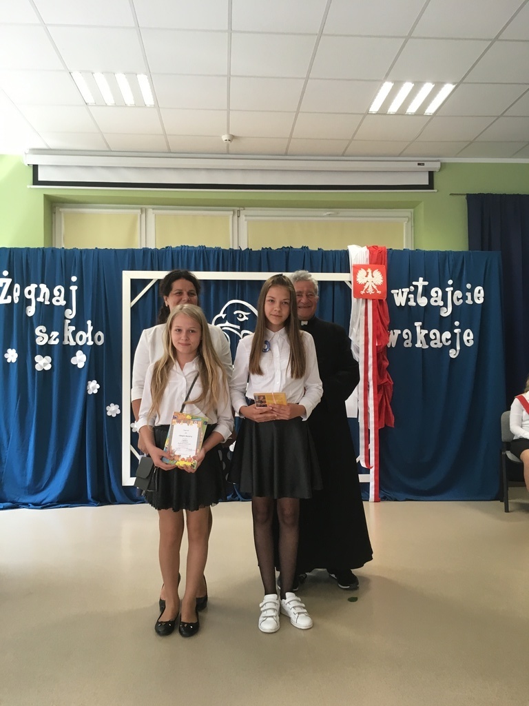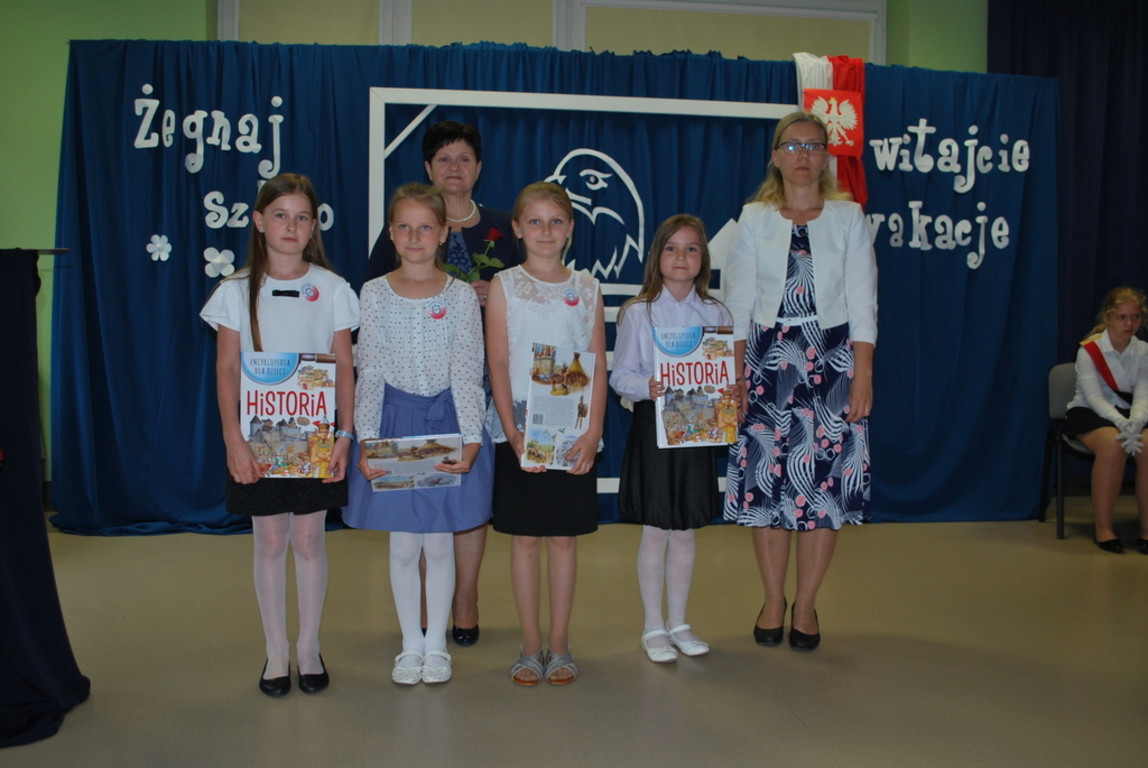 23 czerwca odbyła się uroczystść zakończenia roku szkolnego 2016/2017, poprzedzona mszą świętą w kościele parafilanym. Było to wyjatkowe zakończenie, na co zwróciła uwagę w przemówieniu Pani Dyrektor Danuta Jagodzińska podkręlając, iż w tym roku nie żegnamy absolwentów, gdyż szóstoklaściści pozostaną w murach naszej szkoły. Po wręczeniu świadectw z wyróżnieniem oraz odznak wzrorowego ucznia dzieciom z klas I-III, wręczono świadectwa z czerwonobiałym paskiem najlepszym uczniom z klas IV-VI oraz złote i srebrne odznaki, a także listy gratulacyjne dla rodziców. Nie zabrakło nagród dla najbardziej zasłużonych w dziedzinie matematyki, muzyki, plastyki, religii oraz dla sportowców. Wyróżniono także uczniów ze 100% frekwencją oraz odznaczających się wysoką, a wręcz wzorową kulturą osobistą. Doceniono także niezwykłe zacięcie czytelnicze. Zaś uczniowie, którzy cały rok pilnie pracowali na pierwsze w swym życiu uprawnienia do poruszania się po drogach publicznych otrzymali karty rowerowe. Część artystyczną umilii nam nasi mali instrumentaliści Aleksandra Wieczorek, Gabriela Salitra, Nastazja Każmierczak-Śróda, Iga Dyczkowska. Całość zakończył występ dzieci z klas I-VI, przygotowany we wspólpracy Pań Alicji Andrzejczak-Bieli, Katarzyny Chudzickiej-Budnej, Patrycji Schneider, Alicji Forysiak i Renaty Wrzeszcz. Wszystkim życzymy zasłużonego wakacyjnego wypoczynku!
