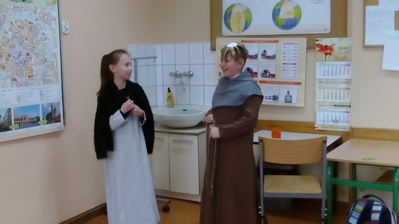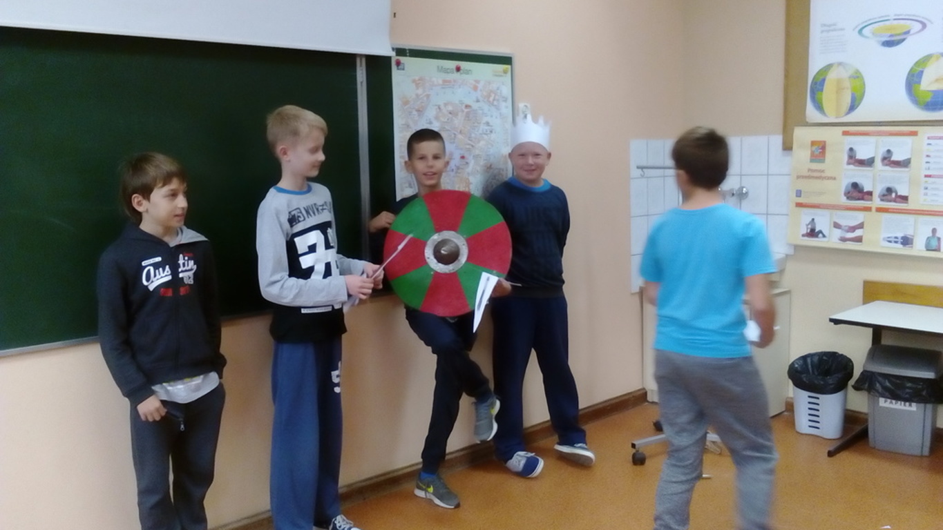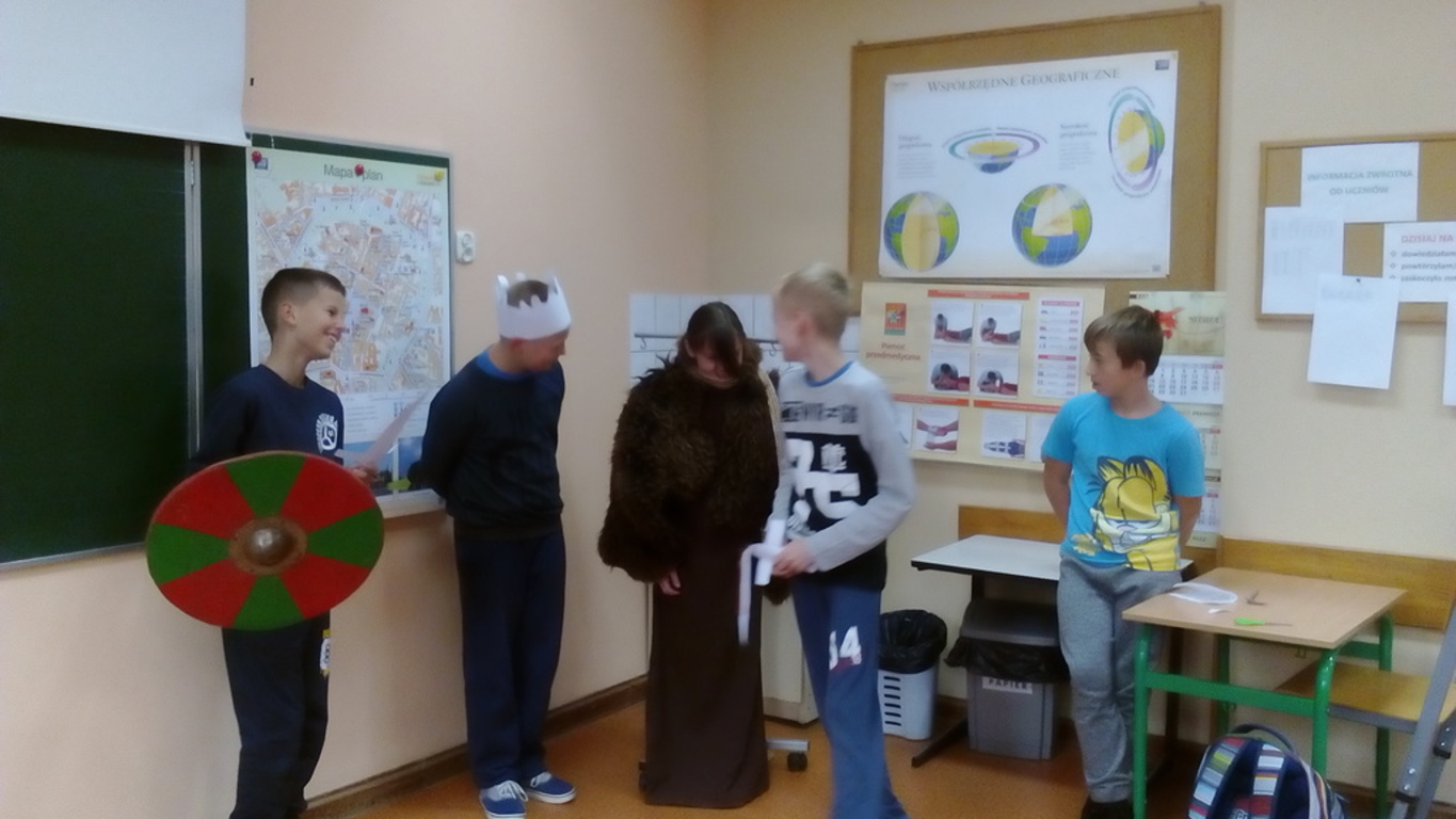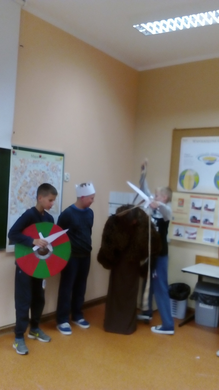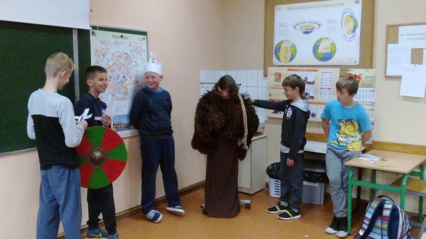 W ramach zajęć z historii i społeczeństwa, których celem było poznanie społeczeństwa epoki średniowiecza oraz zajęć jakich imali się nasi przodkowie, uczniowie klasy V zabawili się w grupę rekonstruktorów. Na ile im się to udało zobaczcie sami...
