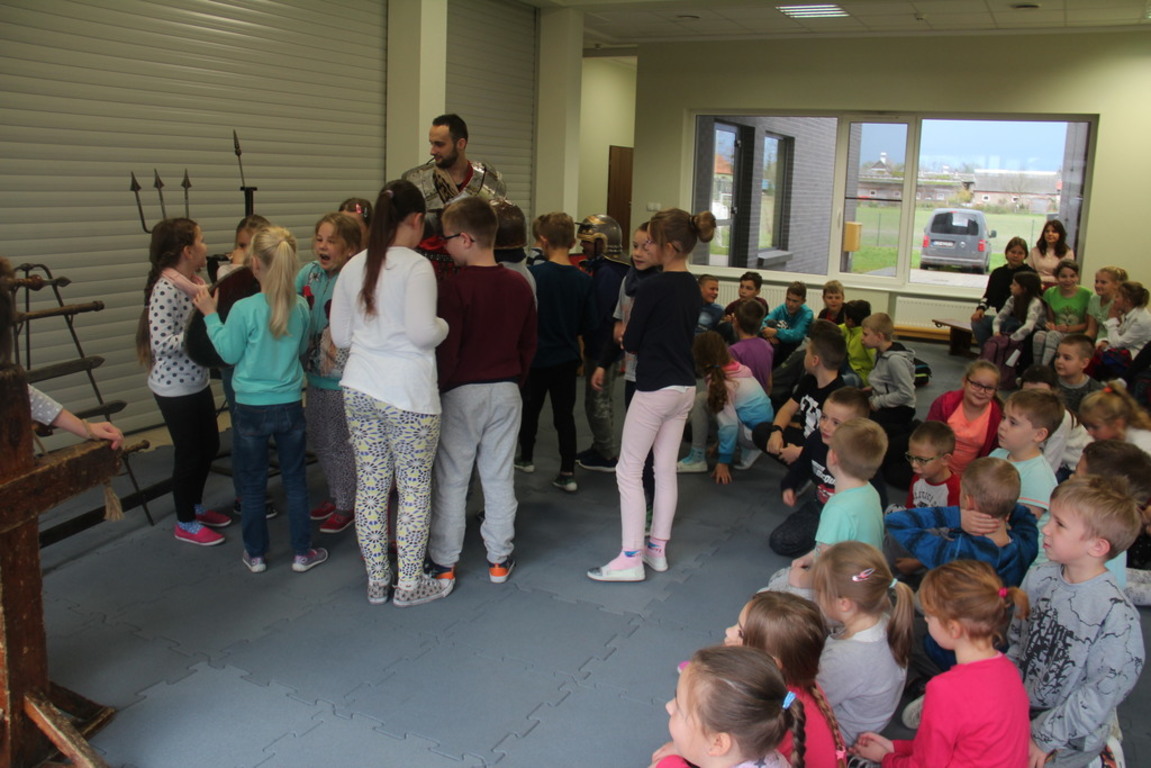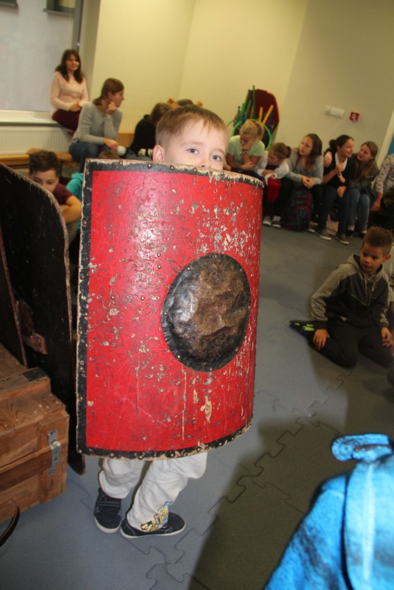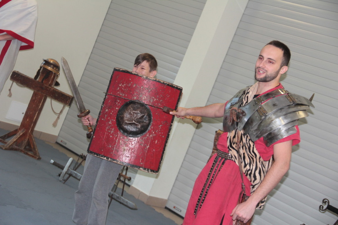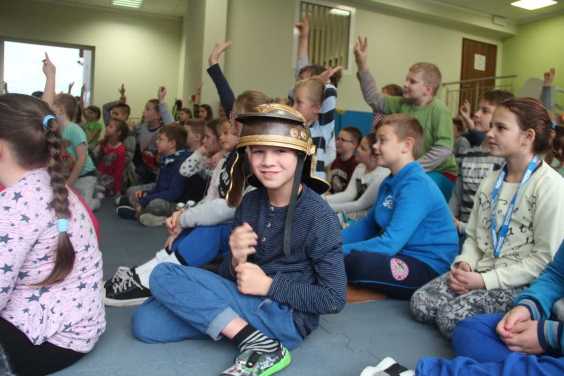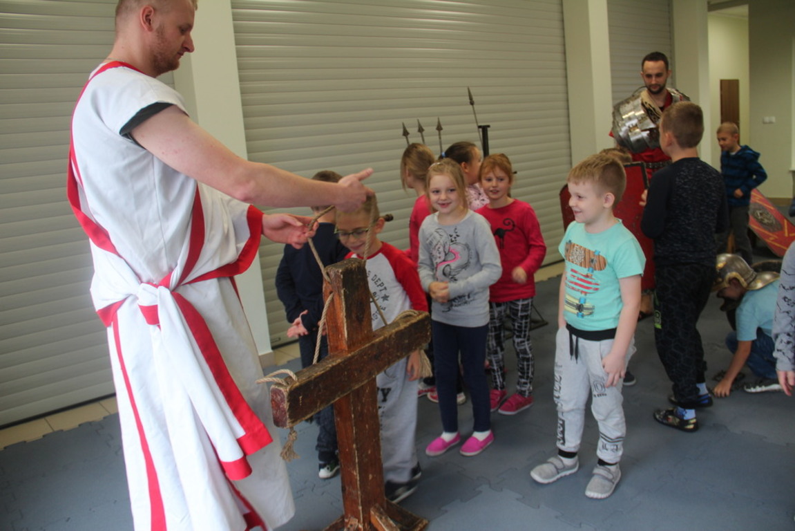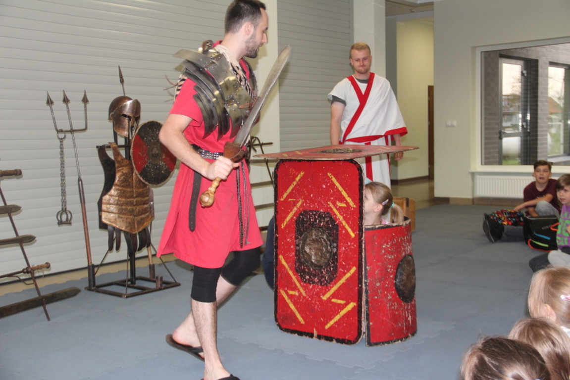 Spotkanie z grupą rekonstrukcji historycznej z Lublina, która przybliżyła czasy starożtnego Rzymu. Poznaliśmy legendę powstania wiecznego miasta. Przybliżono nam codzienność z jaką spotykali sie ludzie tamtych czasów, sposób ubierania się, oręża wojennego i taktyk jakimi posługiwali się,aby pokonać wroga, czyli barbarzyńców.