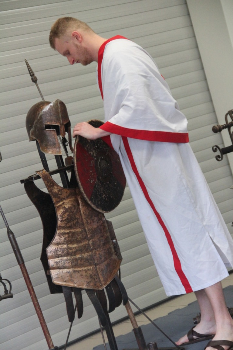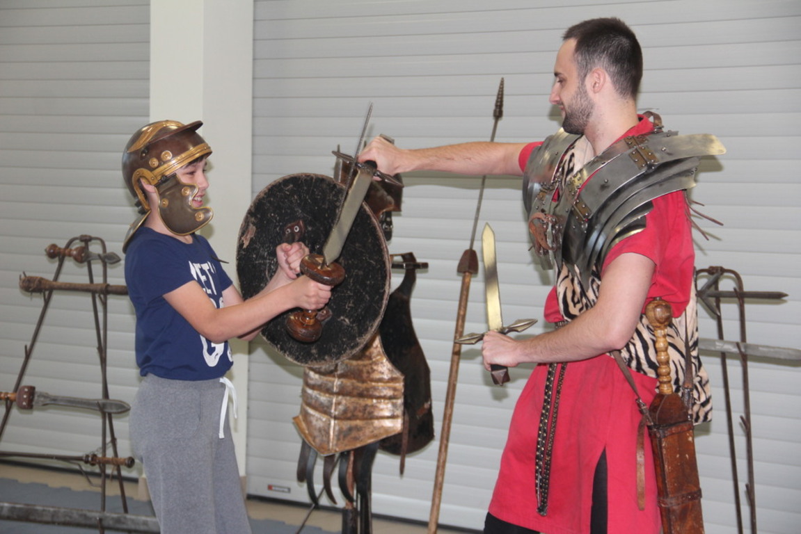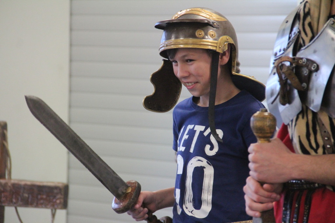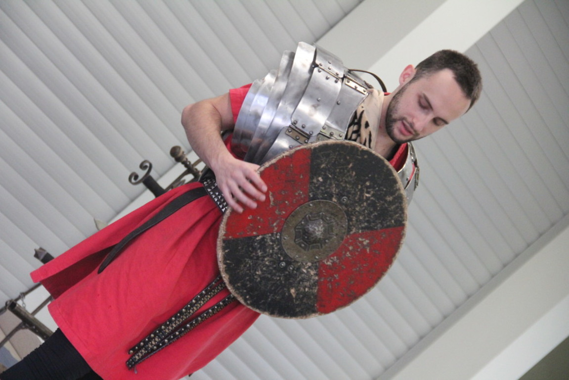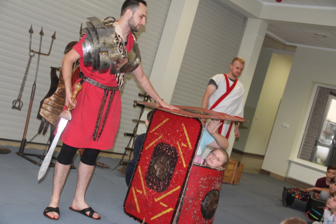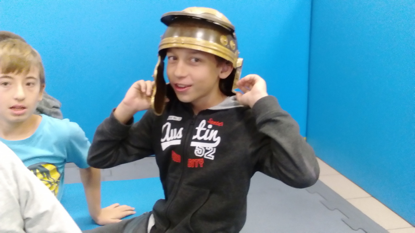 Spotkanie z grupą rekonstrukcji historycznej z Lublina, która przybliżyła czasy starożtnego Rzymu. Poznaliśmy legendę powstania wiecznego miasta. Przybliżono nam codzienność z jaką spotykali sie ludzie tamtych czasów, sposób ubierania się, oręża wojennego i taktyk jakimi posługiwali się,aby pokonać wroga, czyli barbarzyńców.