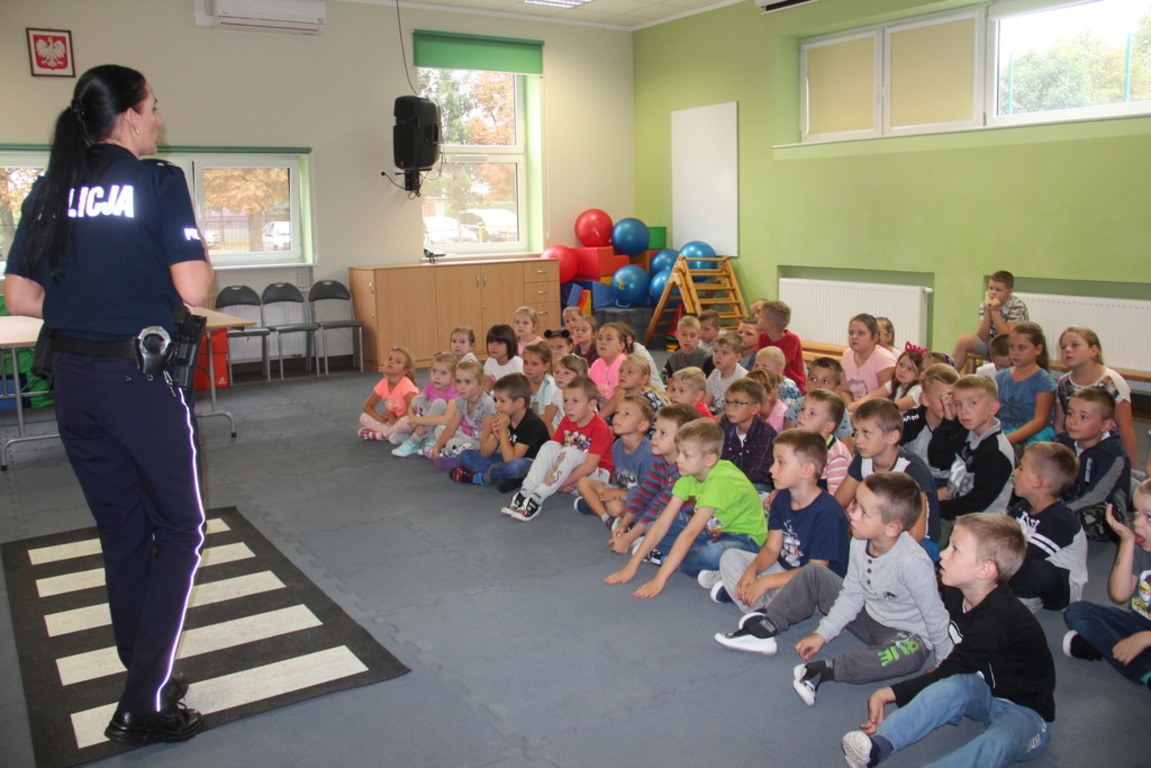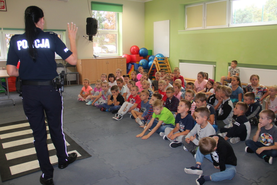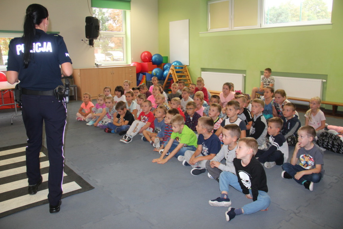 Początek roku szkolnego to czas ponownego przyzwyczajania się do nowego trybu dnia, a co za tym idzie przypomnienie zasad bezpieczeństwa podczas drogi do szkoły. Jak co roku, tak i tym razem mogliśmy liczyć na spotkanie z przedstawicielem Policji, który przypomniał nam najważniejsze zasady bezpieczeństwa w życiu.
