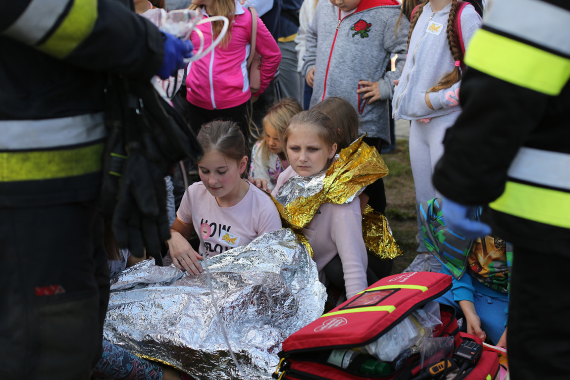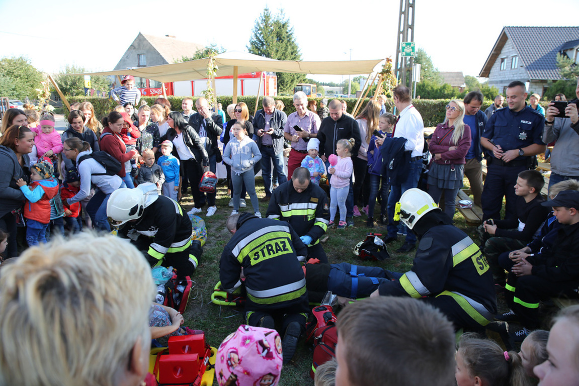 Tematem tegorocznego pokazu był ewakuacja dzieci z placówki szkolnej. Dzieci oraz dorośli mogli uczestniczyć w pokazie, widząc kolejne etapy akcji ratunkowej przy udziale poszczególnych jednostek ratowniczych. Wszyscy zobaczyli przyjazd wozów bojowych, poszukiwanie zagubionej czwórki dziewczynek i osoby dorosłej. W tym miejscu dziękujemy Panu Burmistrzowi Piotrowi Woszczykowi za udział w pokazie.