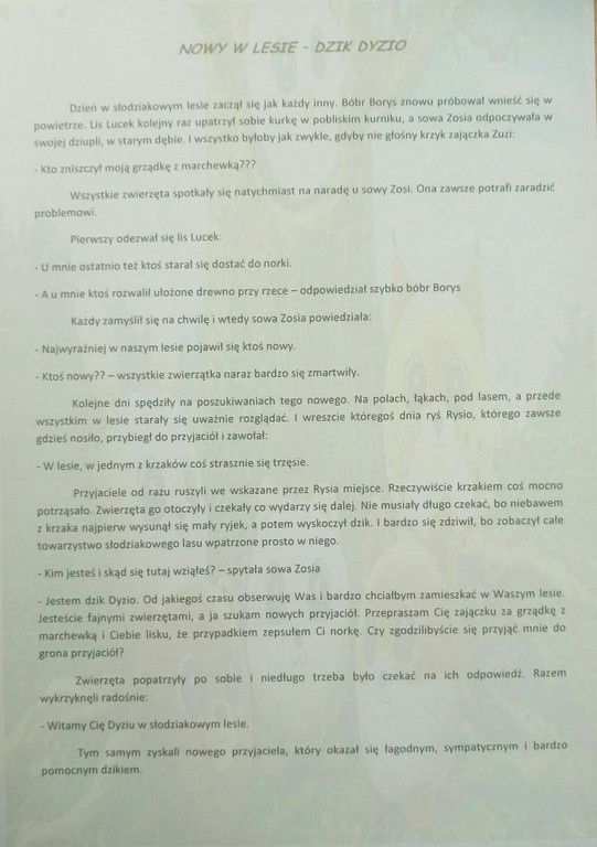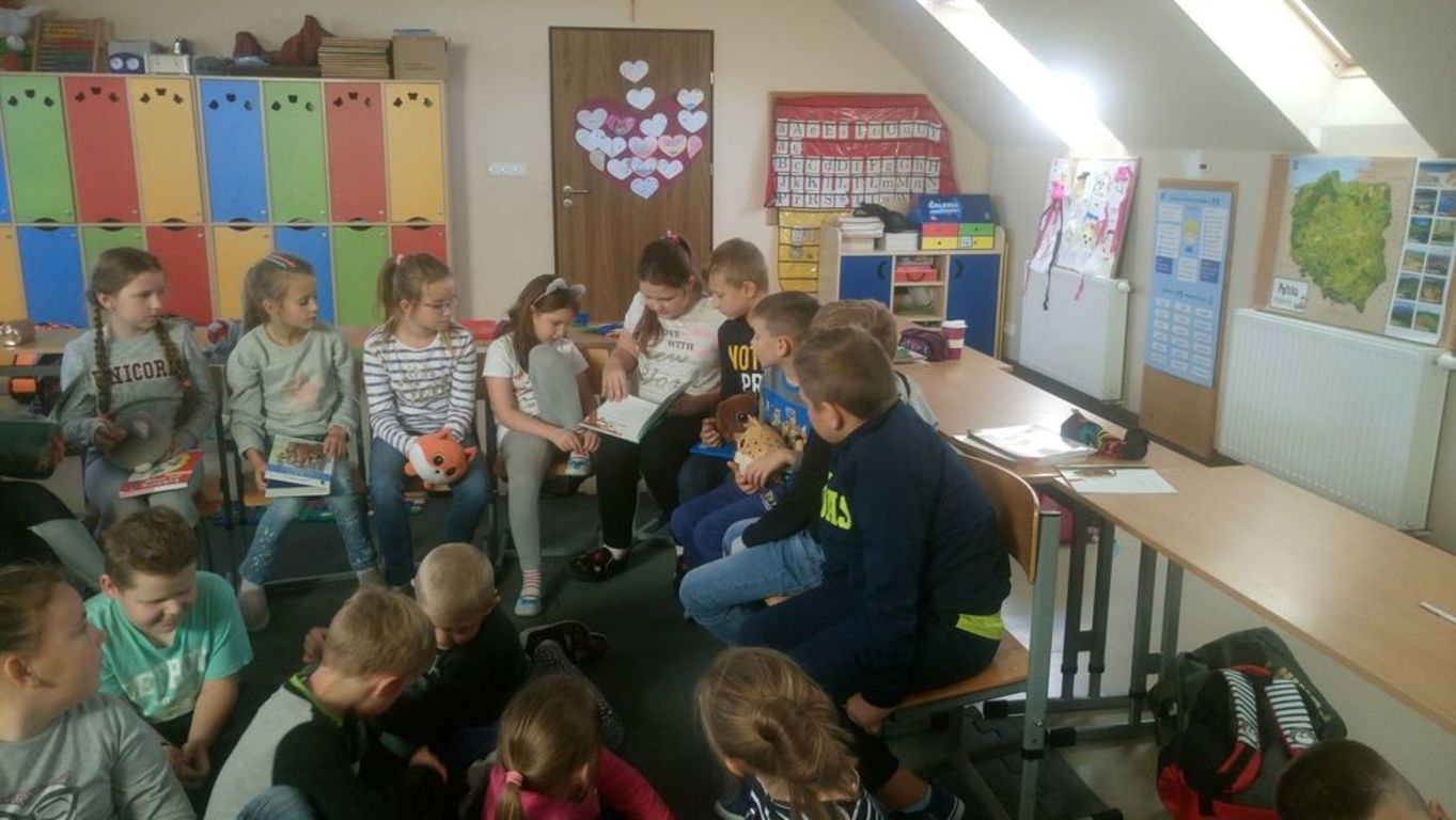 Z okazji Ogólnopolskiego Dnia Głośnego Czytania uczniowie klas I – III naszej szkoły wraz z nauczycielami przyłączyli się do świętowania tego dnia. W środę 3 października wszyscy zebrali się w pięknie przystrojonej sali, aby wysłuchać opowieści o przygodach uroczych zwierzątek z Leśnej Polany oraz fragmentów ulubionych książek. Podczas dwugodzinnego spotkania opowieści czytały dzieci, nauczyciele oraz aktorzy z nagrań internetowych. Jak się okazuje, choć głośne czytanie to nie łatwa sztuka w naszej szkole cieszy się dużym zainteresowaniem. W ramach przygotowań do tego dnia dzieci klasy 3 napisały kilka ciekawych opowiadań, a klasa 2 zrobiła komiks. Dzień Głośnego Czytania dał nam wiele radości i miłych wrażeń.
