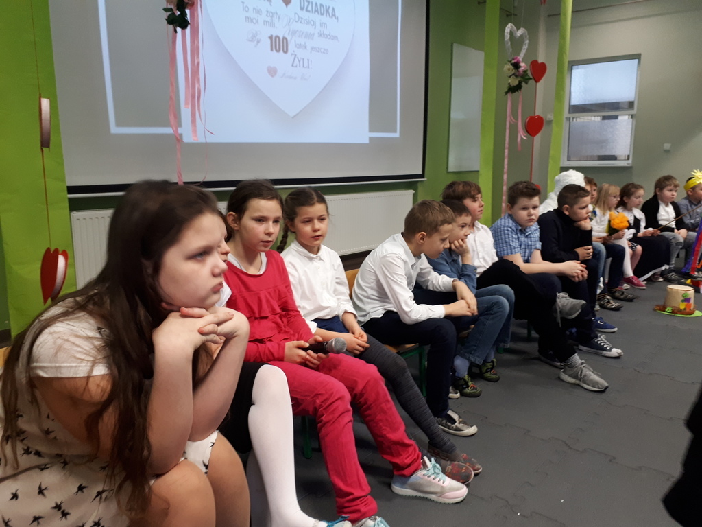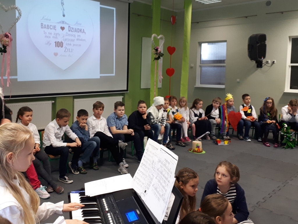 W naszej szkole uroczystość z okazji Dnia Babci i Dziadka jest tradycją na stałe wpisaną w repertuar imprez szkolnych. To dzień pełen uśmiechów, wzruszeń i radości. Dzieci pod bacznym okiem pań Alicji Andrzejczak – Bieli, Jadwigi Majchrzak – Zagrodnik, Renaty Wrzeszcz przedstawiły bardzo bogaty i urozmaicony program artystyczny.