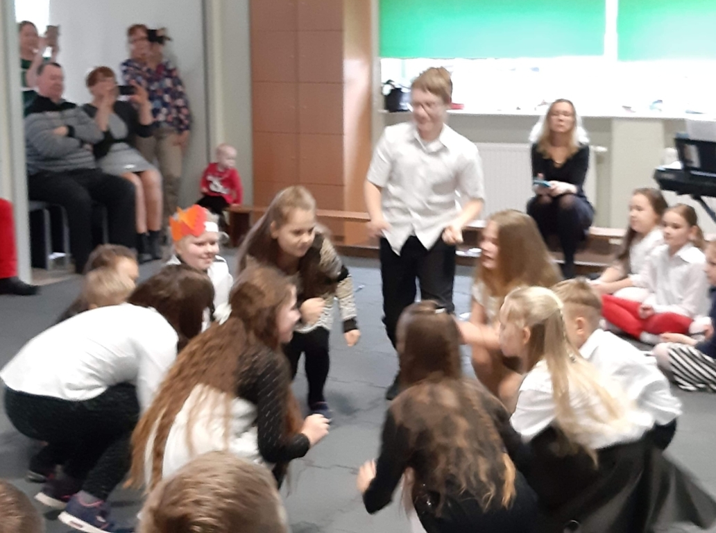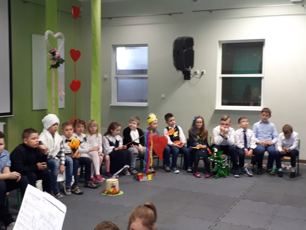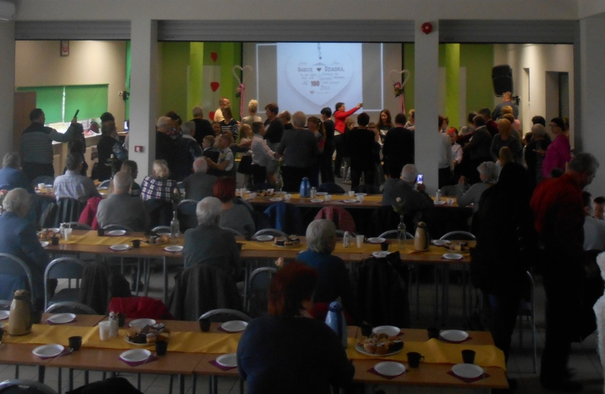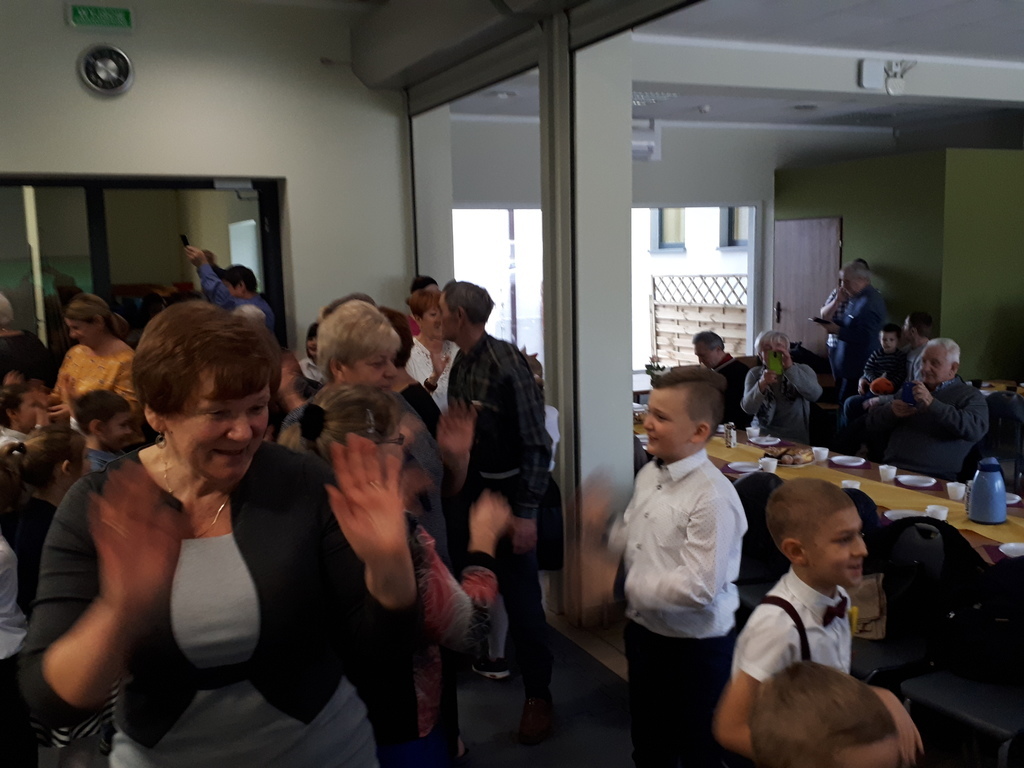 Mali artyści z przejęciem odtwarzali swoje role, a czcigodni goście ze wzruszeniem odbierali czułe słowa, kierowane pod ich adresem, zwłaszcza w prezentacji słownej wcześniej nagranej i wplecionej w występ. Następnie dzieci obdarowały swoich ukochane babcie i dziadków upominkami, własnoręcznie wykonanymi. Frekwencja jak co roku dopisała. Rodzice naszych pociech wraz z wychowawcami klas 1 - 3 przygotowali również dla nich poczęstunek w postaci ciasta, kawy, herbaty. Spotkanie upłynęło w miłej i serdecznej atmosferze. Dzieci, poprzez wiersz, piosenkę i taniec, mogły wyrazić kochanym babciom i dziadkom, swoje uczucia oraz podziękować za trud włożony w ich wychowanie.