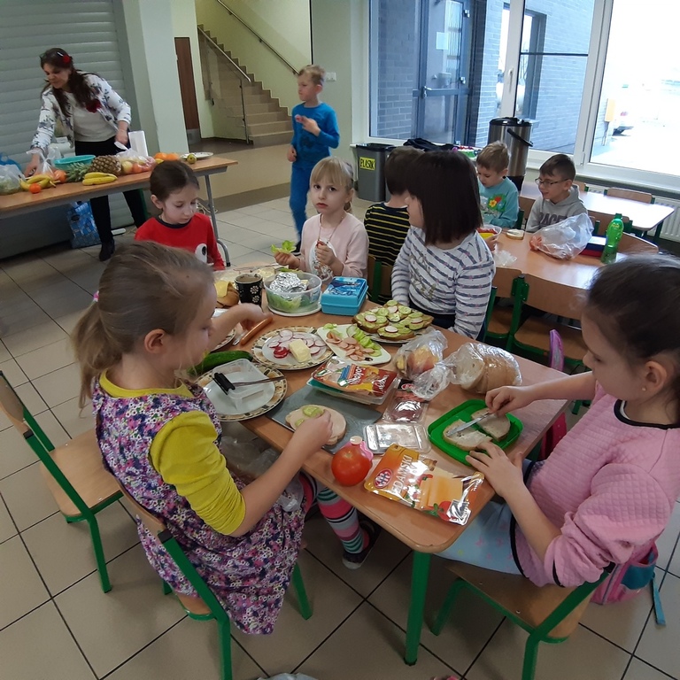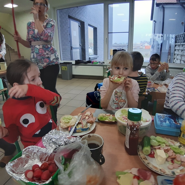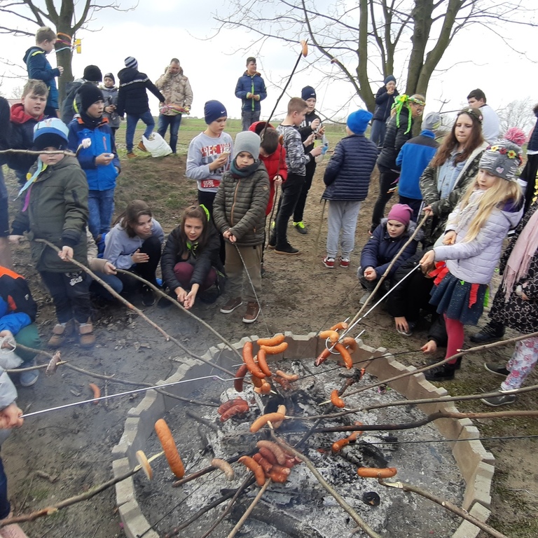 Jak przystało na Pierwszy Dzień Wiosny - były zabawy, kolorowe pochody, kwieciste wianki, urocze gaiki i smaczne wiosenne kanapki. Starsi pokusili się o samodzielne prowadszenie zajęć - było zabawnie! Na zakończenie - pierwsze wspólne ognisko i kiełbaski na patyku :).
