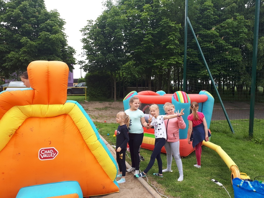 31.05.2019r. w naszej placówce zorganizowany został przez Radę Rodziców „Dzień Dziecka na sportowo”. Udział w nim wzięły wszystkie dzieci szkolne i przedszkolne. Z tej okazji dzieci bawiły się na dmuchanym placu zabaw, nauczyciele 1 – 3 malowały im twarze, klasy 4 – 8 brały udział w zabawach sportowych. Po intensywnym wysiłku dzieci zostały zaproszone na poczęstunek (popcorn, wata cukrowa, kiełbaski z grila no i pizza).