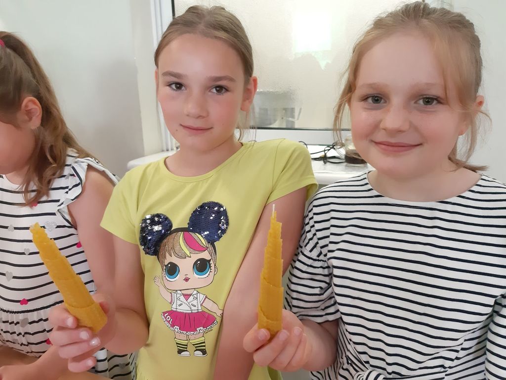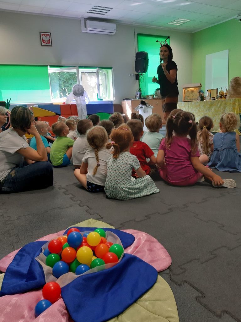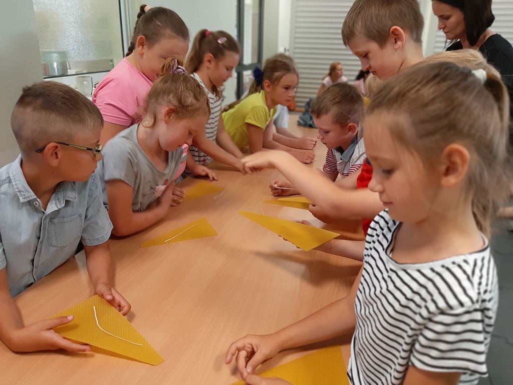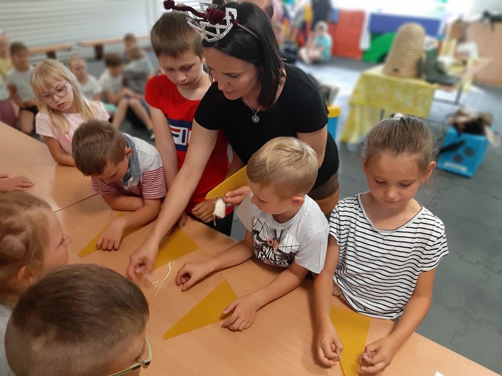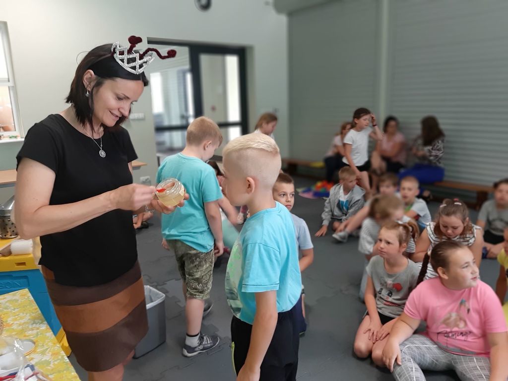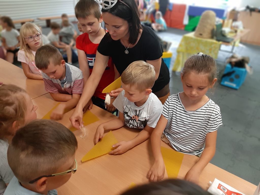 W piątek 14 czerwca spotkaliśmy się z niesamowicie interesującą osobą - Panią Marzeną Heleniak - Panią Pszczółką, która reprezentuje firmę Kochajmy Pszczoły z Poznania. Spotkanie miało charakter pokazowo-warsztatowy, więc zarówno przedszkolaki jak i uczniowie klas I-III z zapałem poznawali świat owadów, dzięki którym nasze sady pełne są owoców a na stołach króluje zdrowy, pyszny miód. Dowiedzieliśmy się, dlaczego tak ważna jest ochrona tych stworzeń, kto zajmuje się i w jaki sposób ich hodowlą, jaki sprzęt potrzebny jest, aby się nimi zajmować i oczywiście jak smakuje miód...i czekomiód. Na koniec spotkania mieliśmy możliwość wykonania pięknych świec z wosku pszczelego. /JMZ/
