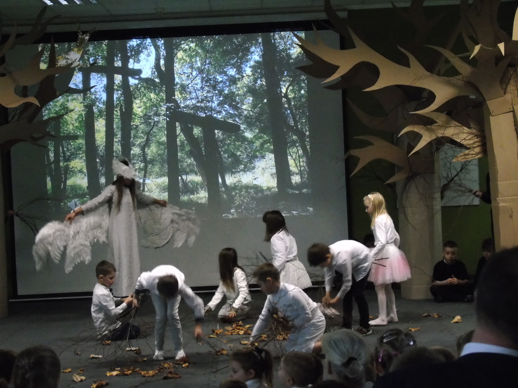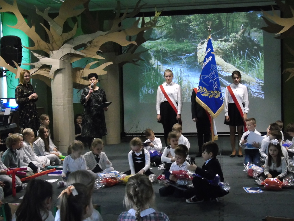 W miniony czwartek (21.11.2019r.) świętowaliśmy dzień patrona szkoły. Zajęcia rozpoczęły się jak zwykle o 7.30, jednak nie braliśmy udziału w lekcjach, a przygotowywaliśmy prace związane z Orłem Białym (tworzyliśmy makiety grodu, drzewa, wizerunki patrona oraz ilustracje do legend). O godzinie 10.00 podczas uroczystego apelu przyjęliśmy do naszego grona pierwszoklasistów. Dzieci pasowane na uczniów otrzymały od wychowawczyni pamiątkowe dyplomy, legitymacje oraz słodkie upominki. Kolejnym punktem programu była inscenizacja zatytułowana "Orle gniazdo".