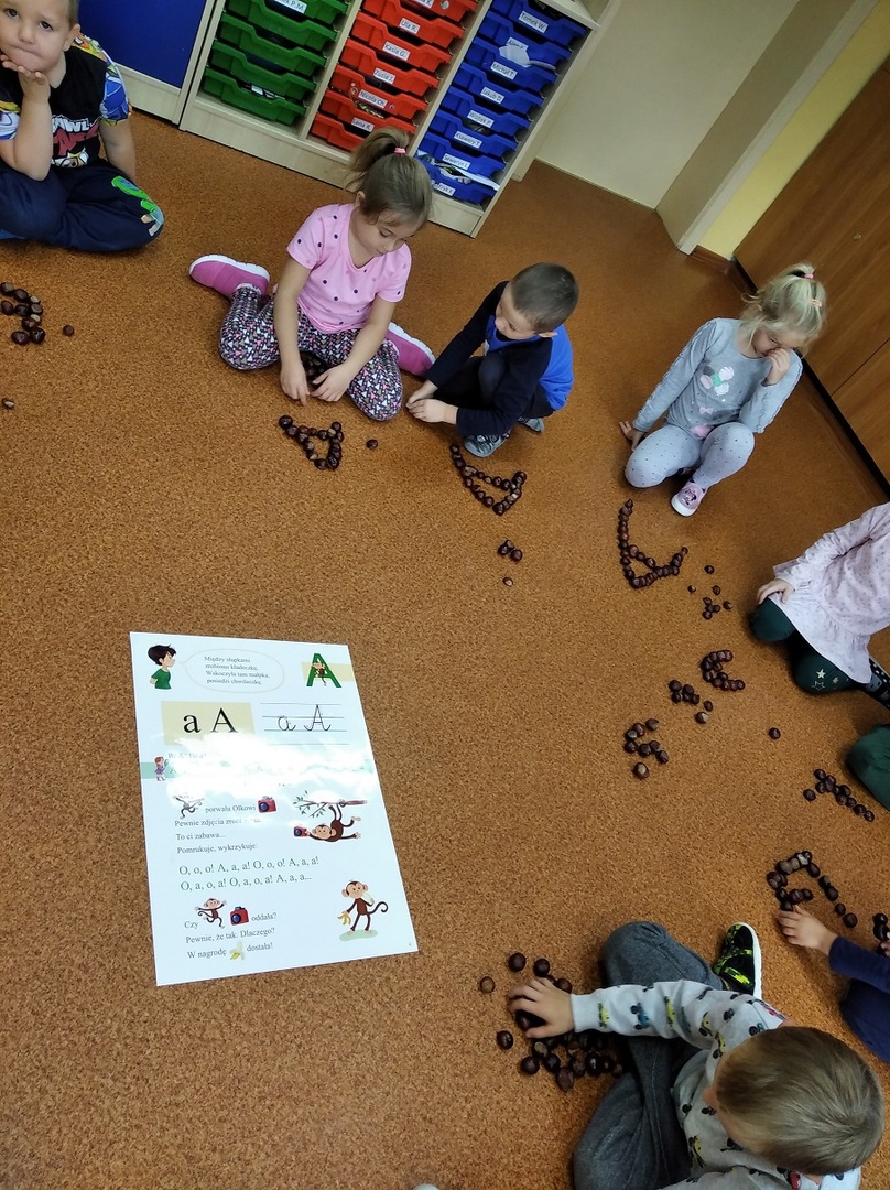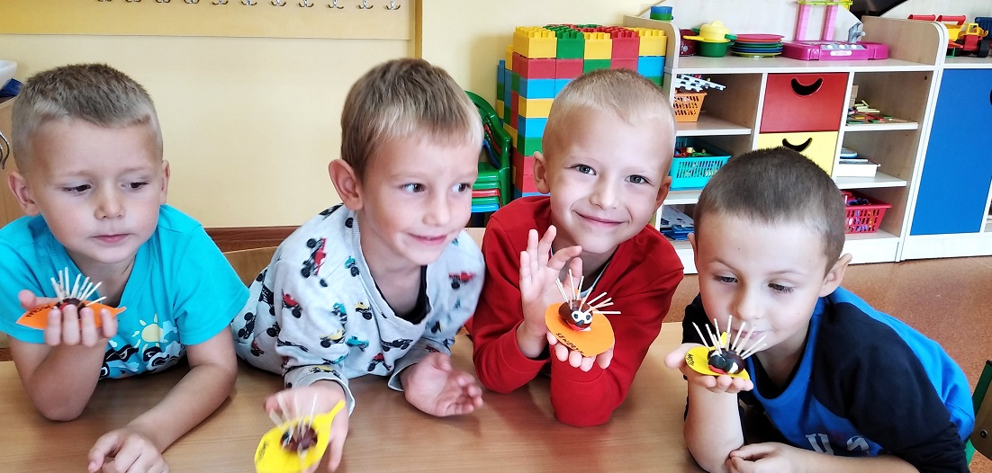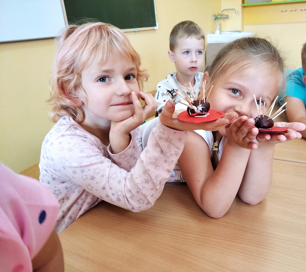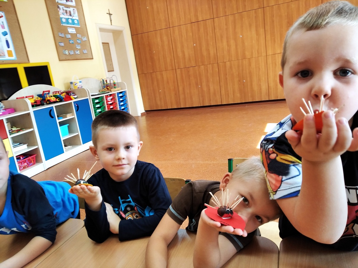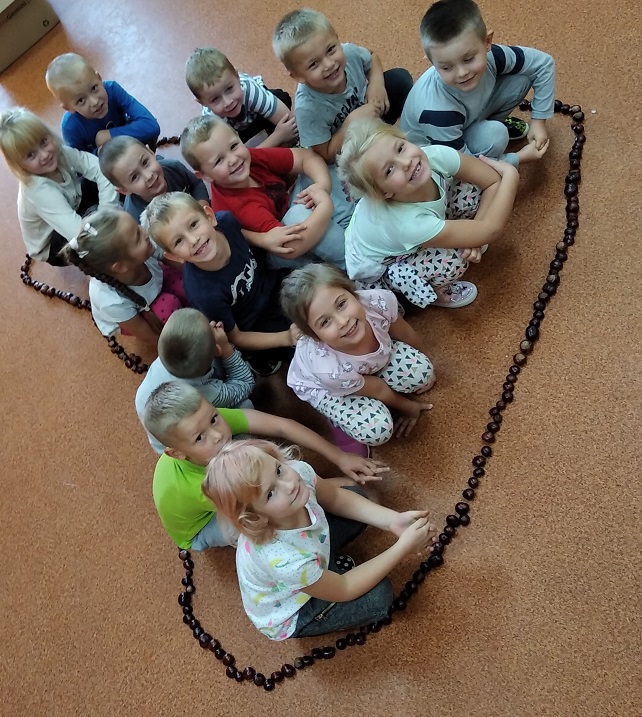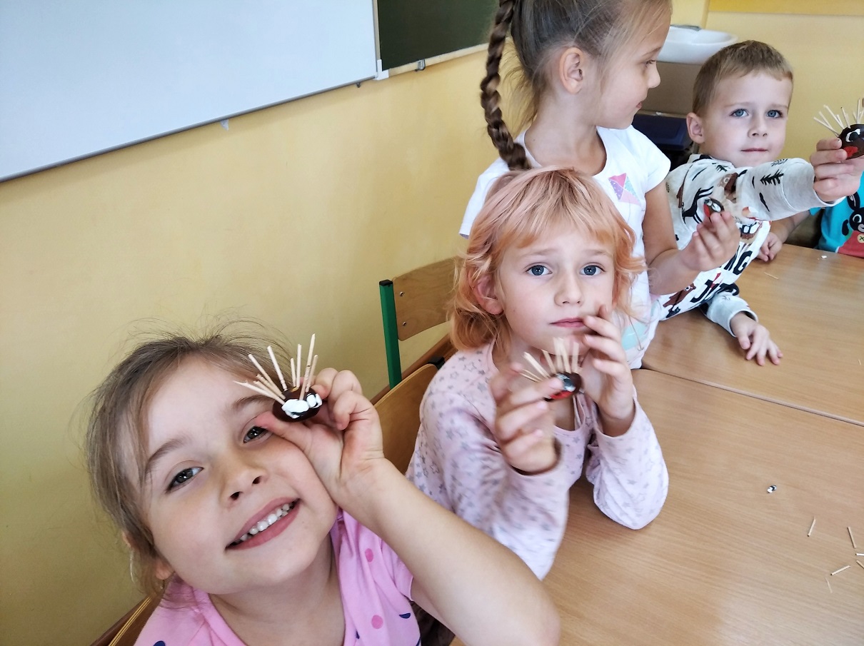 Jesień to znakomita pora na kasztanowe zabawy. Dzieci z grupy 5 – latków przyniosły do przedszkola dość sporą kolekcję . Udowodniliśmy, że kasztany nie muszą nieruchomo leżeć w koszyku, ale można je wykorzystać podczas różnorodnych zabaw. Podczas zajęć przeliczaliśmy, układaliśmy z nich różne wzory według własnych pomysłów oraz instruktażu pani Kasi. Zrobiliśmy jeżyki, ludziki oraz wykorzystaliśmy do nauki liczb i literek.