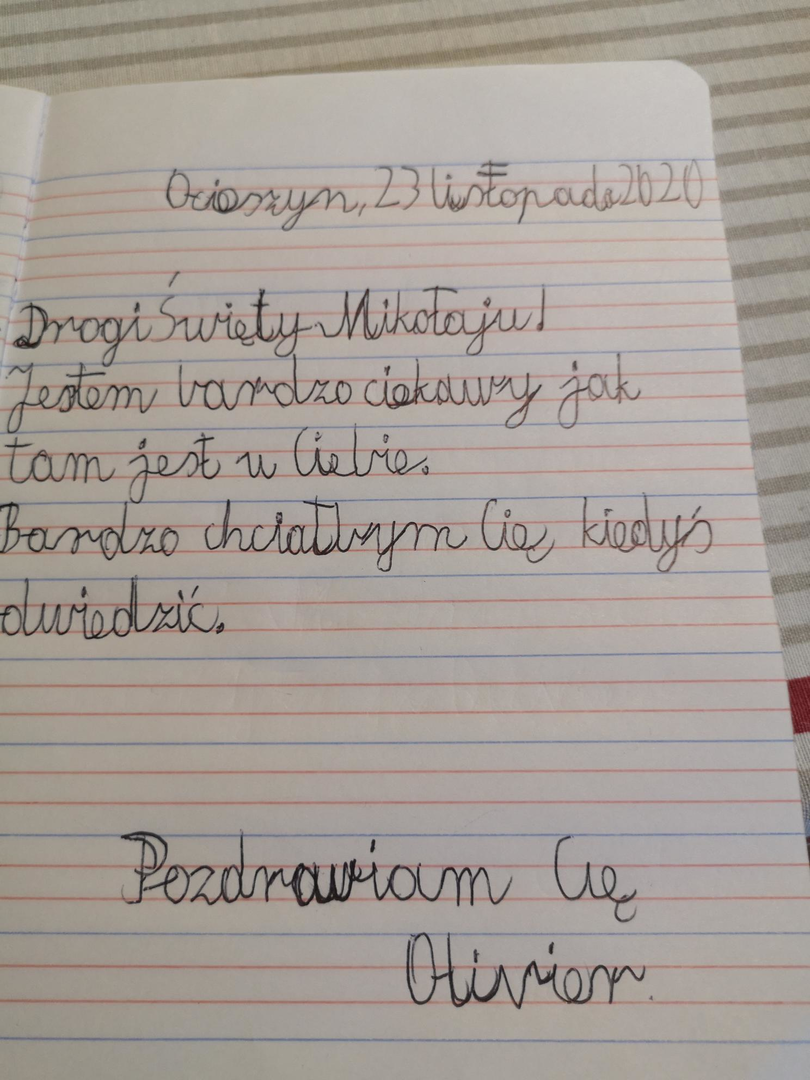 Od wielu lat noc mikołajkową z 5 na 6 grudnia spędzaliśmy z dziećmi klas 1 – 3 w szkole na pieczeniu pierników, robieniu ozdób na choinkę, wyczekiwaniu na wizytę Świętego Mikołaja. Ale ten rok jest inny. Wszystkie dzieci w swoich domach, już od kilku tygodni w szkole pustka, dlatego klasa druga napisała listy online do Świętego Mikołaja. Spotkaliśmy się w Teams w mikołajkowym nastroju.