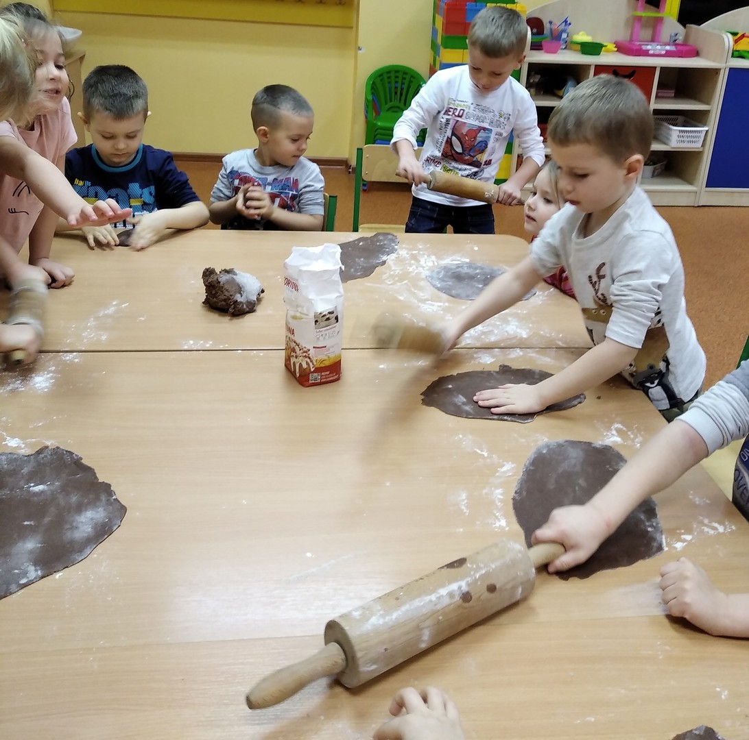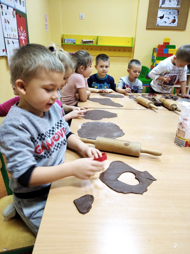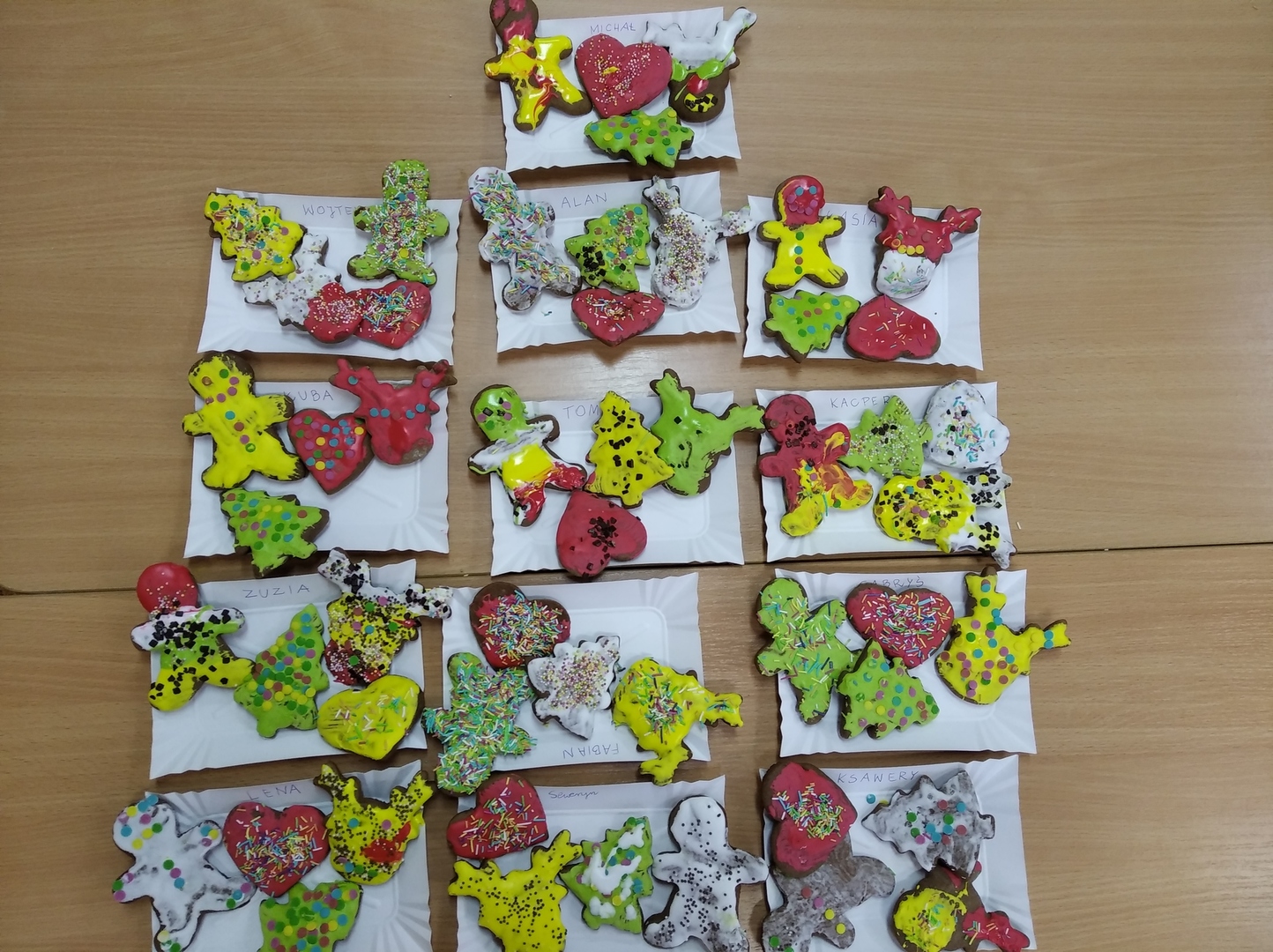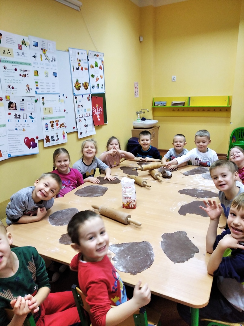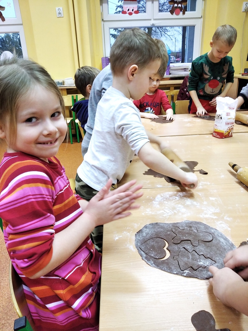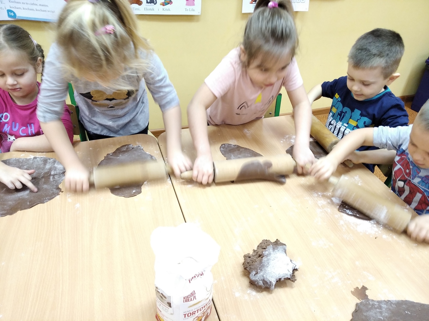 Święta tuż, tuż… czas więc na pieczenie pierników ! 5 -latki z ogromnym zapałem i zaangażowaniem zabrały się do pracy. Na początku poznaliśmy przepis na masę piernikową. Następnie wszystkie produkty zostały przez dzieci dokładnie wymieszane, zagniecione. Nasze ciasto odstawiliśmy do lodówki na 24 h. Kolejnego dnia wałkowaliśmy ciasto i wykrawaliśmy foremkami. Zrobiliśmy ponad 100 pierniczków ! Pod czujnym okiem naszych pań w kuchni, pierniki nabierały koloru piekąc się. Po upieczeniu była oczywiście degustacja. Gotowe ciasteczka udekorowaliśmy kolorowym lukrem i posypką. Każdy wyglądał inaczej, był wyjątkowy i niepowtarzalny.