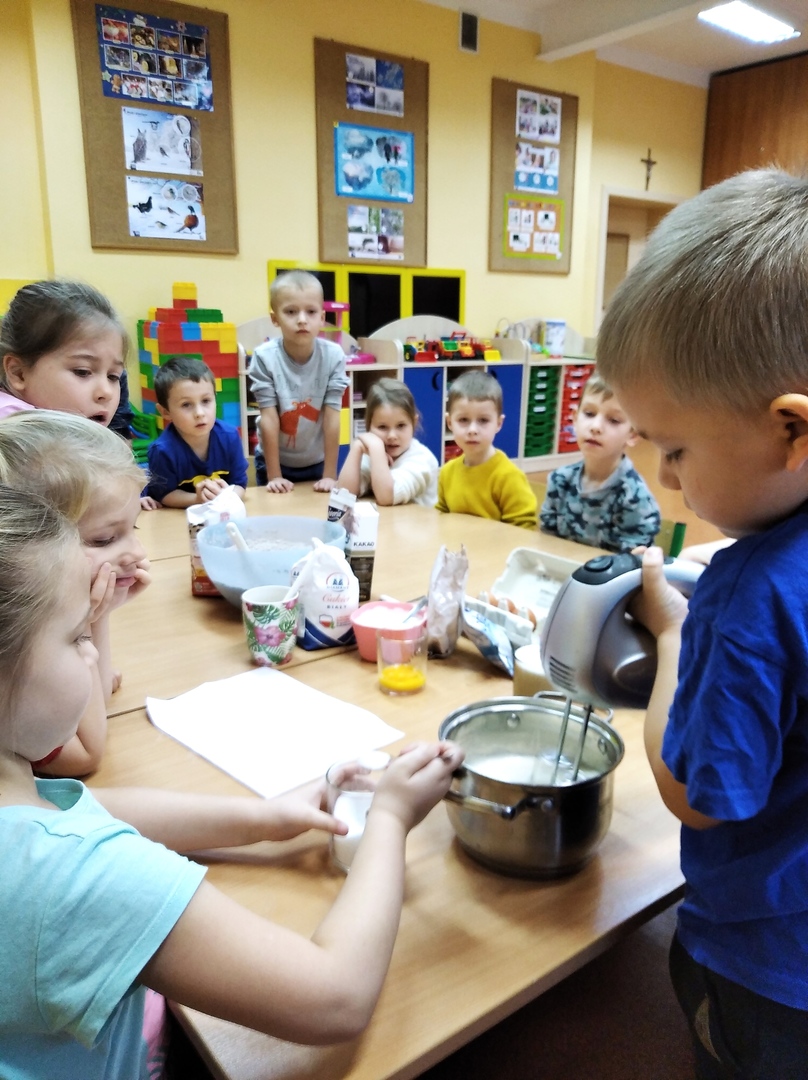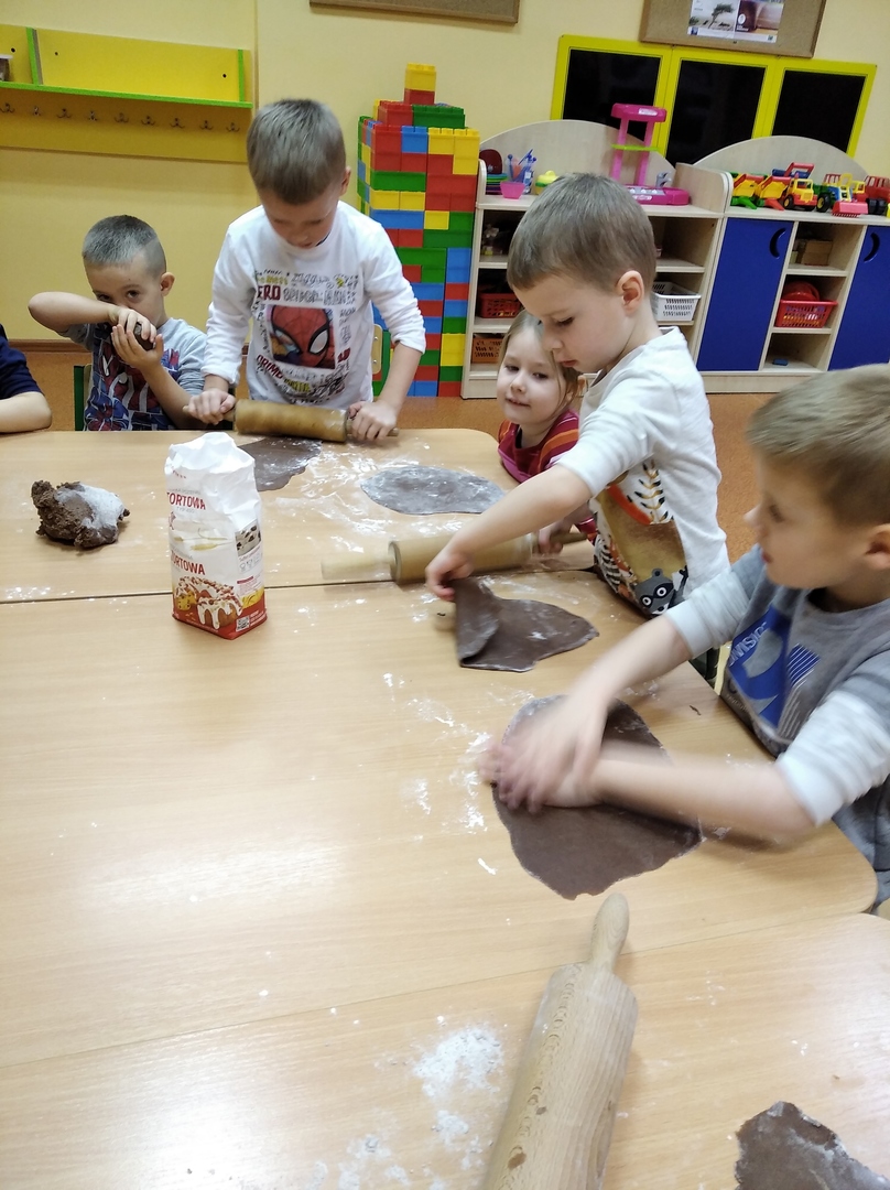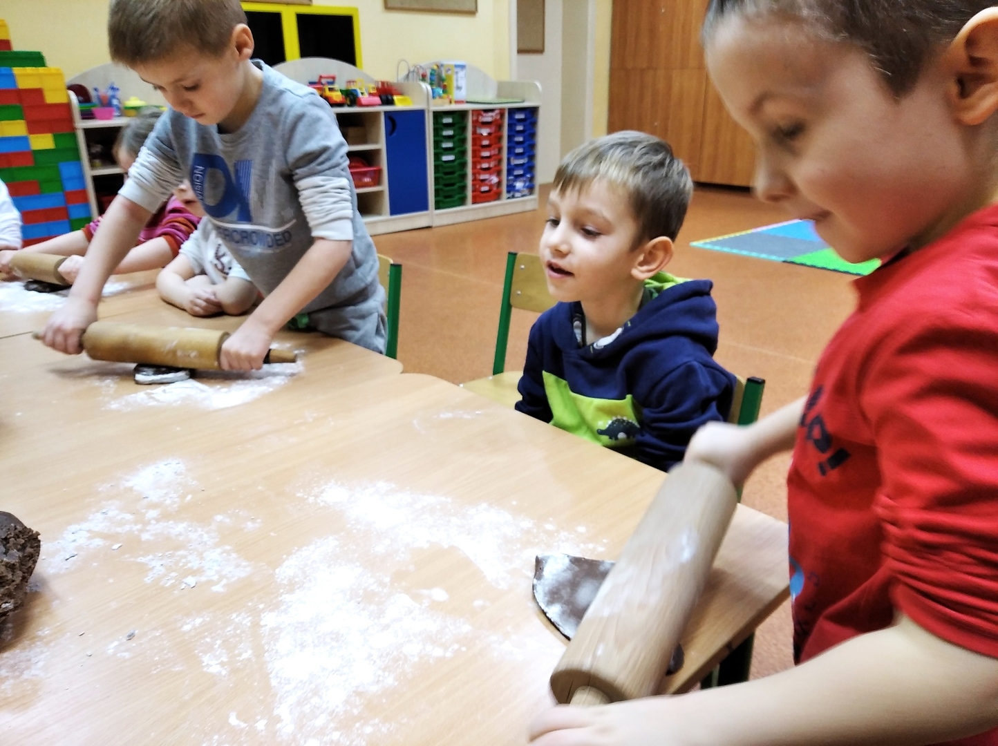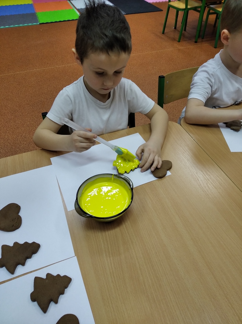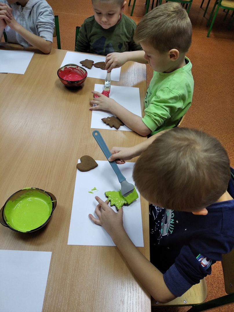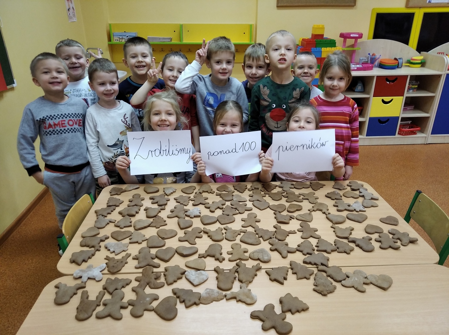 Święta tuż, tuż… czas więc na pieczenie pierników ! 5 -latki z ogromnym zapałem i zaangażowaniem zabrały się do pracy. Na początku poznaliśmy przepis na masę piernikową. Następnie wszystkie produkty zostały przez dzieci dokładnie wymieszane, zagniecione. Nasze ciasto odstawiliśmy do lodówki na 24 h. Kolejnego dnia wałkowaliśmy ciasto i wykrawaliśmy foremkami. Zrobiliśmy ponad 100 pierniczków ! Pod czujnym okiem naszych pań w kuchni, pierniki nabierały koloru piekąc się. Po upieczeniu była oczywiście degustacja. Gotowe ciasteczka udekorowaliśmy kolorowym lukrem i posypką. Każdy wyglądał inaczej, był wyjątkowy i niepowtarzalny.