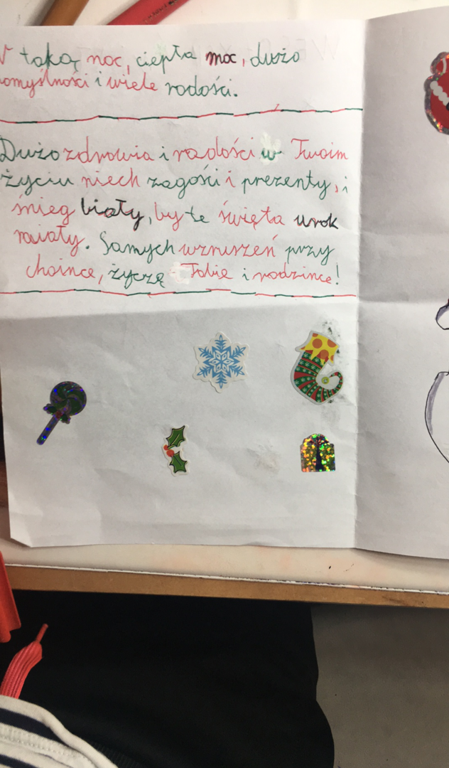 Już po raz drugi nasza szkoła bierze udział w akcji MEN "Razem na Święta". Uczniowie klasy VII należący do szkolnego Klubu Małego Wolontariusza oraz uczniowie klasy III, w ramach tegorocznej akcji, przygotowali kartki świąteczne dla swoich sąsiadów. Dzieci własnoręcznie napisały życzenia oraz pięknie ozdobiły kartki. Życzenia trafiły do skrzynek pocztowych lub zostały przekazane własnoręcznie. Dodatkowo szkoła prowadzi zbiórkę kocy, karm oraz misek na rzecz schroniska "Azorek". Zbiórka potrwa do Nowego Roku. Akcja "Razem na Święta" jest w tym roku dla nas bardzo szczególna, ze względu na czas pandemii oraz izolacji. Mamy nadzieję, że otrzymanie kartek świątecznych sprawi, że pomimo dystansu społecznego, nadal będziemy pamiętać o tym, że jesteśmy jedną wspólną rodziną :) Efekty pracy dzieci przedstawiamy poniżej.
