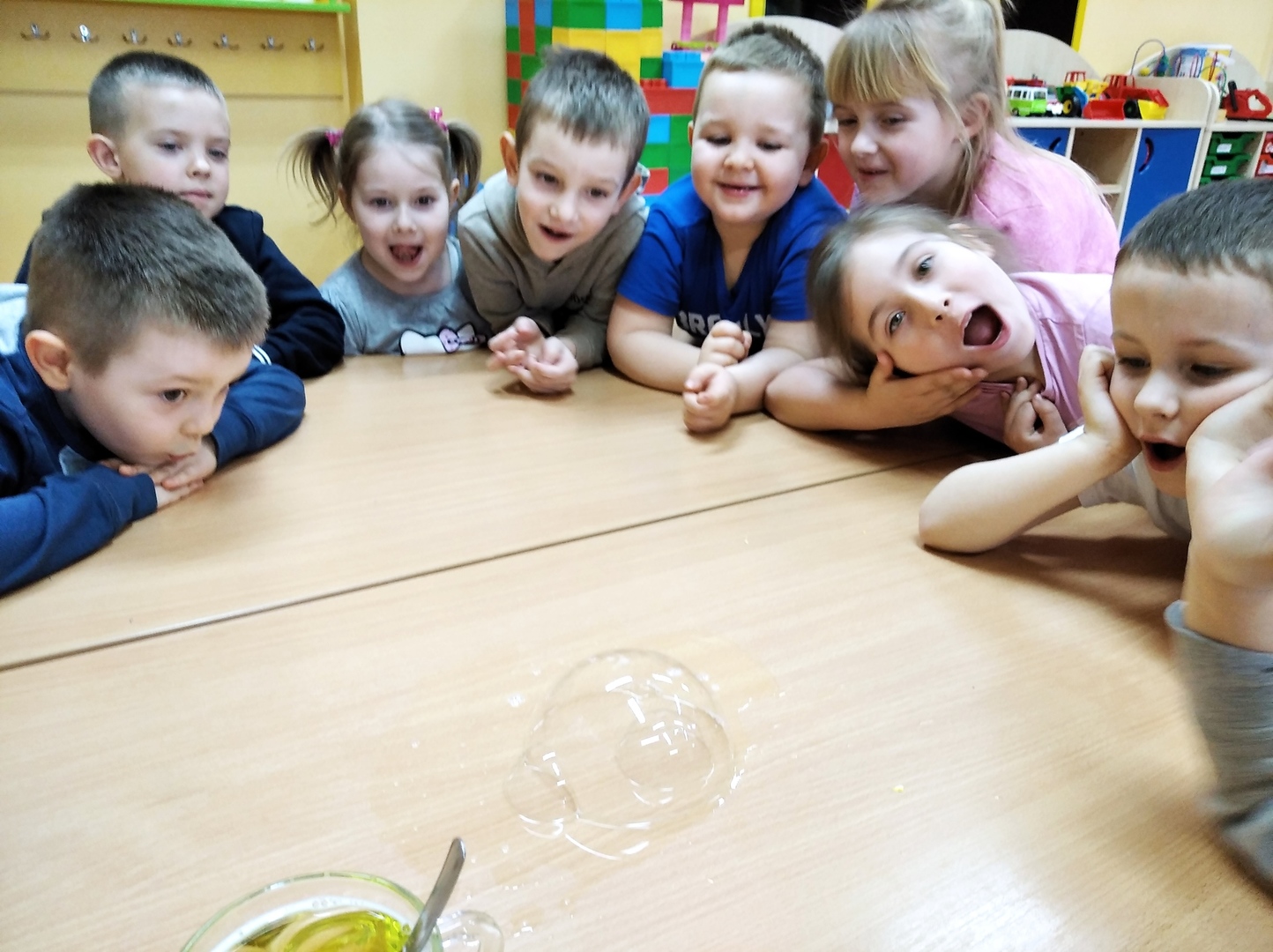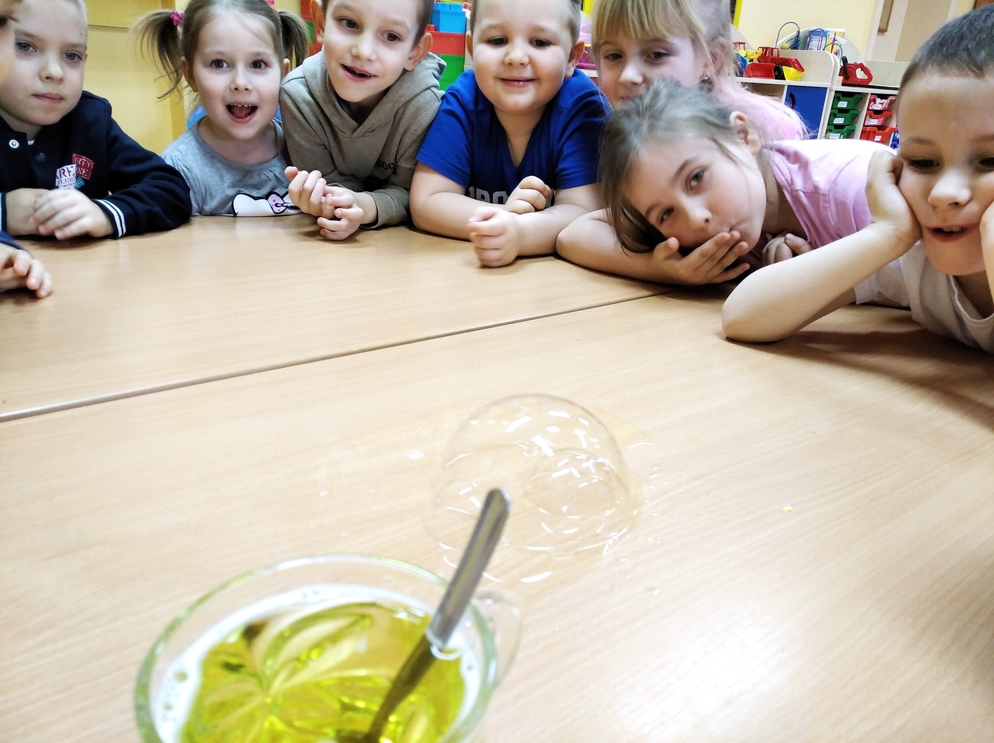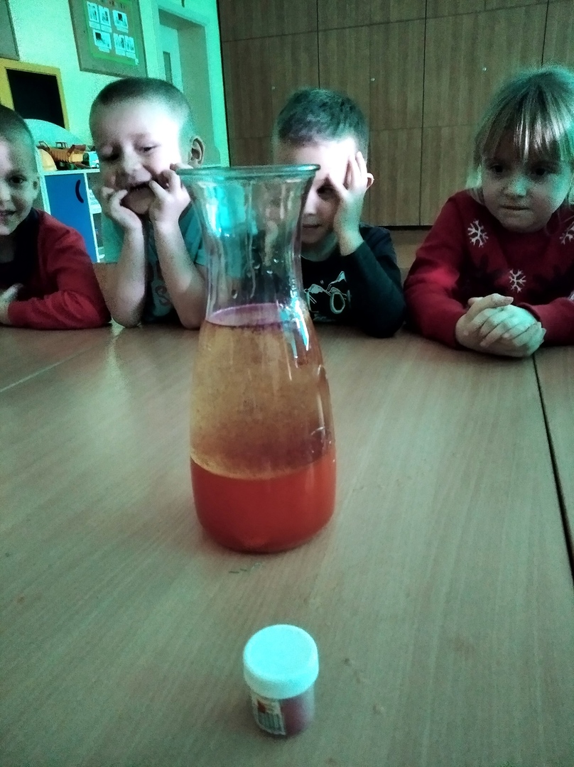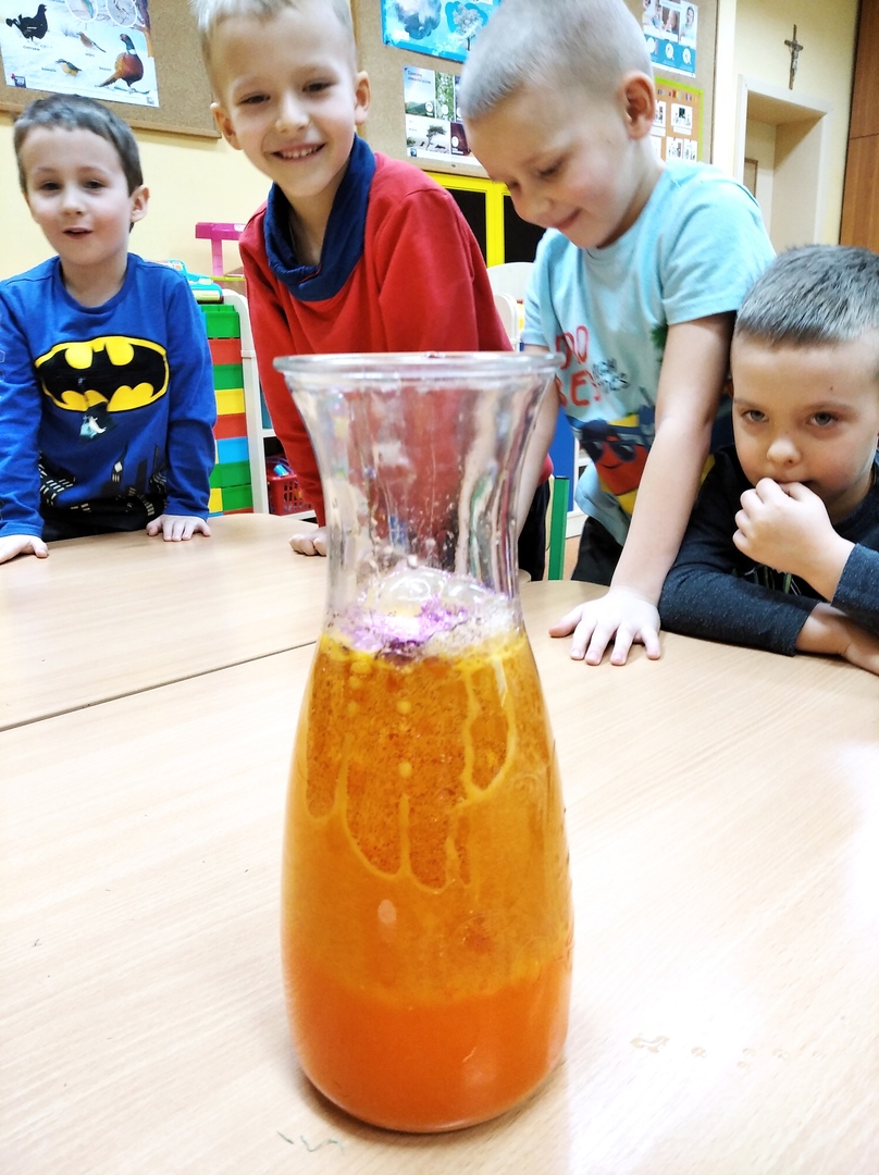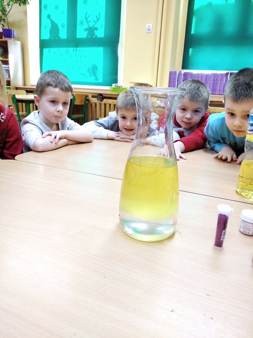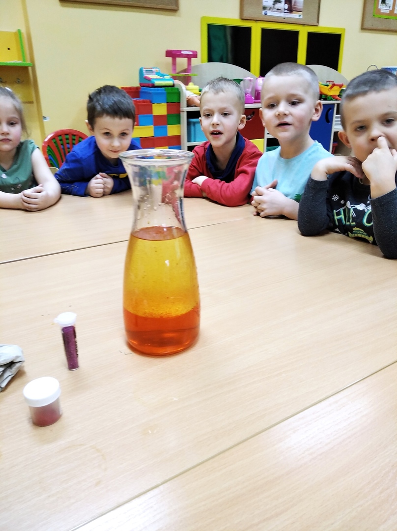 W styczniu odpowiedzieliśmy sobie na pytanie: „Czy woda lubi się z olejem?”. Udało nam się połączyć eksperyment z chemii z super zabawą i zjawiskowym efektem. Wykonaliśmy lampę lawę. W lutym eksperymentowaliśmy z papierem. Poznaliśmy siłę papieru, obserwowaliśmy rozkwitający kwiat. Dowiedzieliśmy się jak zrobić bańkę w bańce