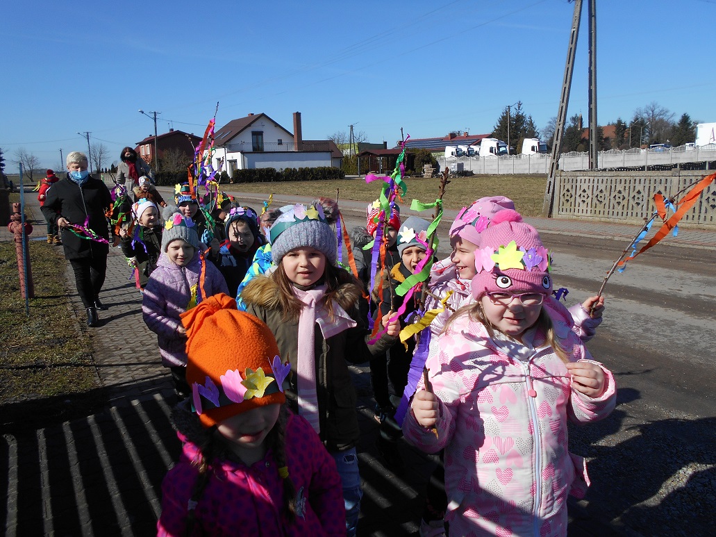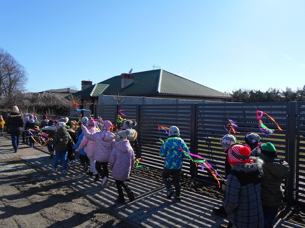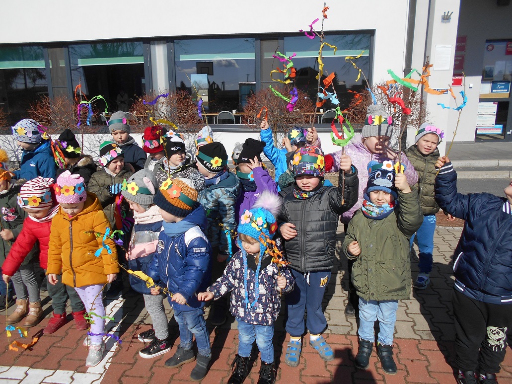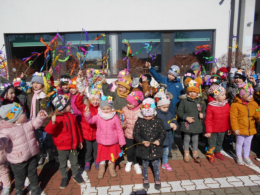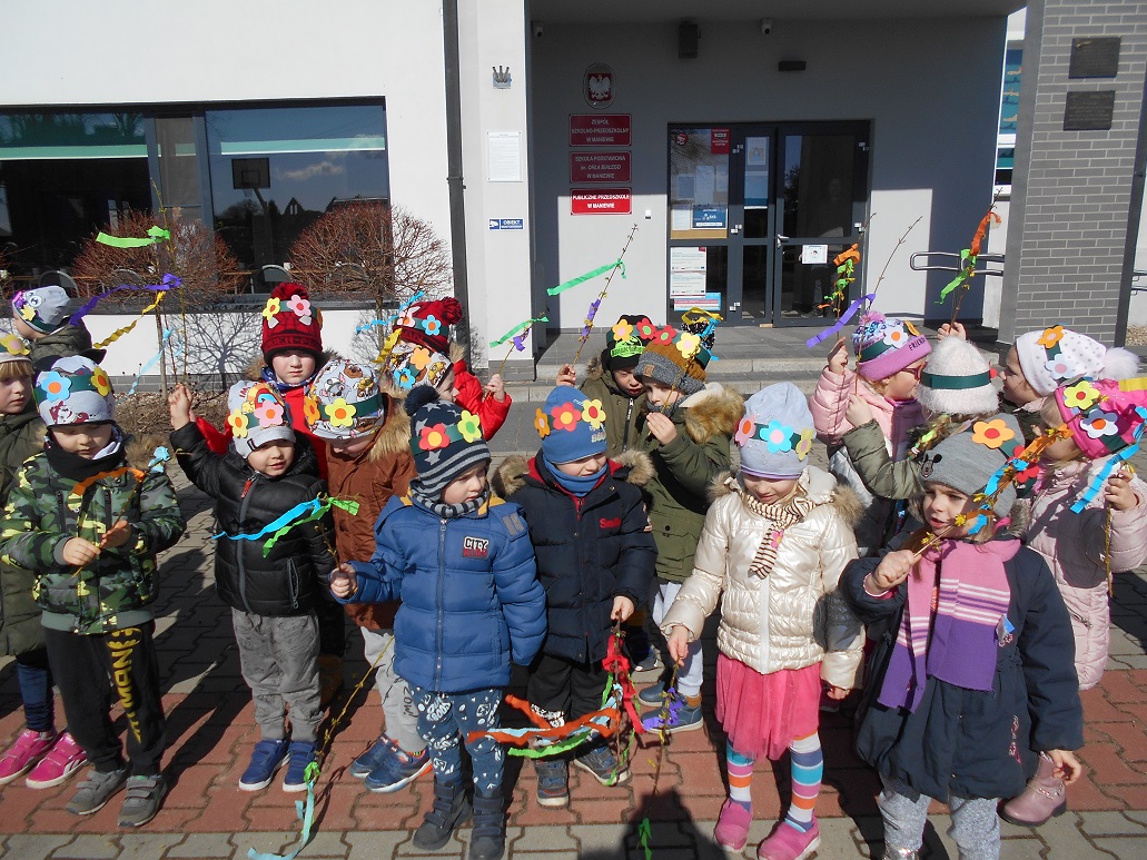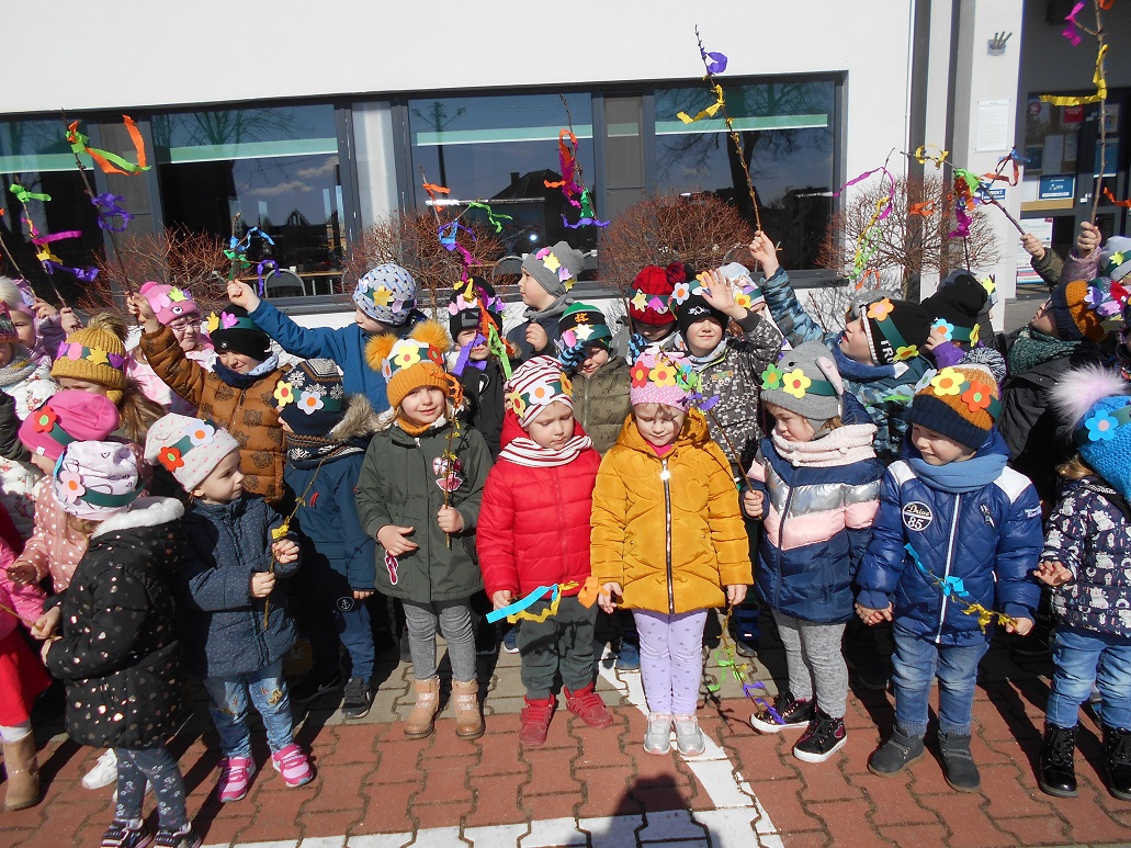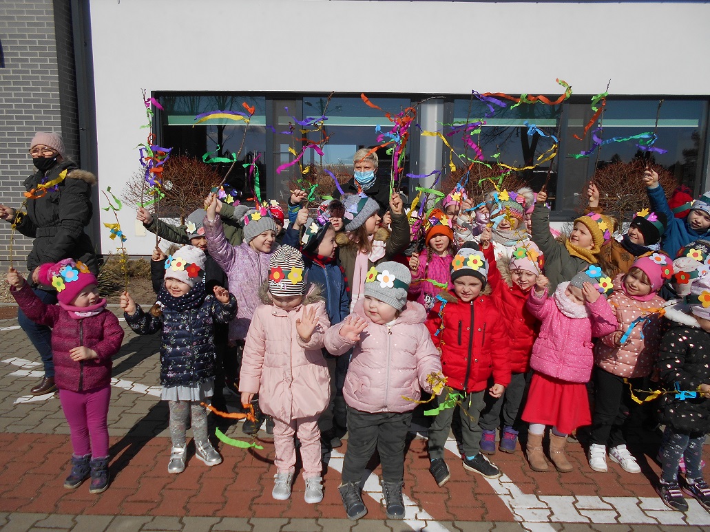 W dniu 22 marca dzieci z naszego przedszkola świętowały Pierwszy Dzień Wiosny. Barwnym korowodem wspólnie z gałązkami oraz wianuszkami przemaszerowały ulicami Maniewa - skandując hasło: „Witaj wiosno! bądź już z nami ! bądź zielona i z kwiatkami !". Następnie wszyscy udaliśmy się do przedszkola gdzie zrobiliśmy sobie pamiątkowe zdjęcia i świętowaliśmy dalej. Mamy nadzieję, że zimę zobaczymy dopiero za rok