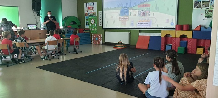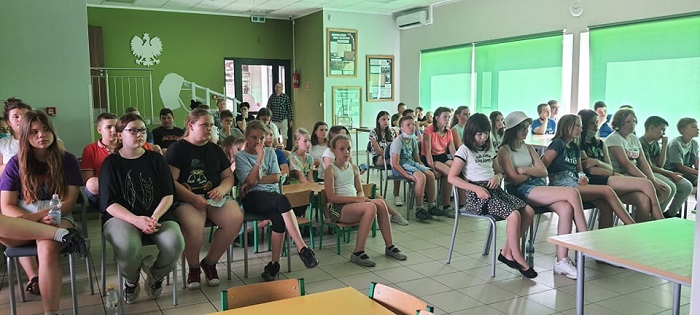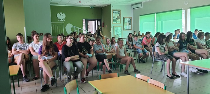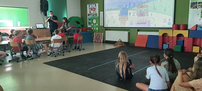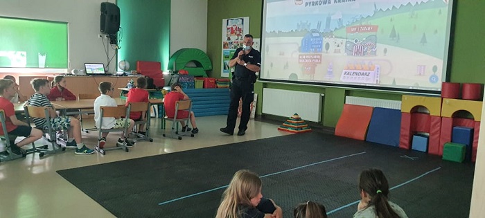Jak co roku, społeczność szkolna wzięła udział w spotkaniu z przedstawicielem Komendy Powiatowej Policji w Obornikach - panem Pawłem Witzbergiem, który przypomniał nam najważniejsze zasady zachowania się i postępowania podczas letniego wypoczynku. Zabawy na świeżym powietrzu, kąpiele wodne jak również spotkania z nieznajomymi oraz reakcje na niebezpieczne zachowania innych osób były głównym tematem rozmów z uczniami. Z pewnością spotkanie miało olbrzymią wartość edukacyjną dla naszych uczniów. Serdecznie zapraszamy również na stronę pełną zabaw, które uczą przez zabawę jak należy postępować w trudnych sytuacjach : https://pyrek.pl/