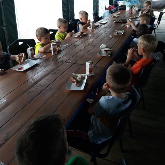 Miło, przyjemnie, zdrowo i pożytecznie spędziliśmy czas na świeżym powietrzu wśród przyjaznych zwierząt, które można było dotykać głaskać i przytulać. Jeździliśmy także ciągnikiem, bawiliśmy się na dmuchańcach z małą przerwą na kiełbaskę z grilla. Wszyscy szczęśliwi i zadowoleni wróciliśmy do przedszkola. Ależ to była przygoda! Pobyt w Kacperkowie okazał się niesamowitym przeżyciem! Dostarczył przedszkolakommnóstwo radości i wyjątkowych wrażeń!