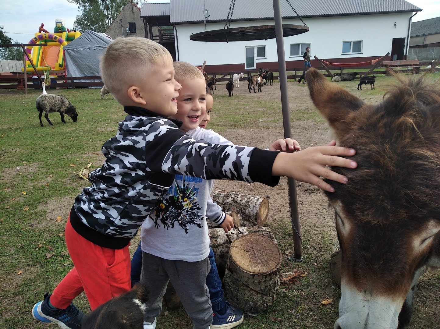 Dnia 15 września grupy 5 i 6 –latków wybrały się na wspaniałą wycieczkę do Rancza Kacperkowo. To przepiękne miejsce, które oferuje dzieciom niezliczoną liczbę atrakcji, mieszka w nim ponad 400 zwierząt.