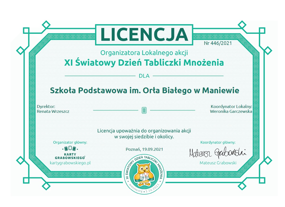 W piątek w naszej szkole odbył się XI Światowy Dzień Tabliczki Mnożenia. Akcja miała na celu zachęcić wszystkich do przypomnienia sobie tabliczki mnożenia. Uczniowie oraz pracownicy szkoły mogli się przekonać czy są ekspertami tabliczki mnożenia. W tym dniu role się trochę odwróciły i to uczniowie mogli odpytywać nauczycieli. Od samego rana podczas przerw zespoły egzaminatorów przeprowadzały w szkole egzaminy do którego każdy mógł przystąpić.