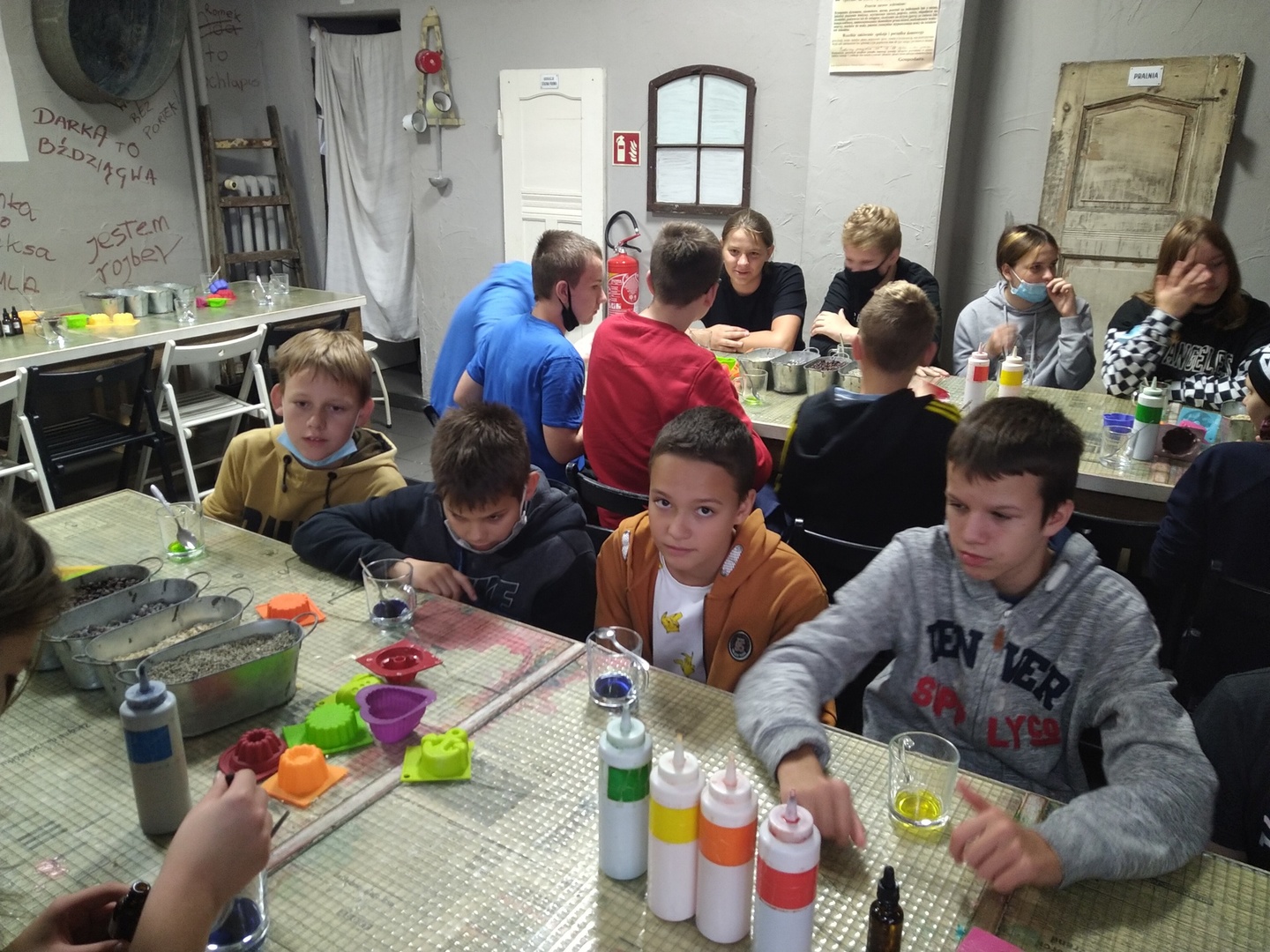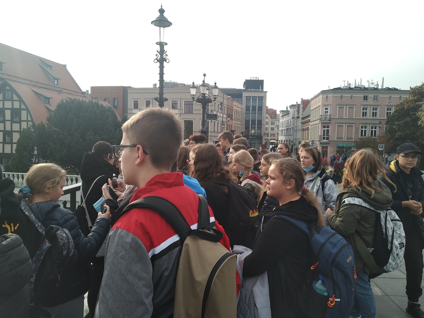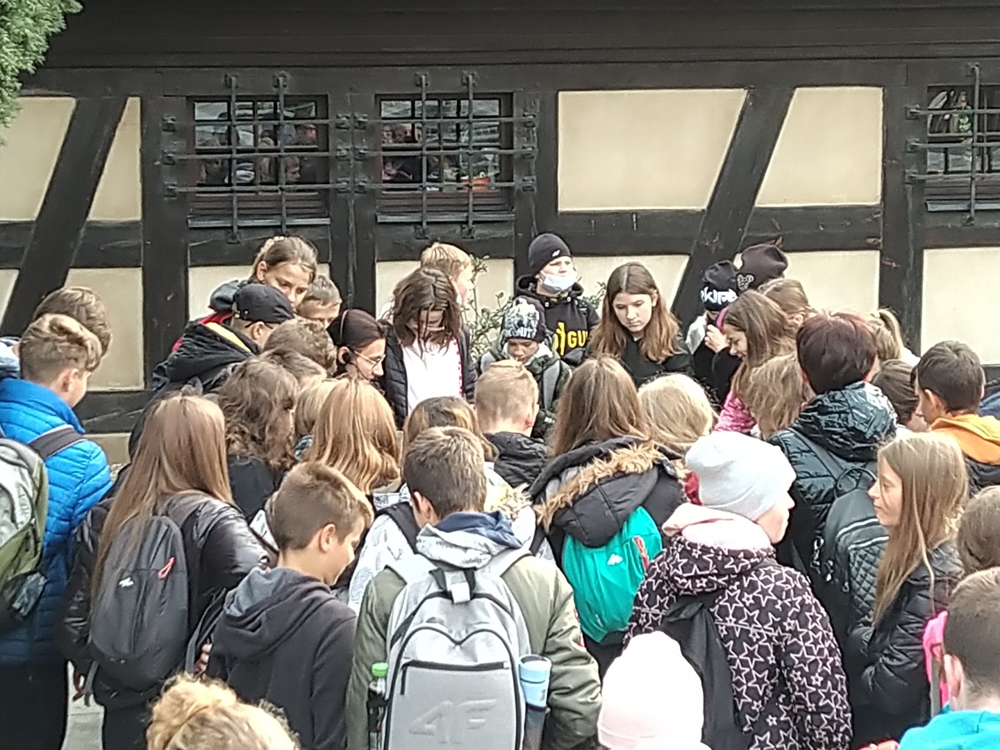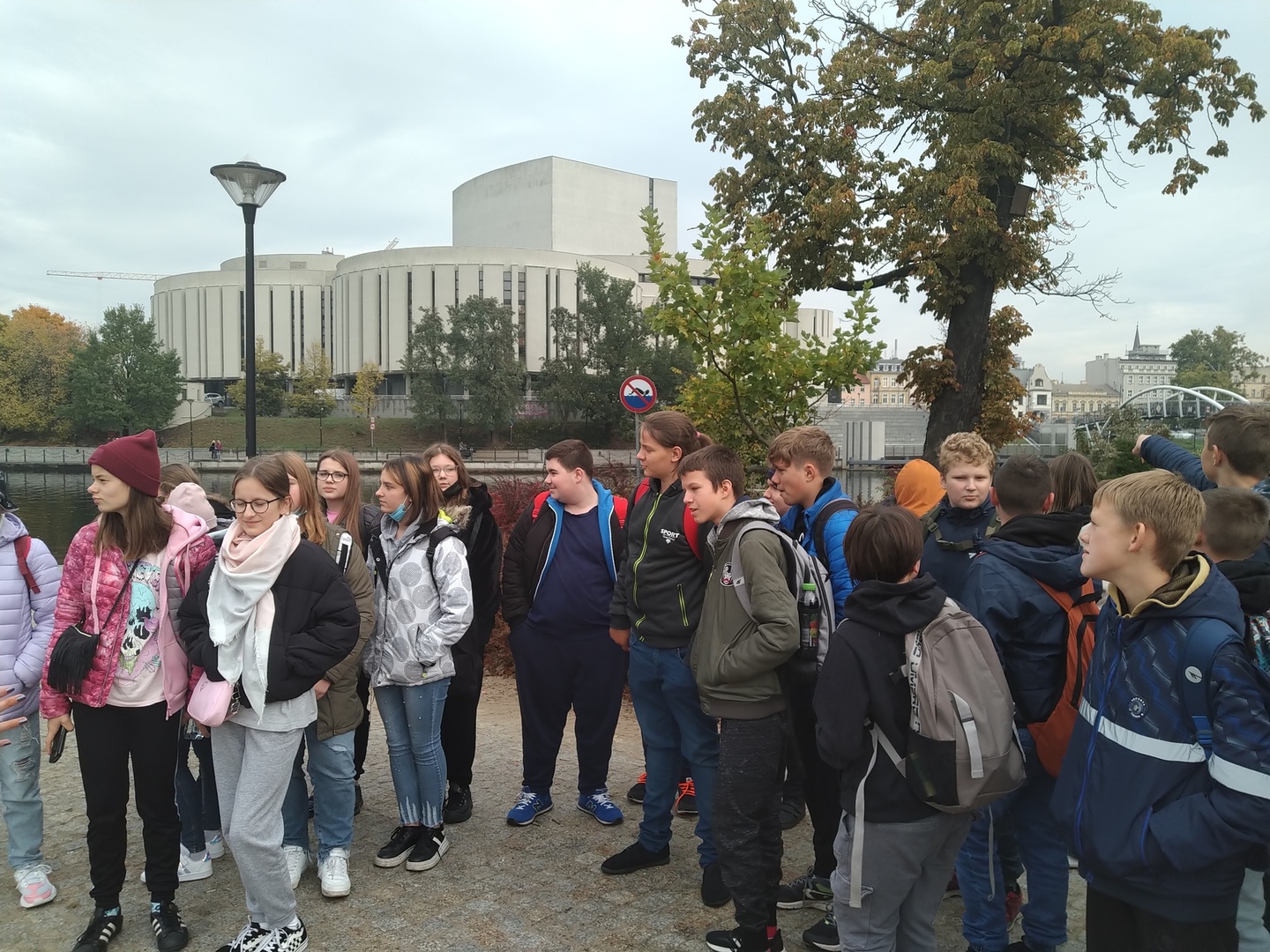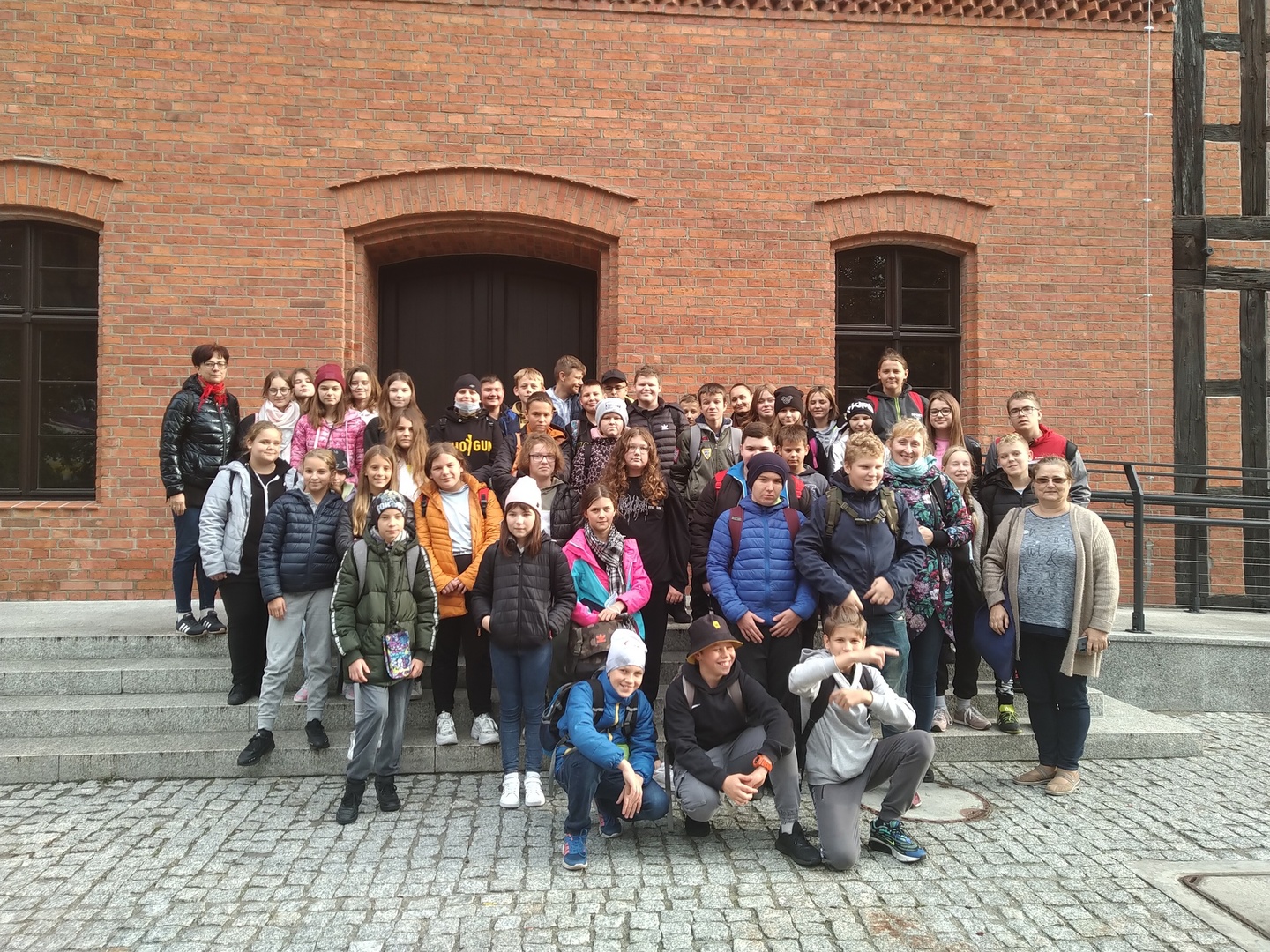 Dnia 19.10. 2021 odbyła się długo oczekiwana wycieczka do Bydgoszczy. Wzięli w niej udział uczniowie kl. VI, VIIA i VII B. Bydgoszcz przywitała nas jesiennym słońcem. Początkowo udaliśmy się pod gmach Opery Nova, następnie podziwiając nadrzeczną zabudowę, zabytkowe spichrze dotarliśmy do Katedry p.w. Św. Marcina i Mikołaja. Dalej udaliśmy się w kierunku mostu im. Jerzego Sulimy-Kamińskiego, na którym zatrzymaliśmy się, by podziwiać i sfotografować panoramę Bydgoszczy oraz rzeźbę unoszącą się nad nurtem Brdy, czyli linoskoczka zgrabnie balansującego na linie. Linoskoczek upamiętnia wejście Polski do Unii Europejskiej w 2004 r. Kolejnym punktem wycieczki było przejście do Muzeum Mydła i Historii Brudu. Tam podczas godzinnego zwiedzania oraz warsztatów poznaliśmy historię higieny człowieka oraz dowiedzieliśmy się, jak ludzie dbali o siebie w danym okresie historycznym. Ponadto podczas mydlanych warsztatów każdy uczestnik wykonał swoje własne mydełko, które zabrał do domu. Dodatkowo uczestnicy mogli zakupić pamiątki oraz ręcznie robione mydełka. Dla uczestników wycieczki zaplanowaliśmy obiad w Restauracji Karczma Młyńska znajdującej się na Wyspie Młyńskiej. Po smacznym obiedzie udaliśmy się do miejsca , które wzbudzało najwięcej emocji, Exploseum- dawnej fabryki dynamitu. W trakcie długiego spaceru podziemnymi korytarzami, dowiedzieliśmy się kim była Alfred Nobel, jak powstaje nitrogliceryna, a także jakie materiały wybuchowe produkowano w Exploseum. Zmęczeni, ale pełni wrażeń szczęśliwie wróciliśmy do domu. Nie było wśród nas nikogo, kto by nie zgodził się z twierdzeniem” WARTO PODRÓŻOWAĆ”.