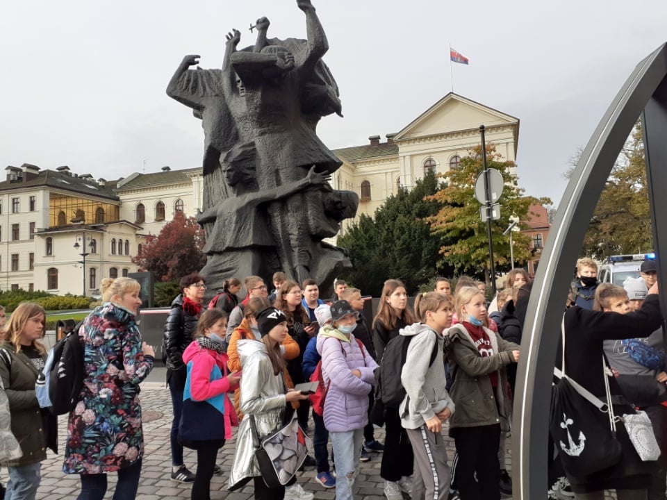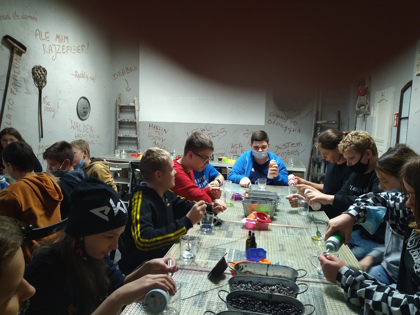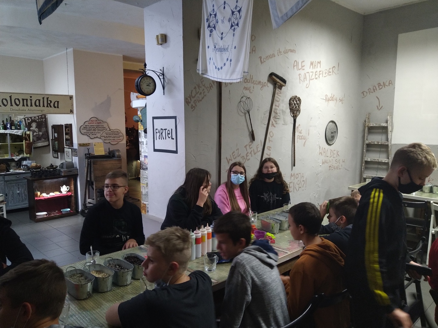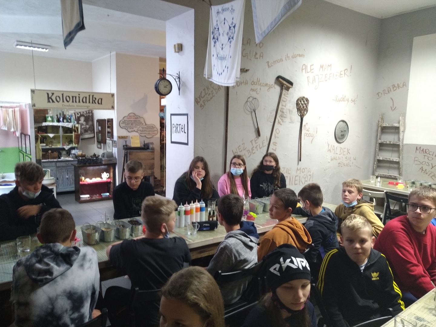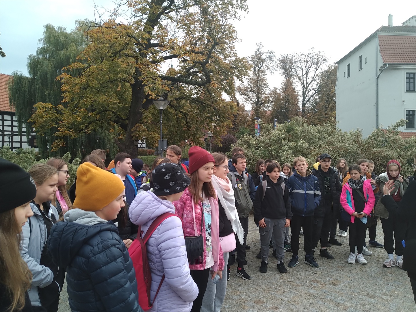 Dnia 19.10. 2021 odbyła się długo oczekiwana wycieczka do Bydgoszczy. Wzięli w niej udział uczniowie kl. VI, VIIA i VII B. Bydgoszcz przywitała nas jesiennym słońcem. Początkowo udaliśmy się pod gmach Opery Nova, następnie podziwiając nadrzeczną zabudowę, zabytkowe spichrze dotarliśmy do Katedry p.w. Św. Marcina i Mikołaja. Dalej udaliśmy się w kierunku mostu im. Jerzego Sulimy-Kamińskiego, na którym zatrzymaliśmy się, by podziwiać i sfotografować panoramę Bydgoszczy oraz rzeźbę unoszącą się nad nurtem Brdy, czyli linoskoczka zgrabnie balansującego na linie. Linoskoczek upamiętnia wejście Polski do Unii Europejskiej w 2004 r. Kolejnym punktem wycieczki było przejście do Muzeum Mydła i Historii Brudu. Tam podczas godzinnego zwiedzania oraz warsztatów poznaliśmy historię higieny człowieka oraz dowiedzieliśmy się, jak ludzie dbali o siebie w danym okresie historycznym. Ponadto podczas mydlanych warsztatów każdy uczestnik wykonał swoje własne mydełko, które zabrał do domu. Dodatkowo uczestnicy mogli zakupić pamiątki oraz ręcznie robione mydełka. Dla uczestników wycieczki zaplanowaliśmy obiad w Restauracji Karczma Młyńska znajdującej się na Wyspie Młyńskiej. Po smacznym obiedzie udaliśmy się do miejsca , które wzbudzało najwięcej emocji, Exploseum- dawnej fabryki dynamitu. W trakcie długiego spaceru podziemnymi korytarzami, dowiedzieliśmy się kim była Alfred Nobel, jak powstaje nitrogliceryna, a także jakie materiały wybuchowe produkowano w Exploseum. Zmęczeni, ale pełni wrażeń szczęśliwie wróciliśmy do domu. Nie było wśród nas nikogo, kto by nie zgodził się z twierdzeniem” WARTO PODRÓŻOWAĆ”.