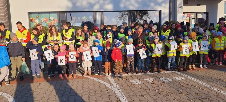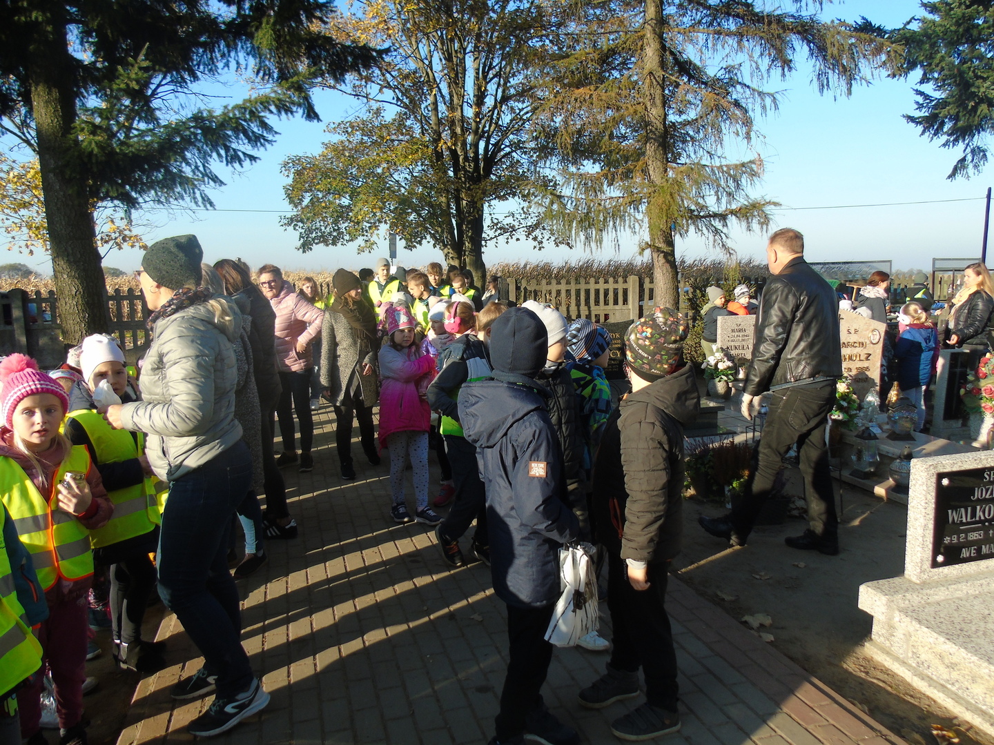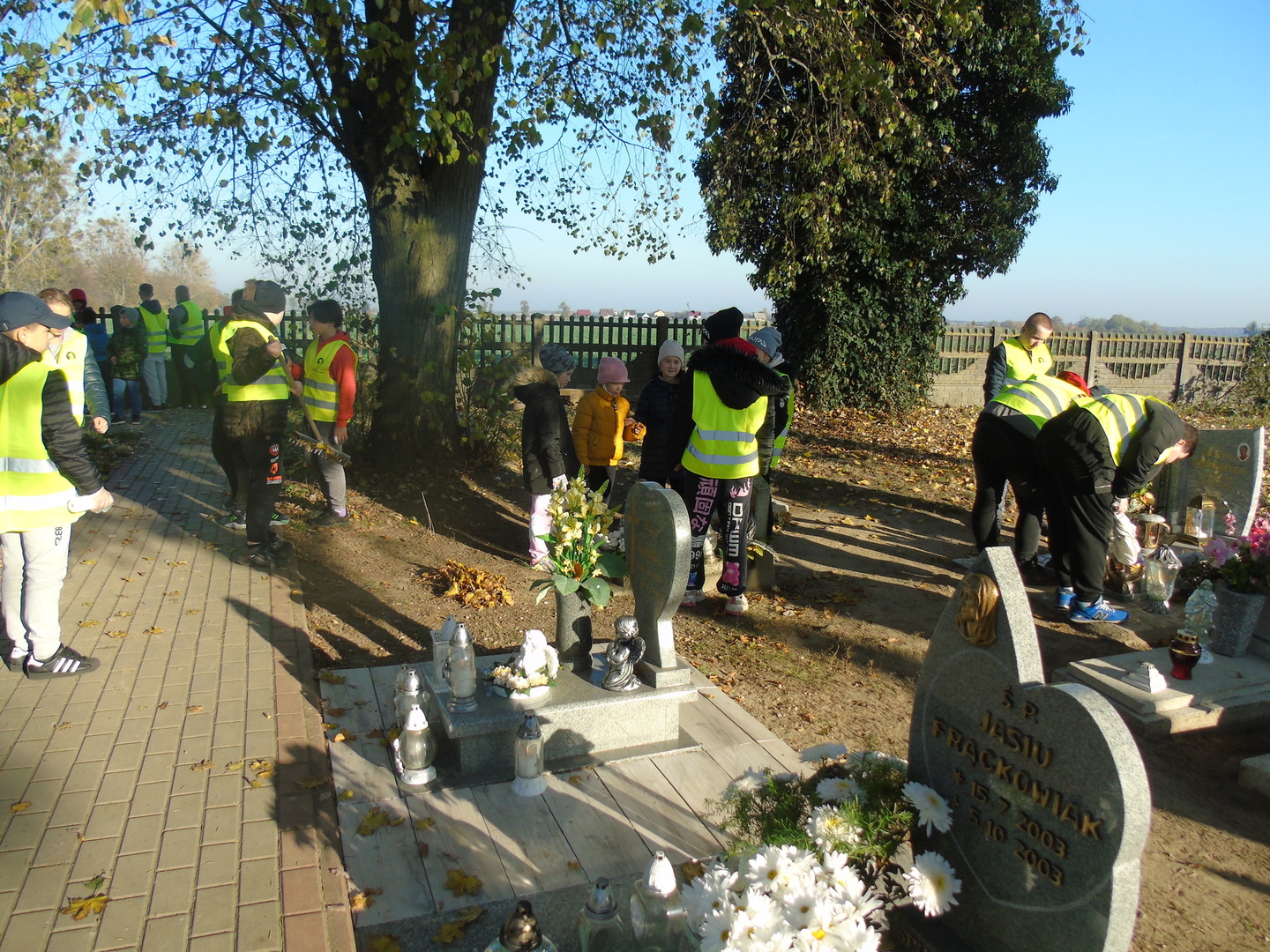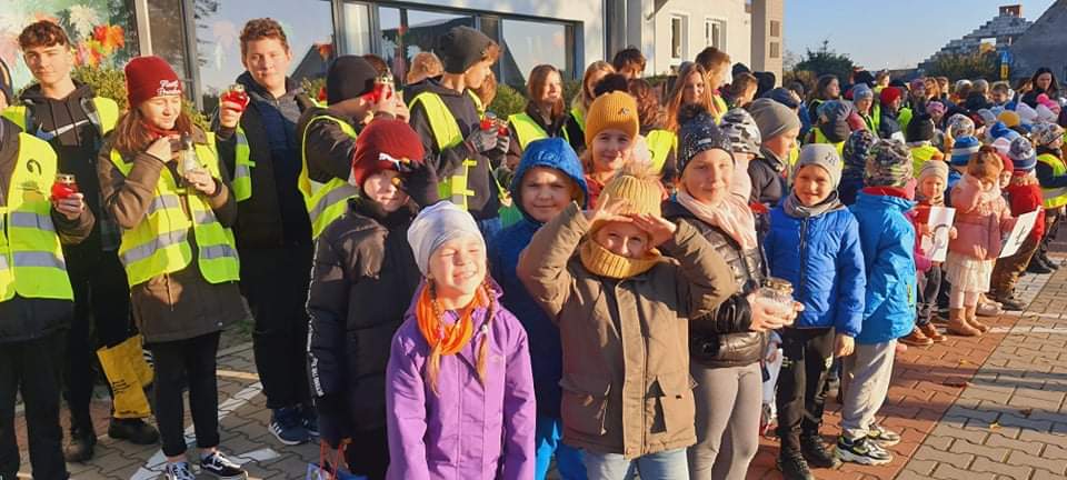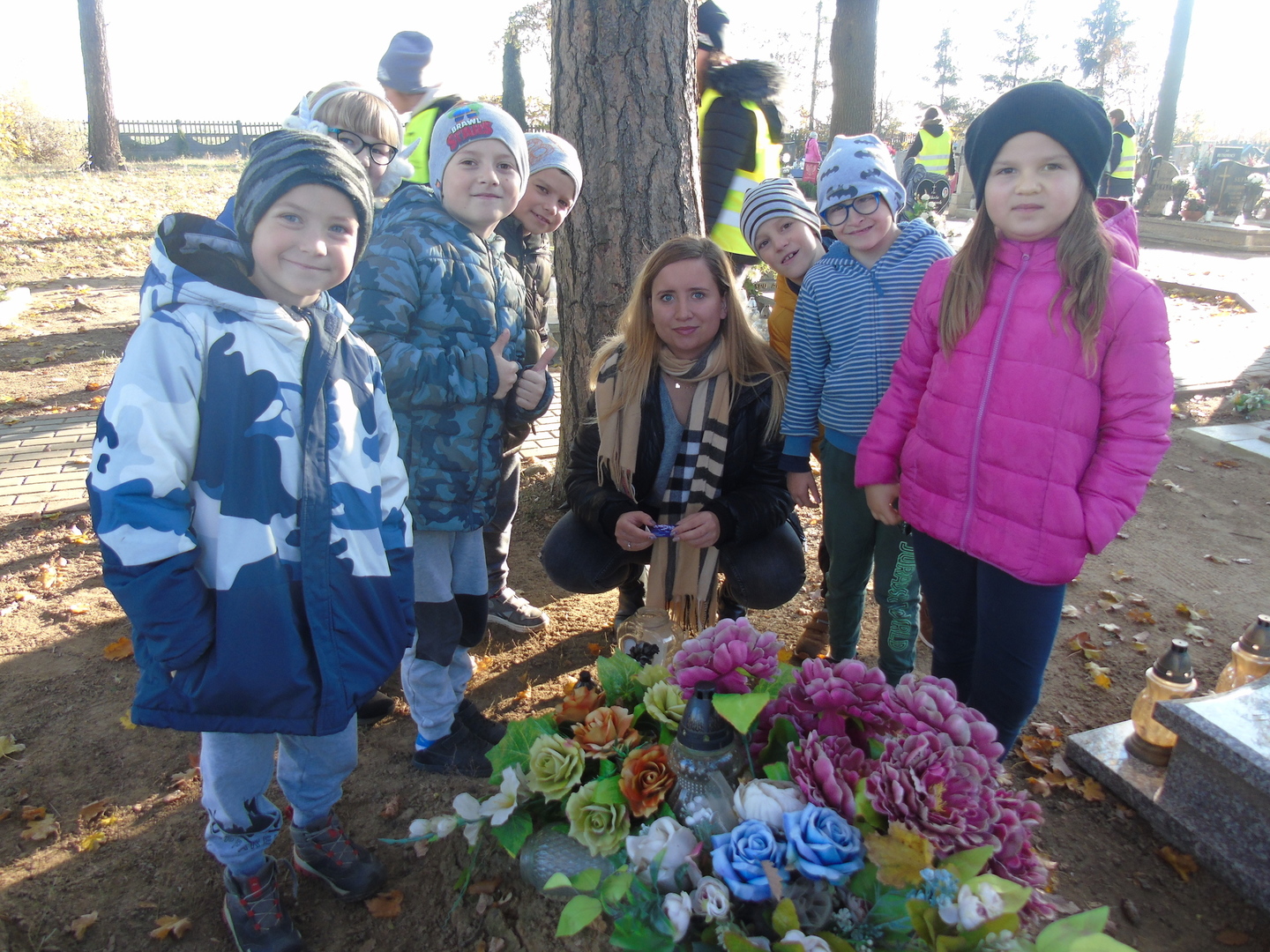 Zespół Szkolno-Przedszkolny w Maniewie po raz kolejny przystąpił do akcji MEiN "Szkoła Pamięta". Uczniowie wszystkich klas, również grup przedszkolnych, przynosili do szkoły białe oraz czerwone znicze. Dnia 29 października o godzinie 09:00 dzieci wraz z nauczycieli zebrali się na boisku szkolnym i po wykonaniu pamiątkowych zdjęć, ubrani w kamizelki odblaskowe, wyruszyli na cmentarz. Tam dzieci wraz z nauczycielami zapalały znicze na grobach oraz grabiły liście. Słoneczna i ciepła pogoda z pewnością sprzyjała ciężko wykonanej pracy. Serdecznie dziękujemy dzieciom i rodzicom za udział w akcji oraz za liczną i udaną zbiórkę zniczy. Dziękujemy za wsparcie i z niecierpliwością czekamy na kolejną okazję do wspólpracy :)