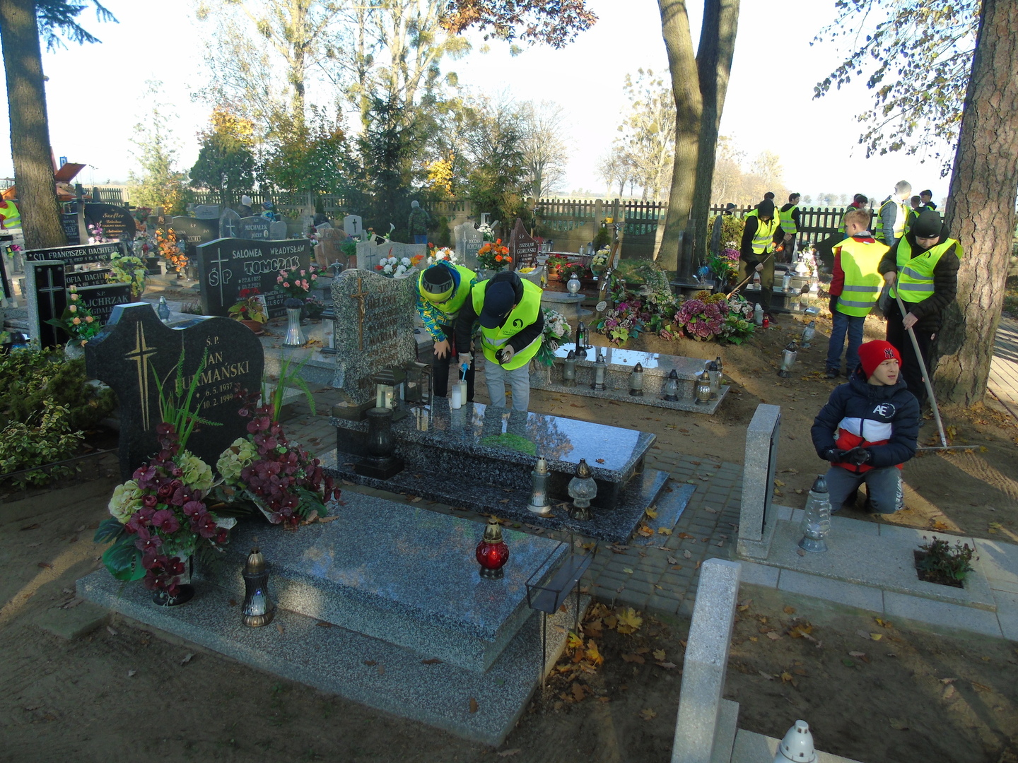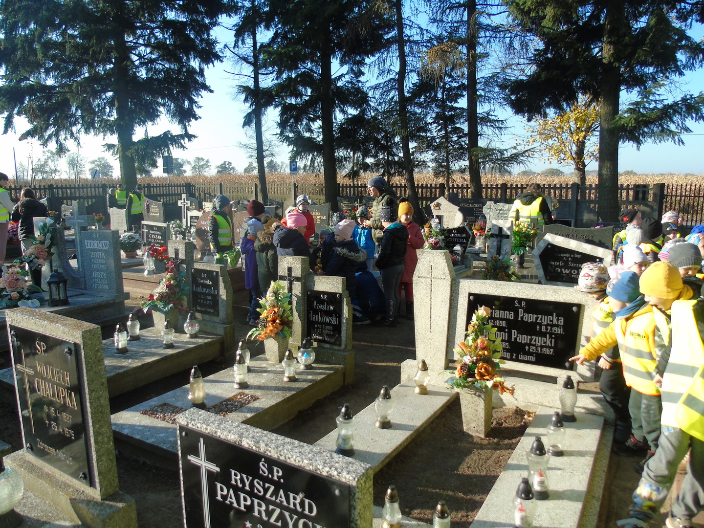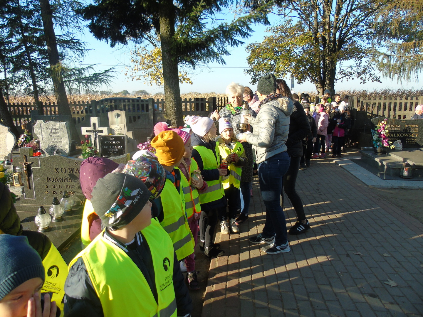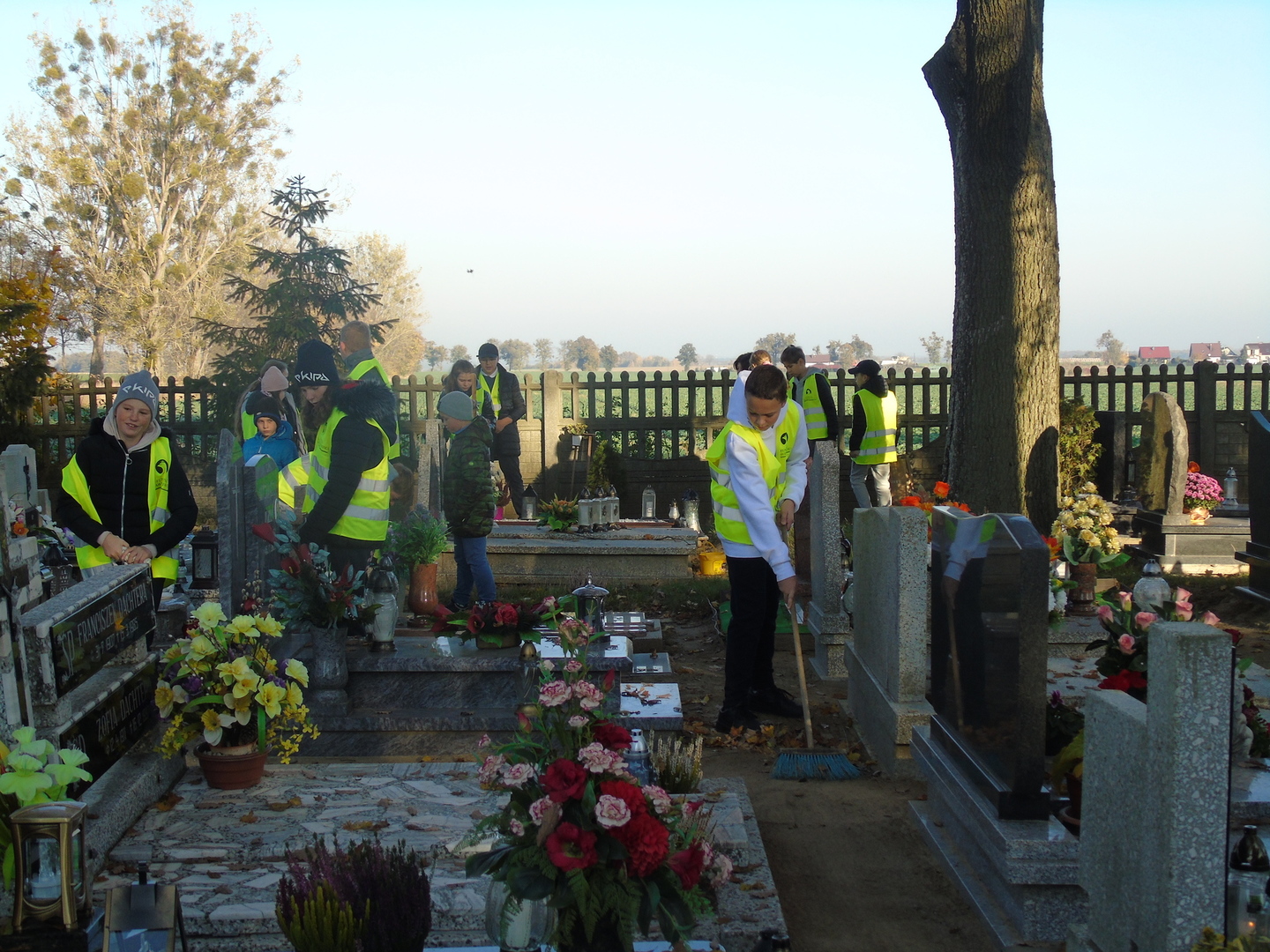 Zespół Szkolno-Przedszkolny w Maniewie po raz kolejny przystąpił do akcji MEiN "Szkoła Pamięta". Uczniowie wszystkich klas, również grup przedszkolnych, przynosili do szkoły białe oraz czerwone znicze. Dnia 29 października o godzinie 09:00 dzieci wraz z nauczycieli zebrali się na boisku szkolnym i po wykonaniu pamiątkowych zdjęć, ubrani w kamizelki odblaskowe, wyruszyli na cmentarz. Tam dzieci wraz z nauczycielami zapalały znicze na grobach oraz grabiły liście. Słoneczna i ciepła pogoda z pewnością sprzyjała ciężko wykonanej pracy. Serdecznie dziękujemy dzieciom i rodzicom za udział w akcji oraz za liczną i udaną zbiórkę zniczy. Dziękujemy za wsparcie i z niecierpliwością czekamy na kolejną okazję do wspólpracy :)