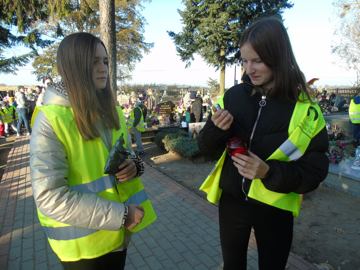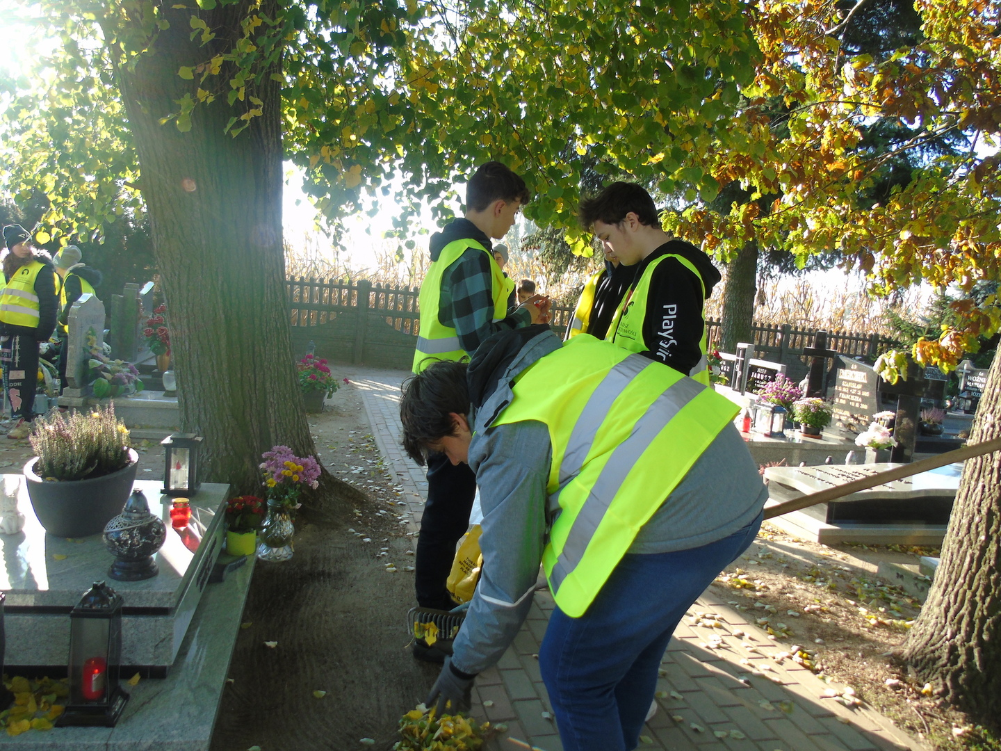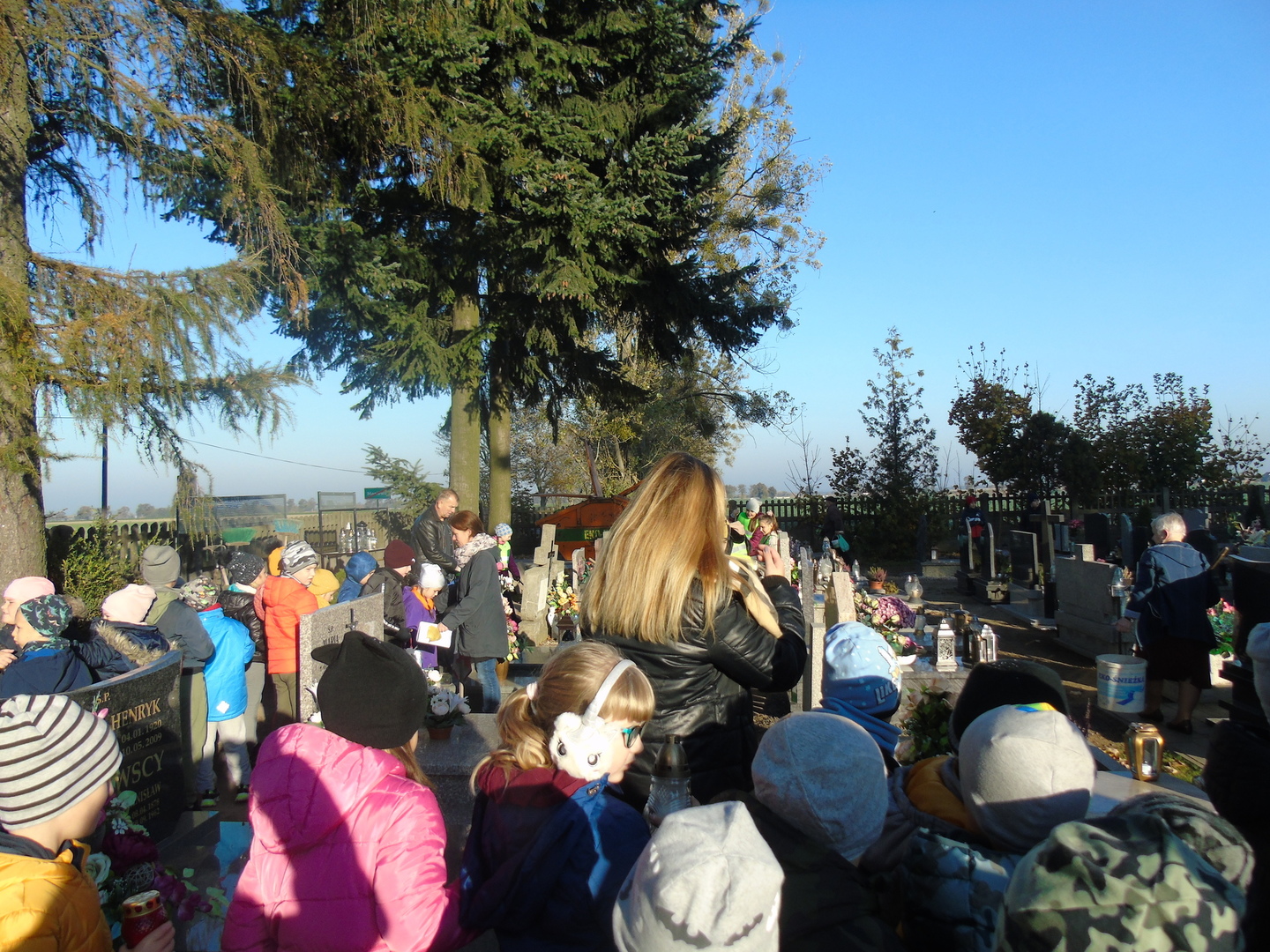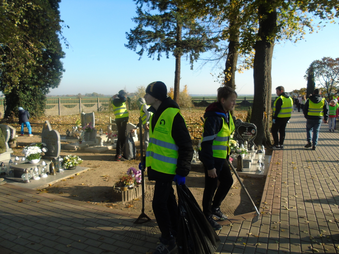 Zespół Szkolno-Przedszkolny w Maniewie po raz kolejny przystąpił do akcji MEiN "Szkoła Pamięta". Uczniowie wszystkich klas, również grup przedszkolnych, przynosili do szkoły białe oraz czerwone znicze. Dnia 29 października o godzinie 09:00 dzieci wraz z nauczycieli zebrali się na boisku szkolnym i po wykonaniu pamiątkowych zdjęć, ubrani w kamizelki odblaskowe, wyruszyli na cmentarz. Tam dzieci wraz z nauczycielami zapalały znicze na grobach oraz grabiły liście. Słoneczna i ciepła pogoda z pewnością sprzyjała ciężko wykonanej pracy. Serdecznie dziękujemy dzieciom i rodzicom za udział w akcji oraz za liczną i udaną zbiórkę zniczy. Dziękujemy za wsparcie i z niecierpliwością czekamy na kolejną okazję do wspólpracy :)
