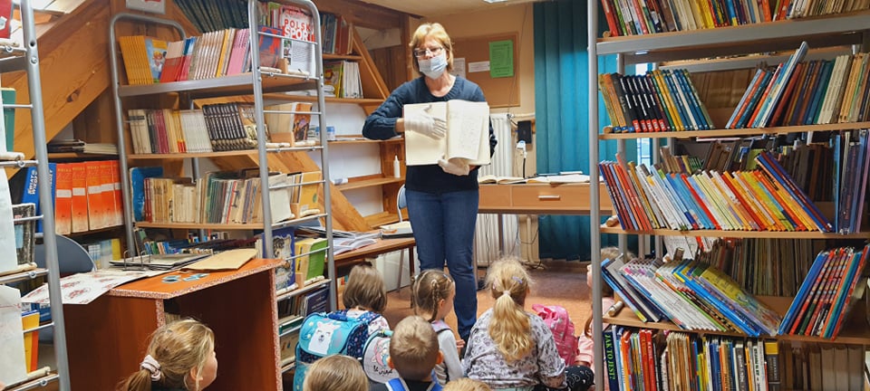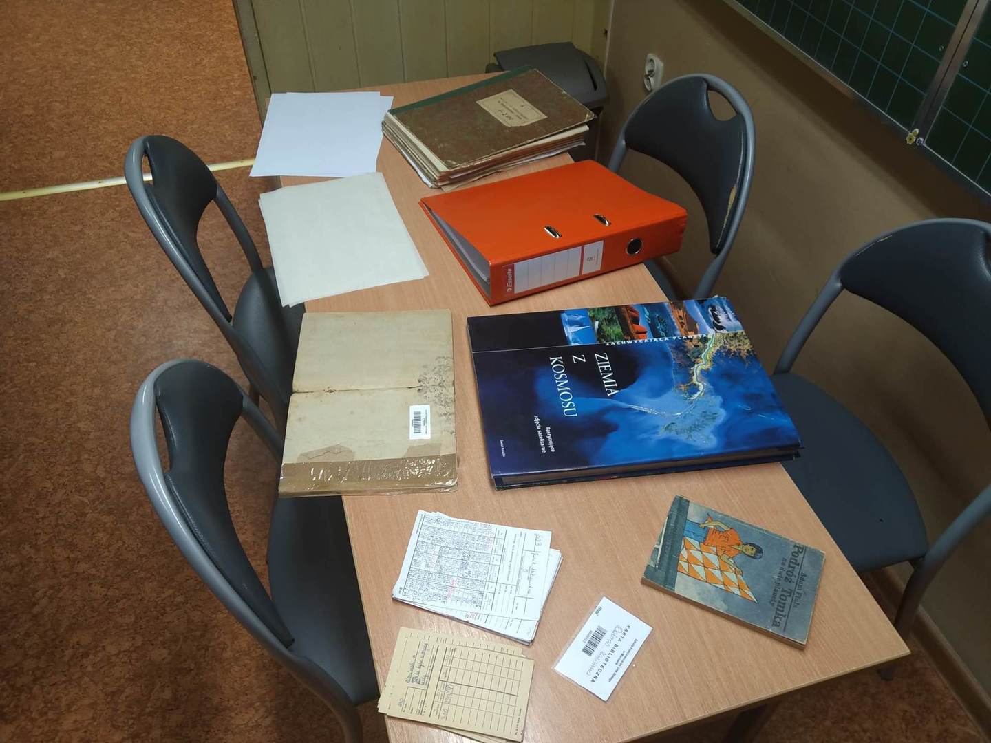 W ostatnich dniach uczniowie naszej szkoły mieli okazję zapoznać się z pracą archiwisty podczas krótkich warsztatów, które poprowadziła Pani Ania Górowska. Na zajęcia uczniowie zostali zaproszeni do biblioteki szkolnej, w której zgromadzono niezwykle cenne dla historii naszej społeczności dokumenty (m.in. kroniki z 1913 roku oraz lat późniejszych, stare dzienniki lekcyjne, arkusze ocen). Jak na prawdziwego archiwistę przystało, Pani Górowska w białych rękawiczkach oraz maseczce na twarzy zaprezentowała najstarsze kroniki placówki. Opowiedziała o pracy archiwisty oraz o czynnikach, które mogą mieć negatywny wpływ na stan zachowania dokumentów m.in. o ph naszej skóry, wyjaśniając dlaczego używa rękawiczek i maseczki. Przedstawiła problem tzw. kwaśnego papieru oraz znaczenia digitalizacji zbiorów archiwalnych. Wyjaśniła, również pojęcie archiwum i znaczenie przechowywanych w nim dokumentów dla historyków. Zaprezentowała dokumenty, które świadczą o bogatej historii szkoły. Opowiedziała, co z nich możemy odczytać i w jaki sposób informacje w nich zwarte mogą nam się przydać. Dowiedzieliśmy się również więcej o przeszłości budynku, jak i zmianach jakie zachodziły na przestrzeni wieków w systemie edukacji.