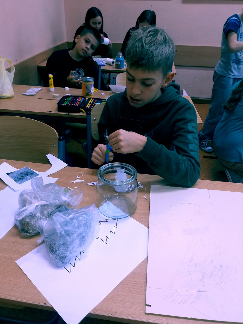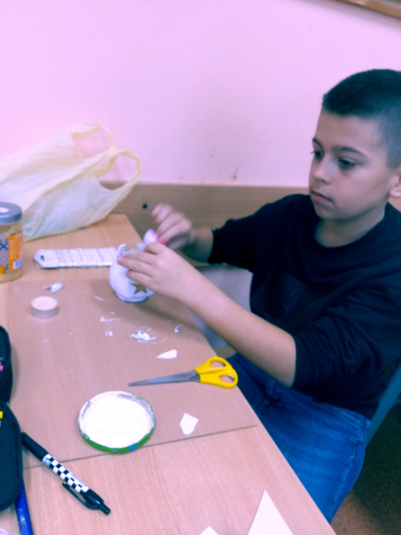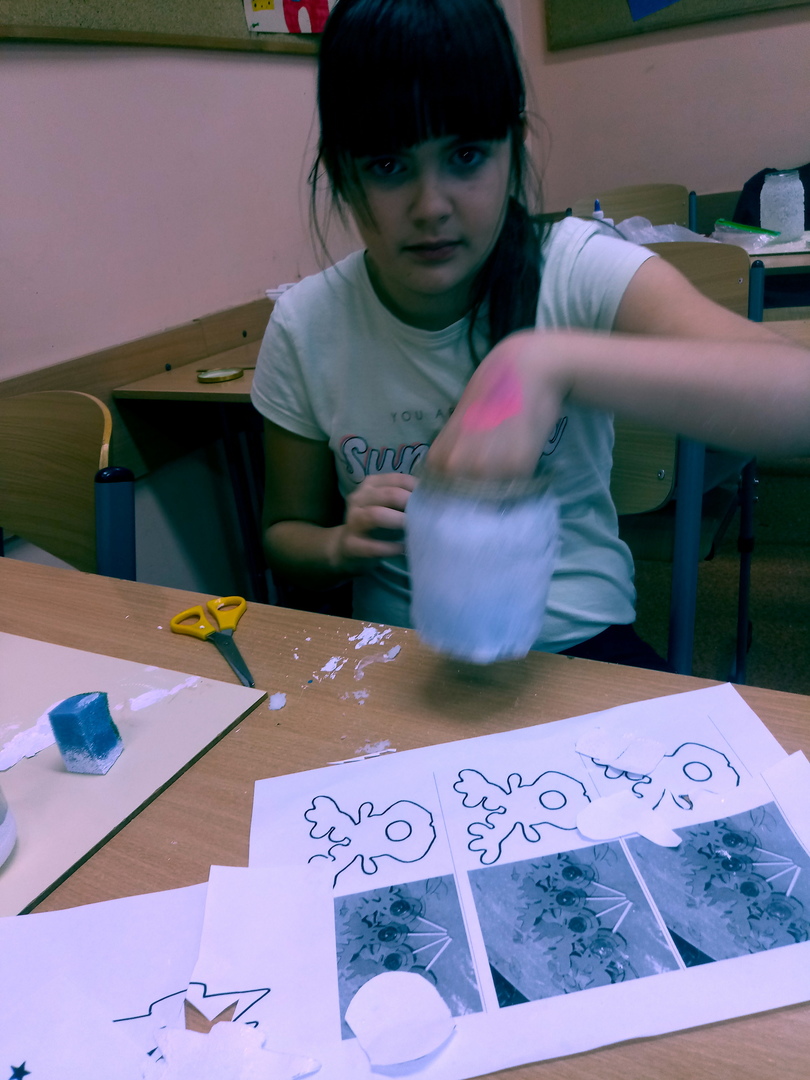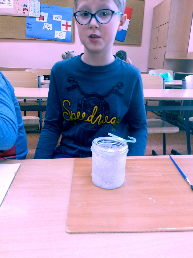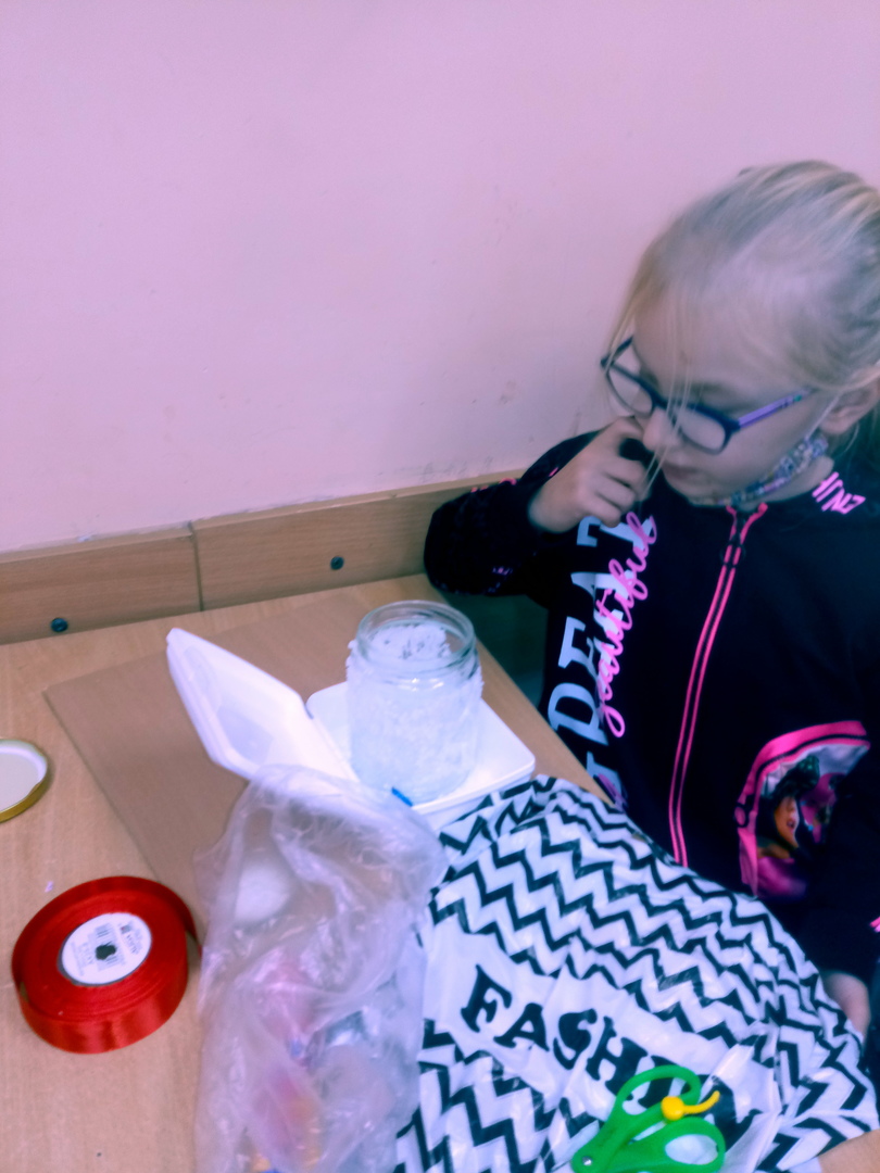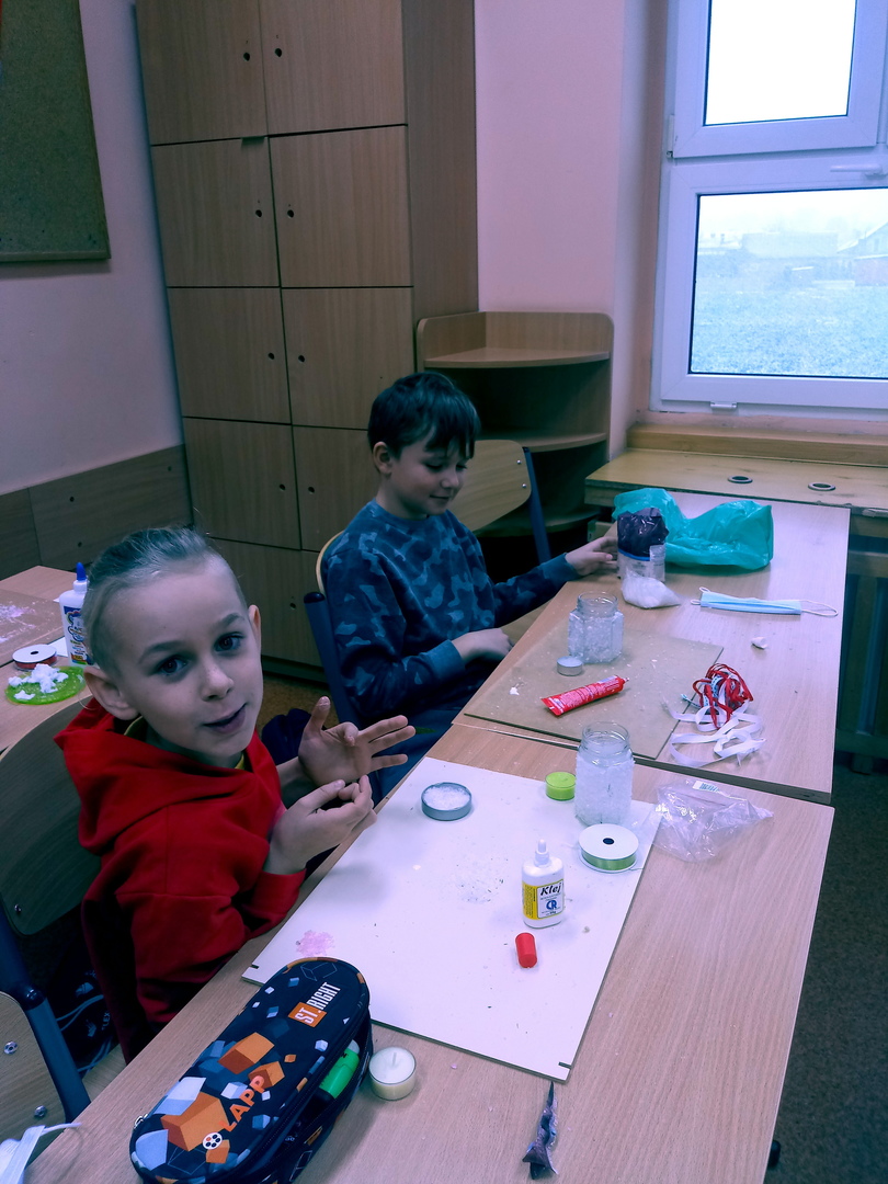 Dzieci od kilku dni podczas techniki przygotowują ozdoby świąteczne. Klasa VI zrobiła z tej okazji przepiękne, choć pracochłonne kule świetlne oraz świeczniki ze słoiczków. Klasa IV zmierzyła się z wykonaniem świeczników ze słoiczków, które posmarowano klejem i obtoczono solą/cukrem - niby metoda bardzo prosta aczkolwiek niezwykle efektowna. Klasa V wykonała natomiast świczniki z użyciem szblonów i farby.