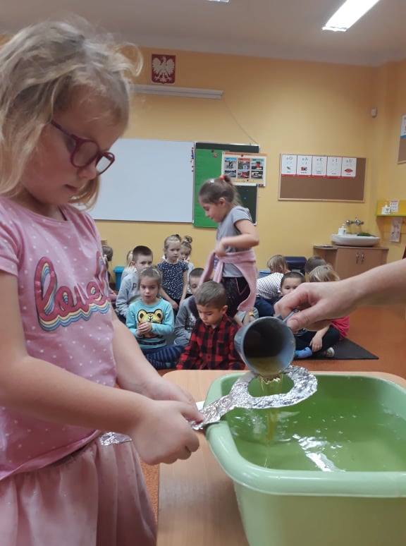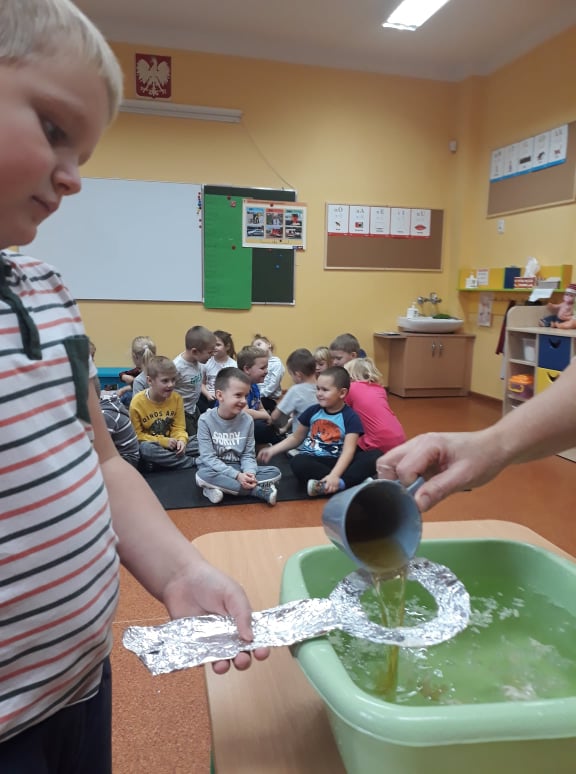 Dnia 29 listopada w naszym przedszkolu obchodziliśmy Andrzejki. Temu wydarzeniu towarzyszyły konkursy, zabawy i wróżby andrzejkowe. Nie zabrakło również tradycyjnego ustawiania „bucików”, „losowania rekwizytów” i innych wróżb związanych z tym świętem. Dużo radości przyniosła dzieciom wróżba najbardziej kojarzona z Andrzejkami – lanie wosku. Czy wróżby się spełnią – przyszłość pokaże. Pewne jest to, że przyniosły dzieciom wiele radości i były okazją do miłej zabawy.