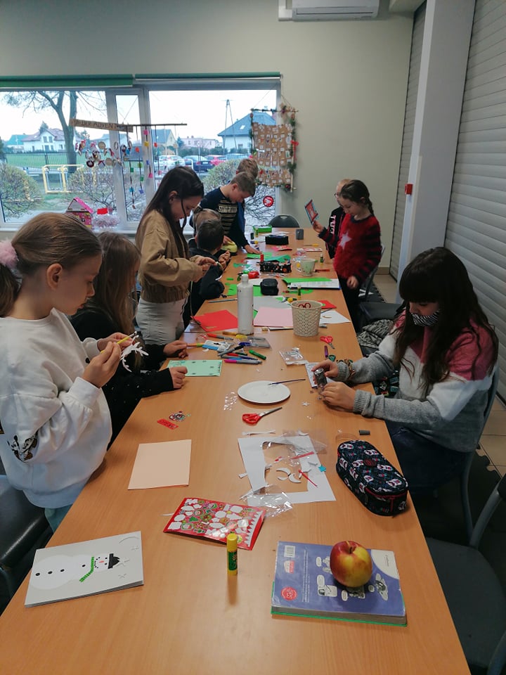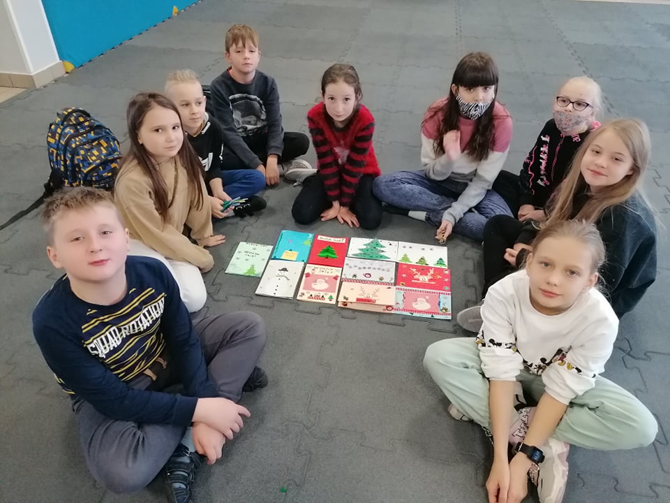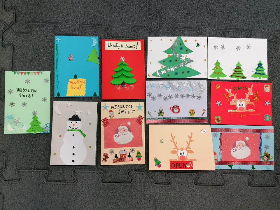 z motywem przewodnim – zima, święta Bożego Narodzenia. Podczas trwania akcji, przyporządkowana została nam szkoła, do której zostaną wysłane przez nas przygotowane kartki.