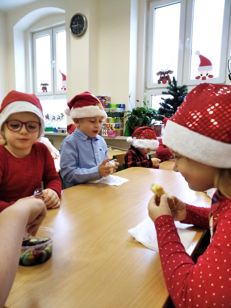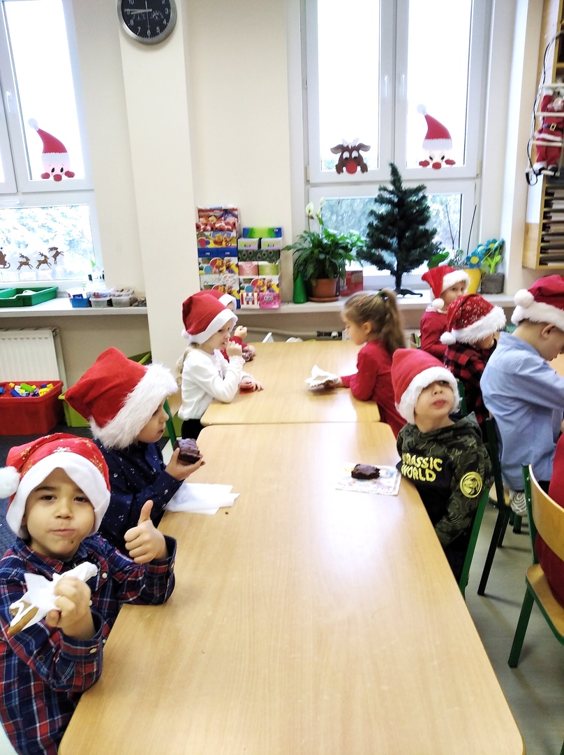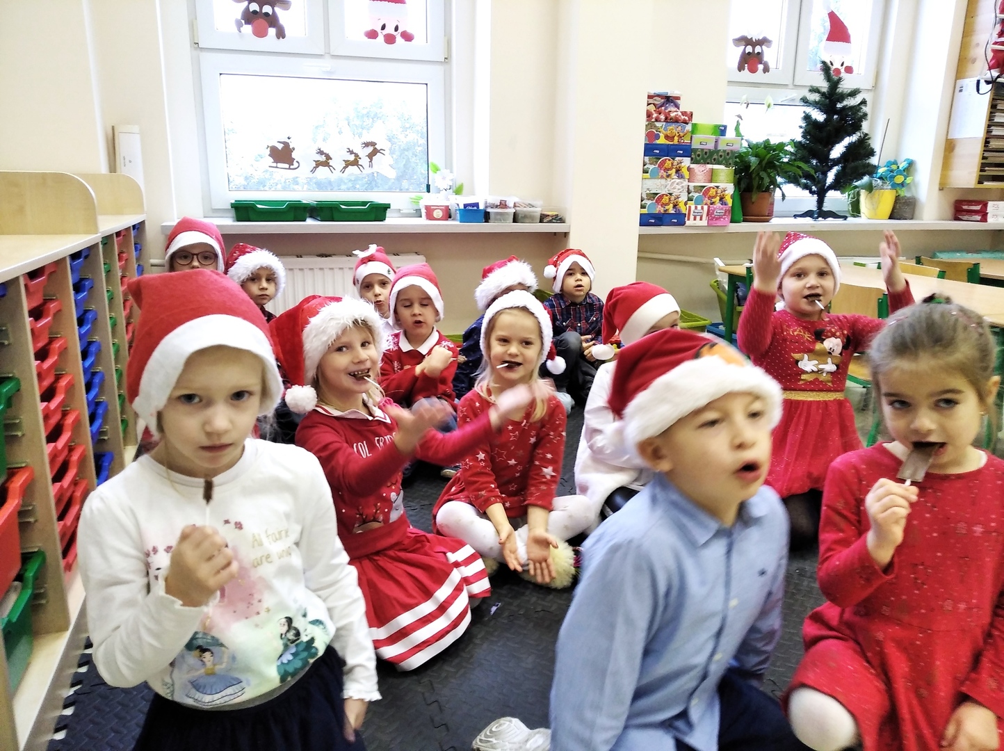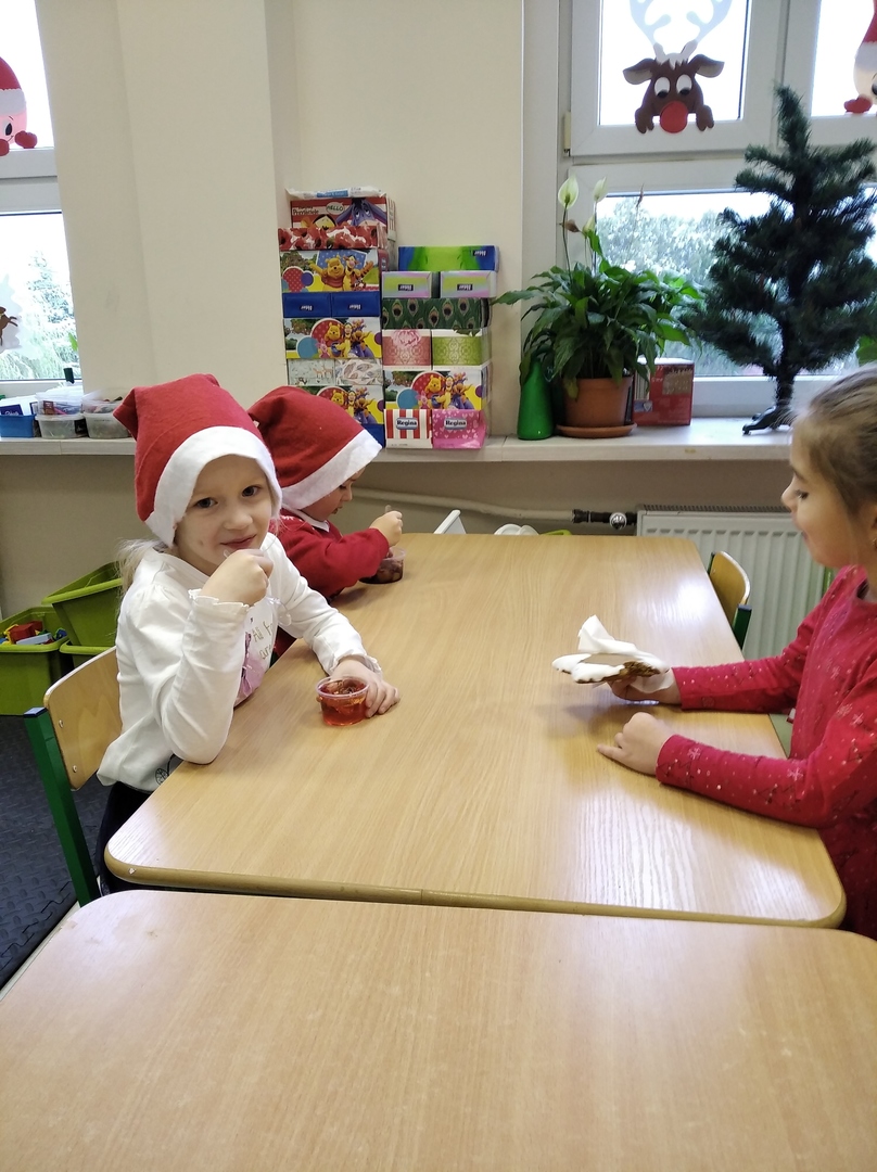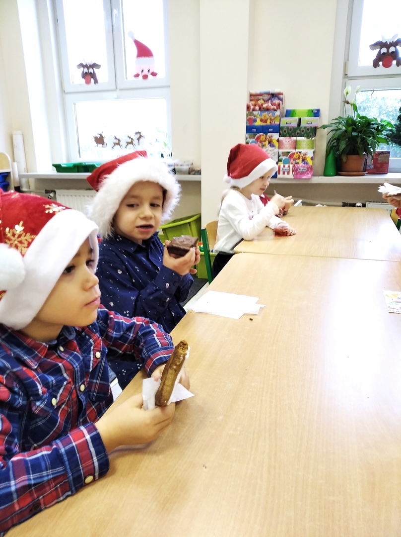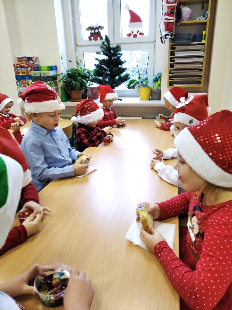6 grudnia to dzień szczególny dla wszystkich dzieci. Właśnie w tym dniu również nasze przedszkolaki czekały na Świętego Mikołaja. Już od samego rana w naszym przedszkolu słychać było piosenki o Mikołaju oraz rozmowy między dziećmi: Ciekawe czy Mikołaj do nas dzisiaj przyjedzie? I przyjechał…. Pojawił się niepostrzeżenie gdy jedliśmy obiad i pojechał dalej. Radość z prezentów była wielka i do tego również pysznie smakowała.