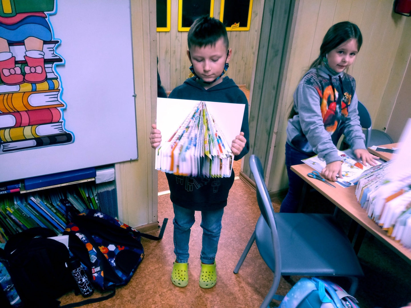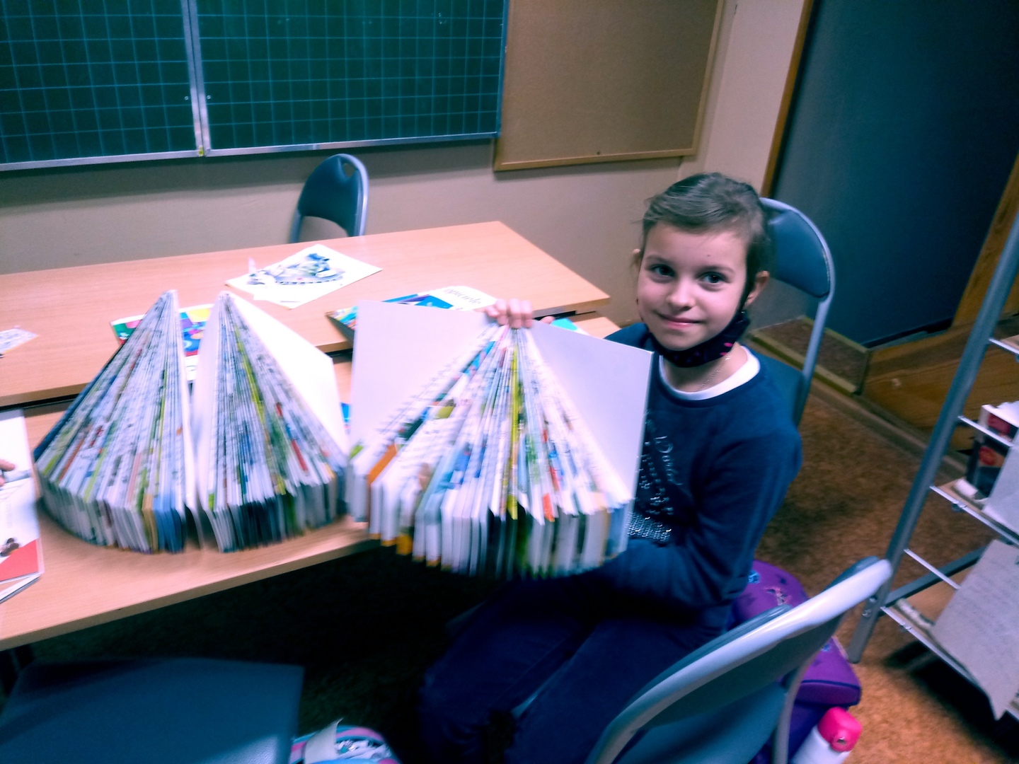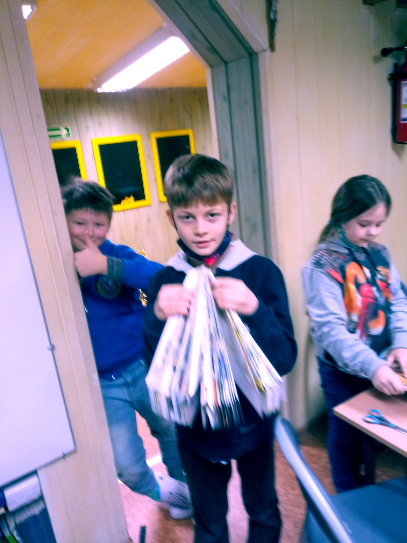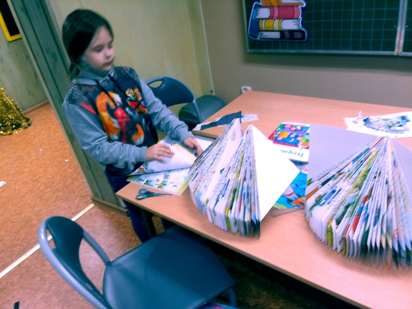 Klasa 3 ponownie zawitała do biblioteki. Tym razem w ramach działań z upcyklingu wykorzystała stare wycofane już z obiegu książki. A z okazji zbliżających się świąt postanowiliśmy przerobić je na mini choinki.