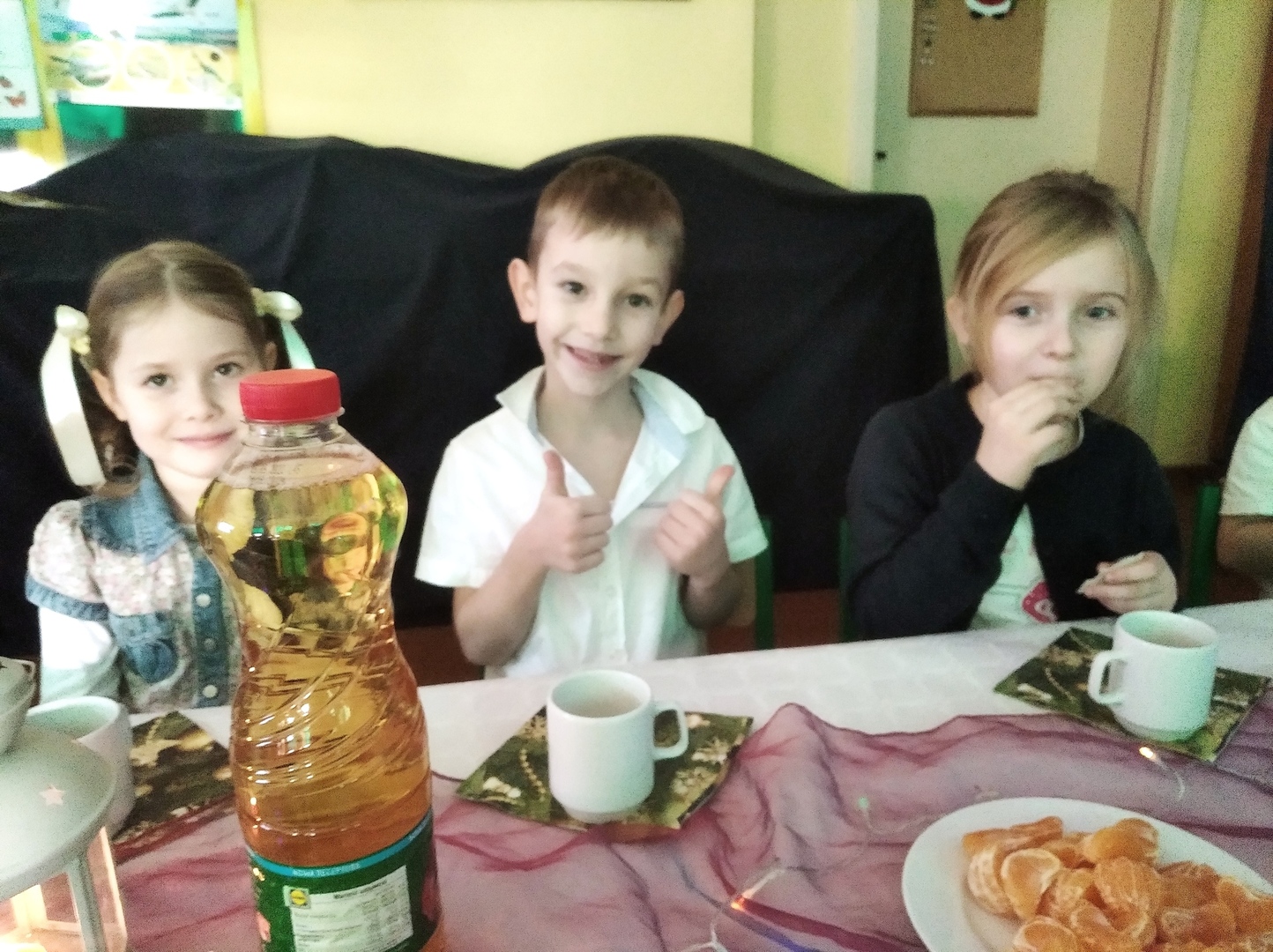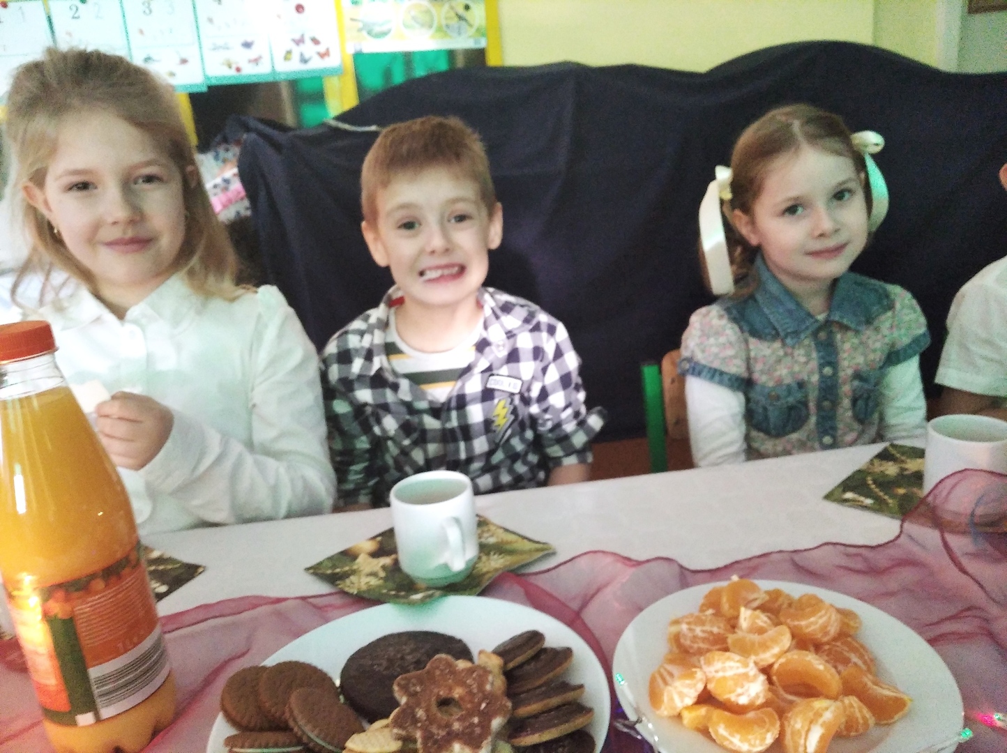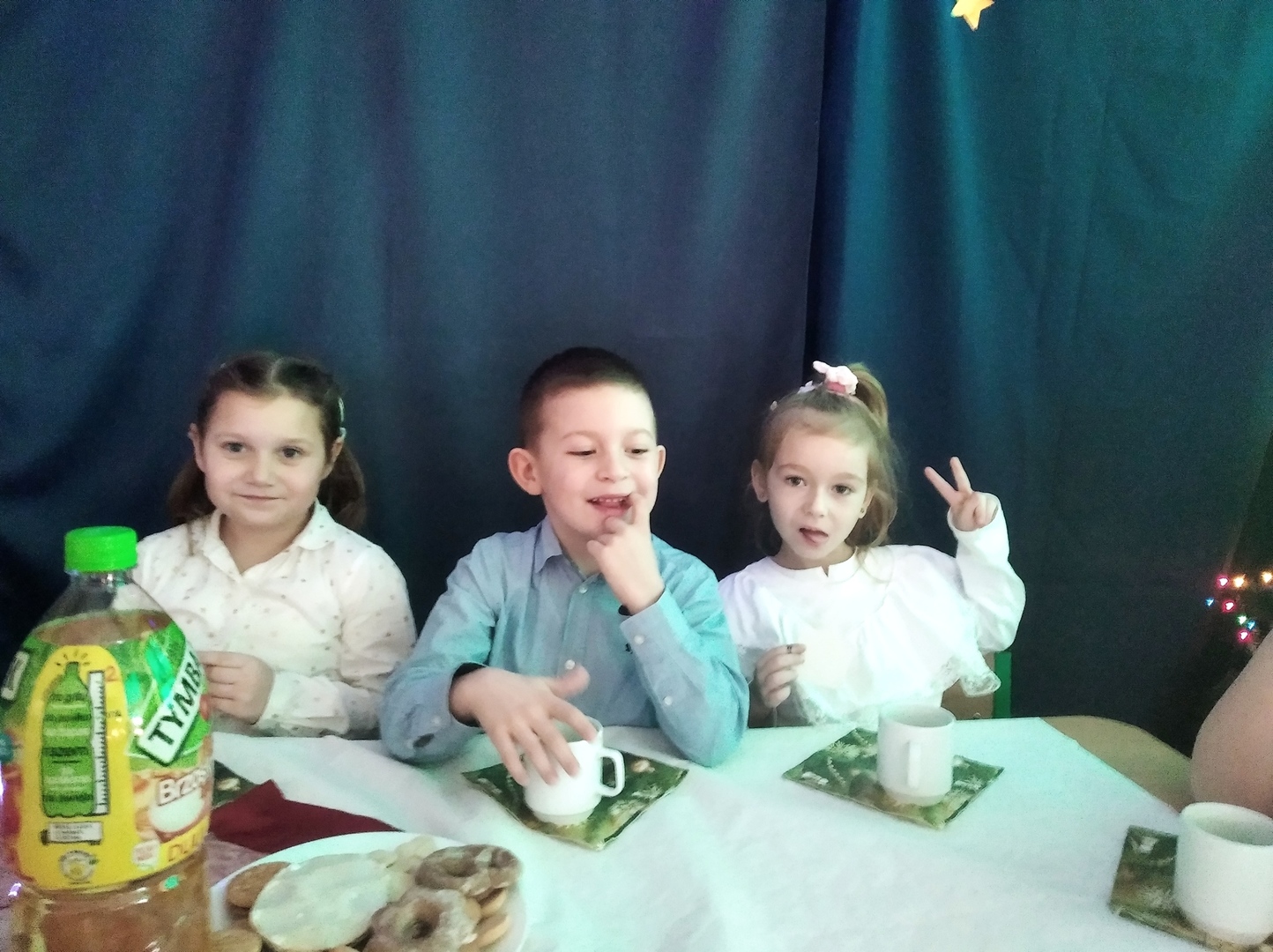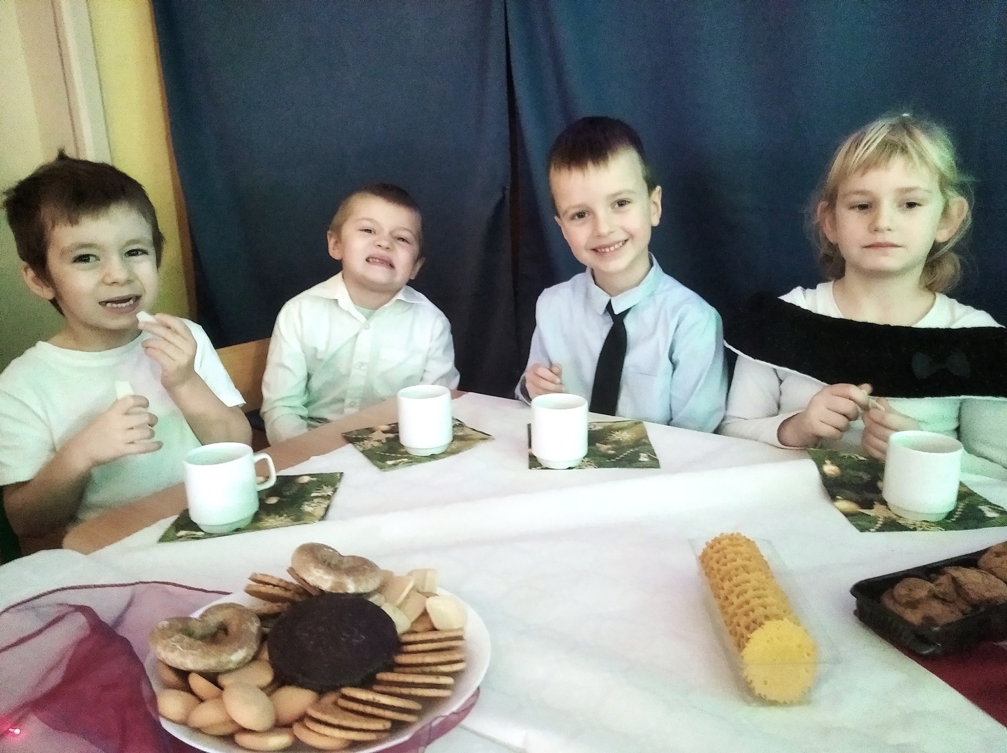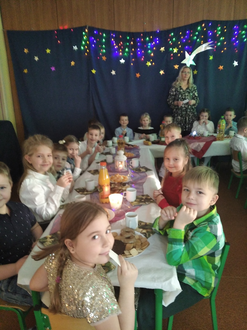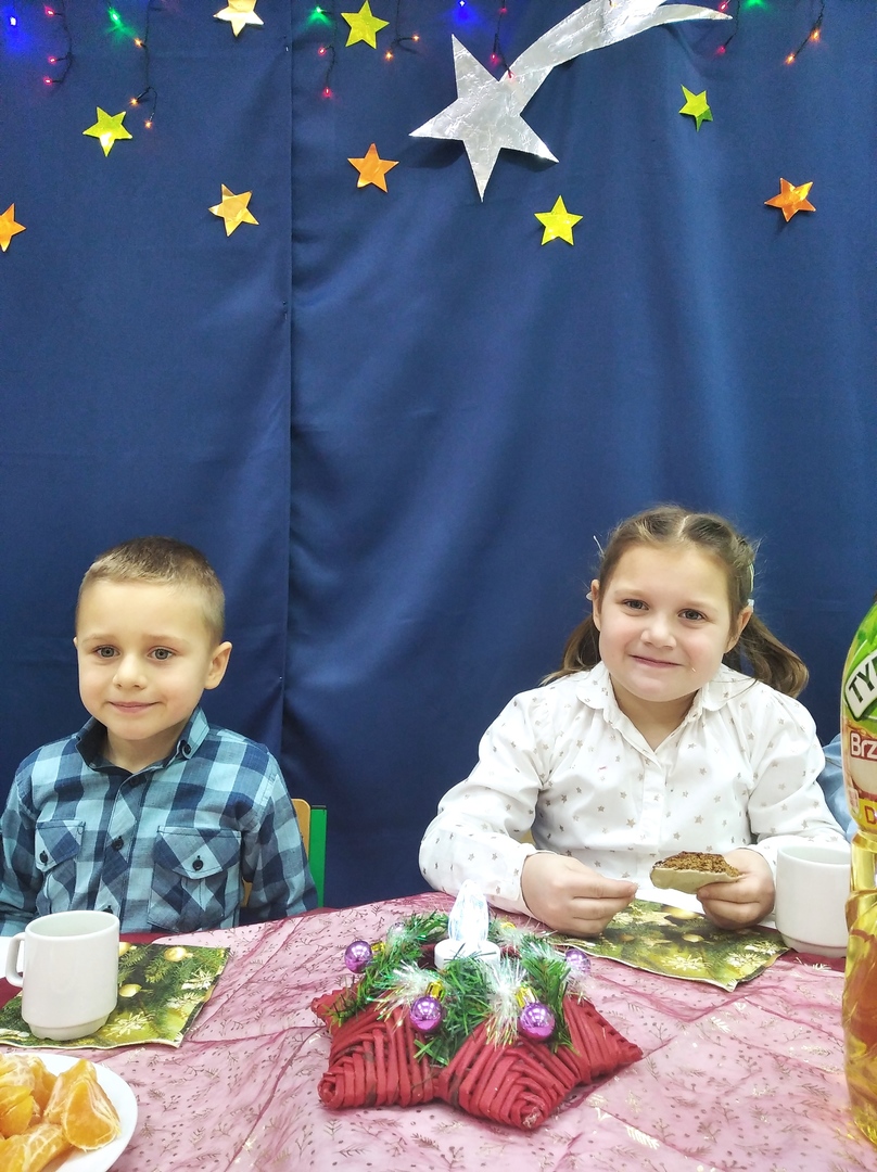 W sali przedszkolnej odświętnie ubrane przedszkolaki wysłuchały życzeń, które złożyły im panie wychowawczynie. Następnie wszyscy zasiedli do pięknie przystrojonych stołów. Nie zabrakło również wspólnego śpiewania kolęd i pastorałek.