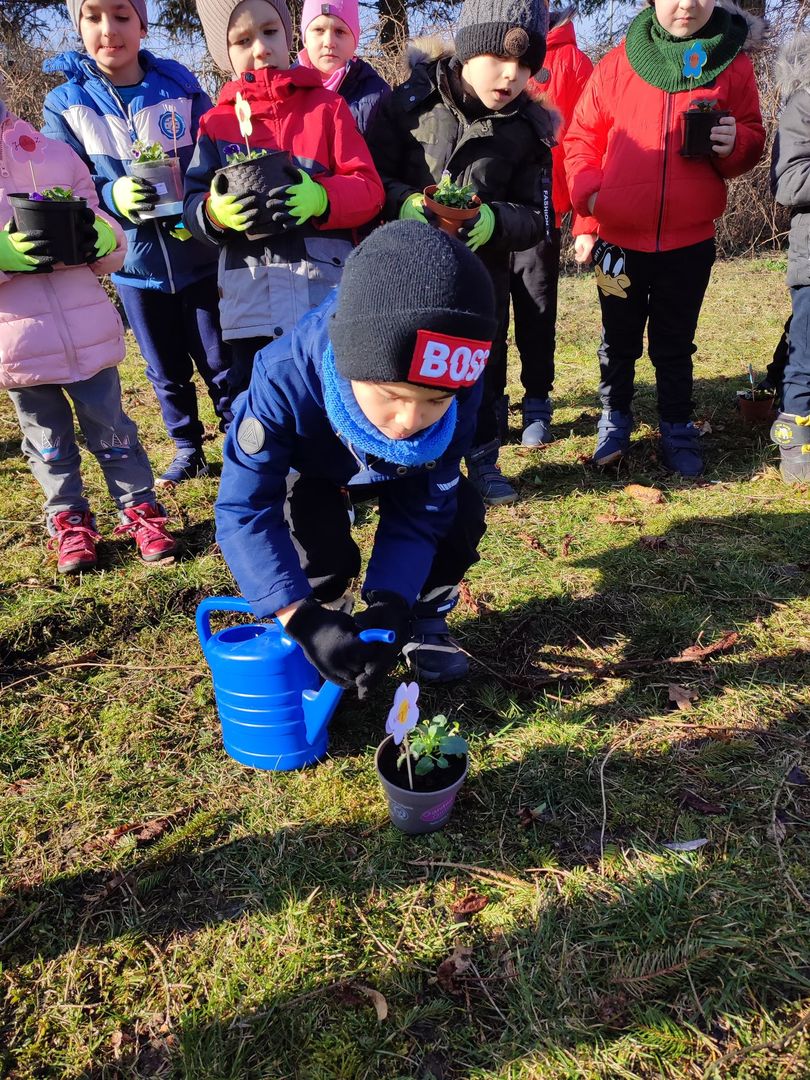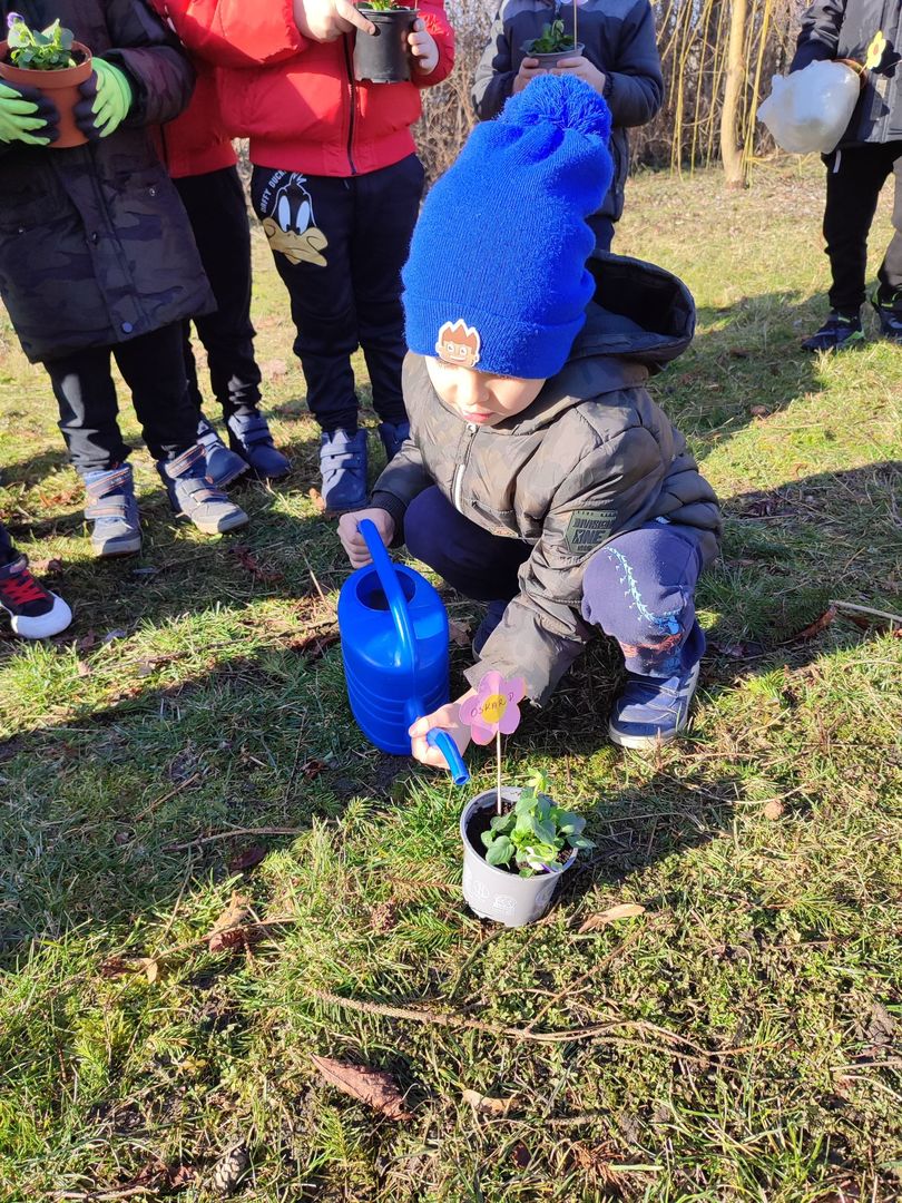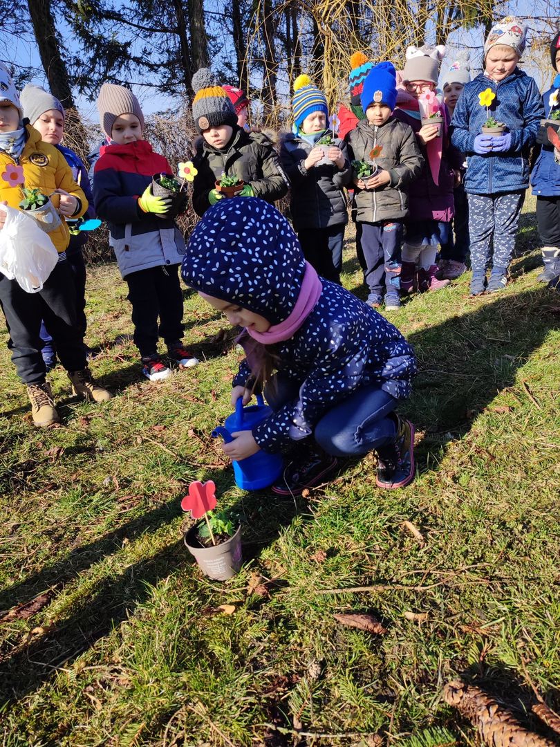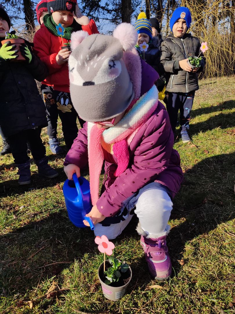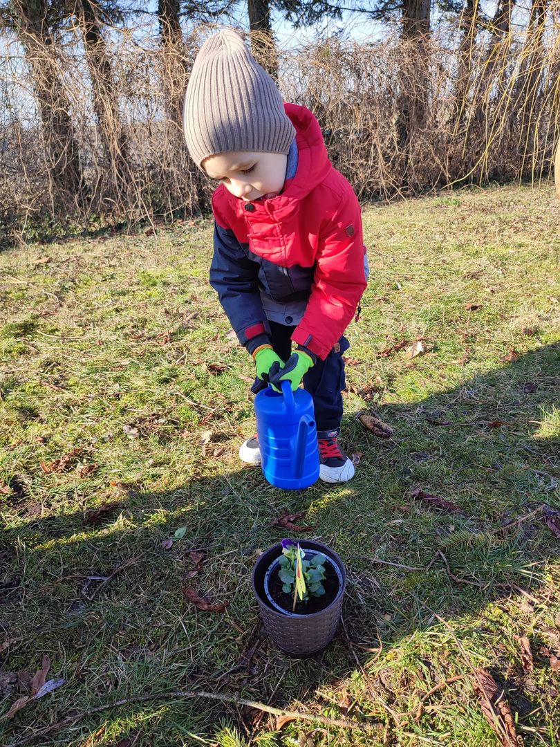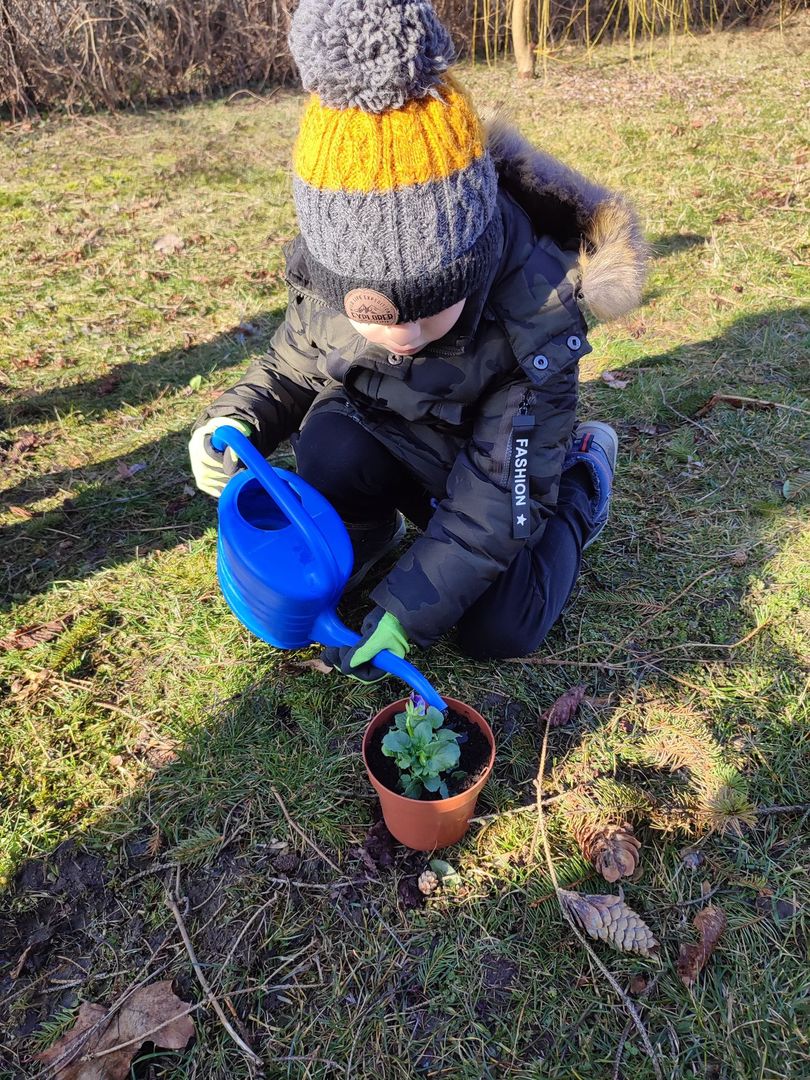 5 –latki w dniu dzisiejszym z niewielką pomocą pań posadziły wiosenne kwiatki - bratki. Celem zajęć było między innymi poszerzenie wiadomości na temat warunków niezbędnych do rozwoju roślin. Mali ogrodnicy nie spodziewali się, że tyle radości może im sprawić sadzenie kwiatków. Dzieci zabierając bratki do domu zobowiązały się codziennej pielęgnacji poprzez podlewanie i doglądanie.