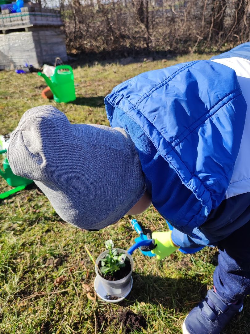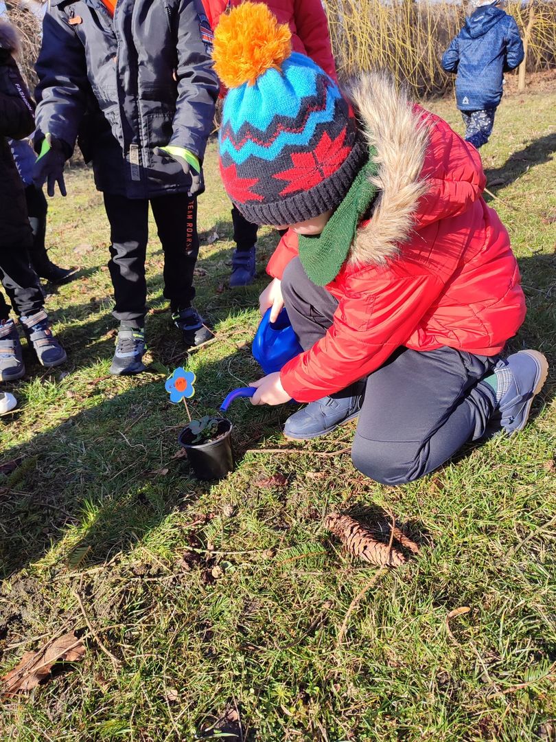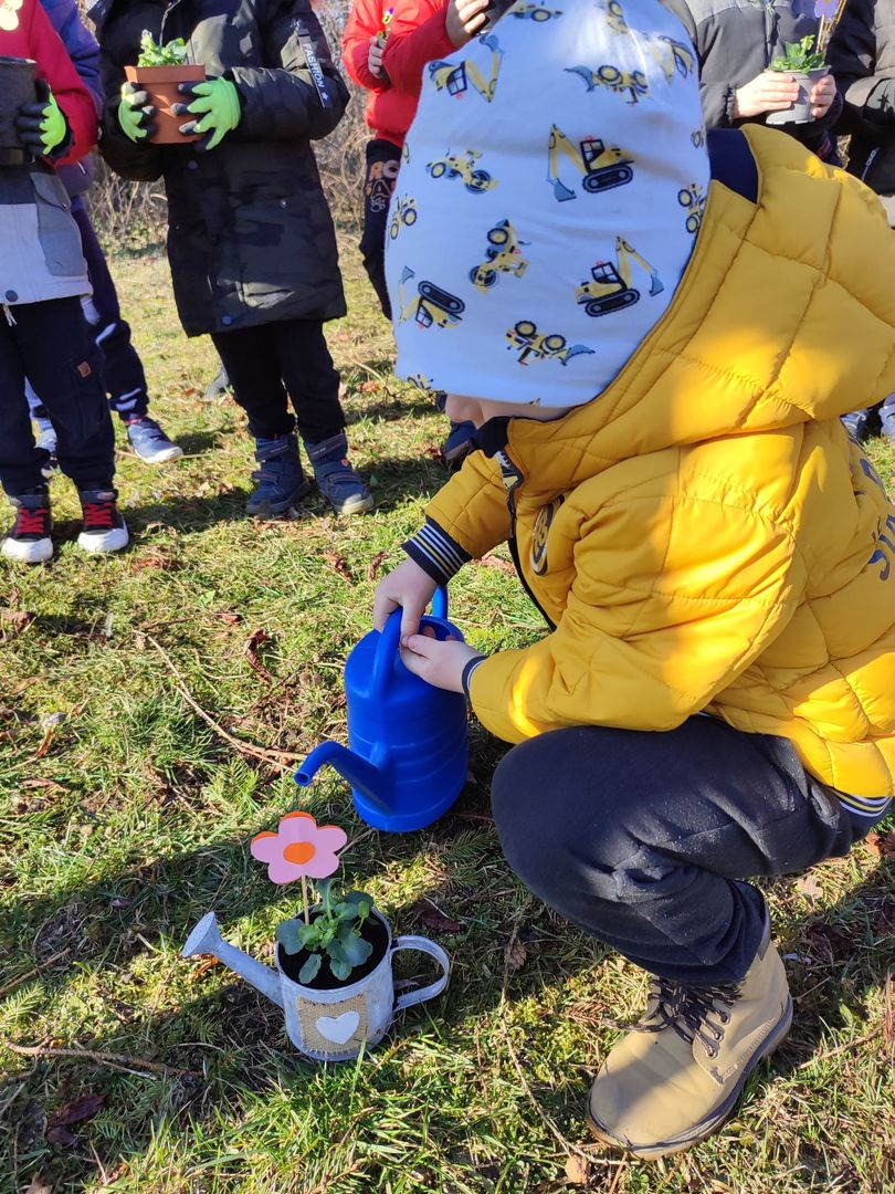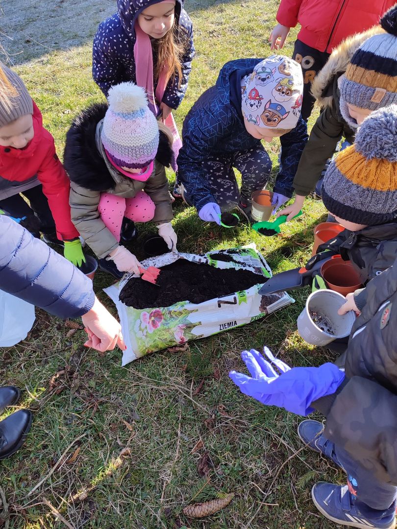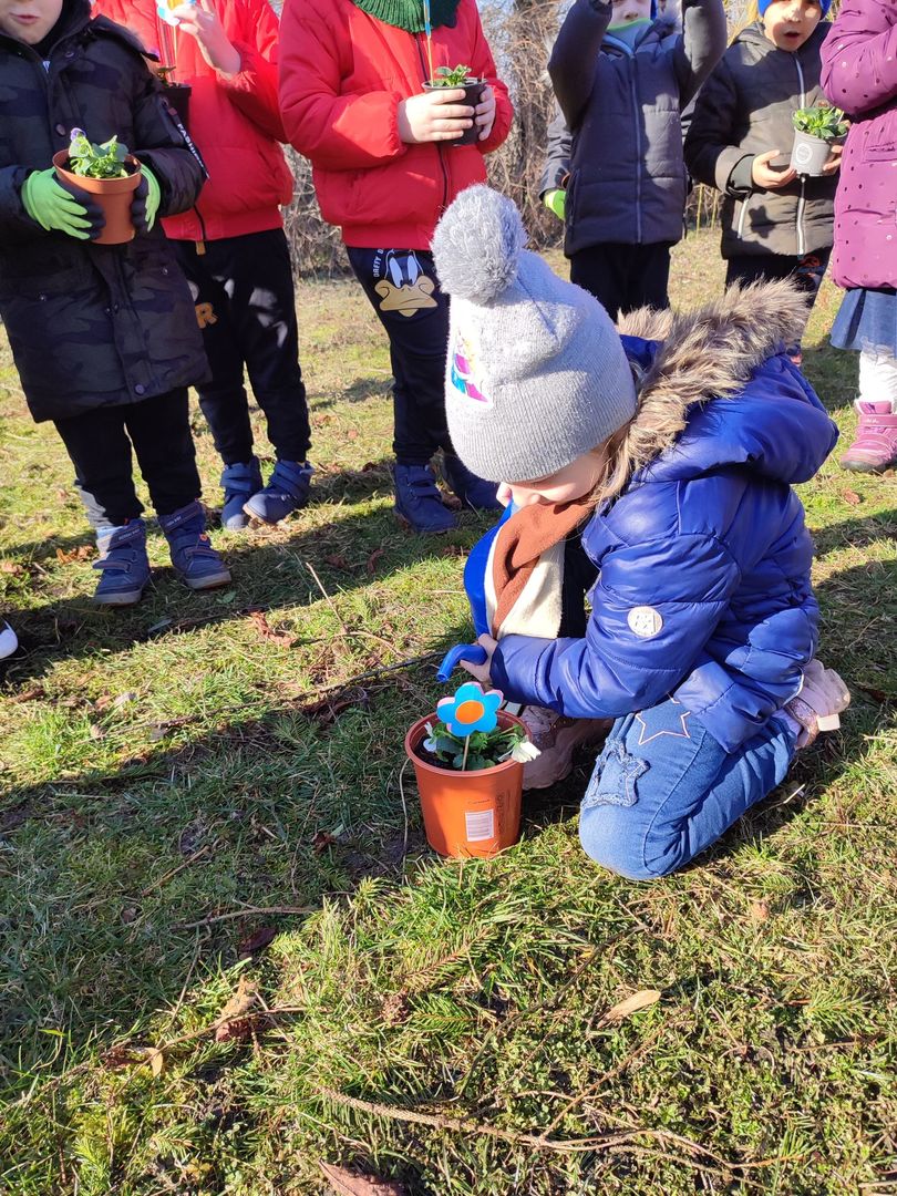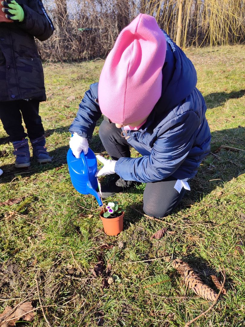 5 –latki w dniu dzisiejszym z niewielką pomocą pań posadziły wiosenne kwiatki - bratki. Celem zajęć było między innymi poszerzenie wiadomości na temat warunków niezbędnych do rozwoju roślin. Mali ogrodnicy nie spodziewali się, że tyle radości może im sprawić sadzenie kwiatków. Dzieci zabierając bratki do domu zobowiązały się codziennej pielęgnacji poprzez podlewanie i doglądanie.