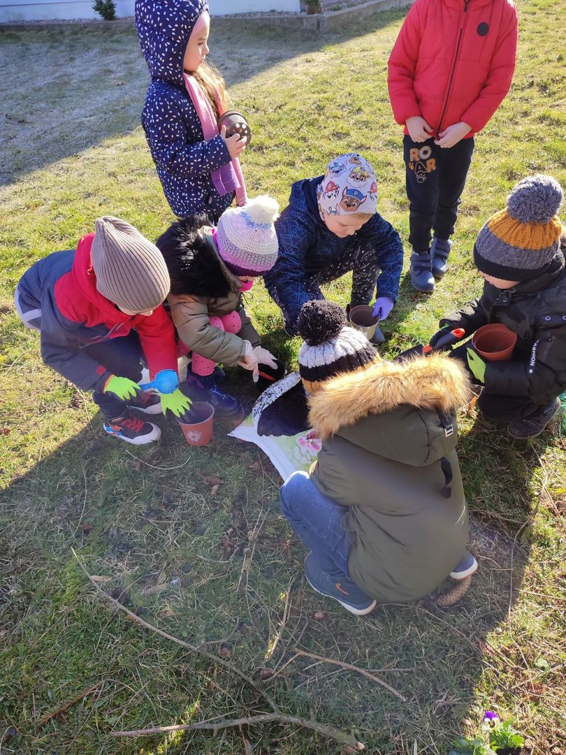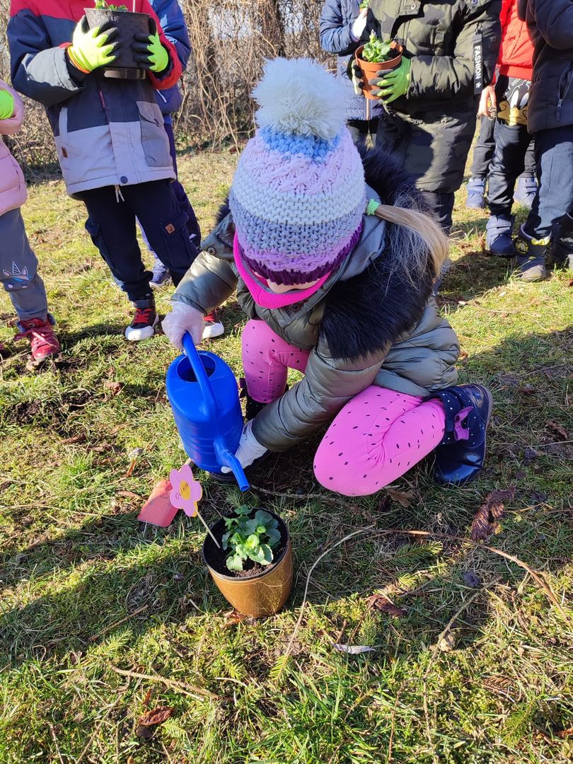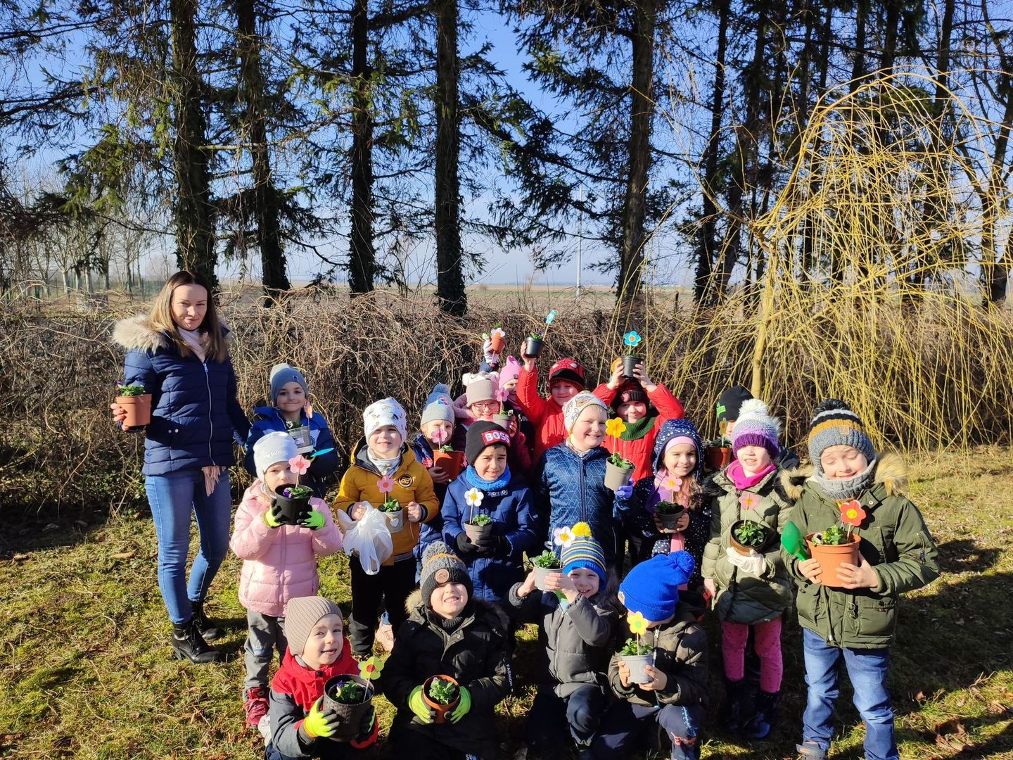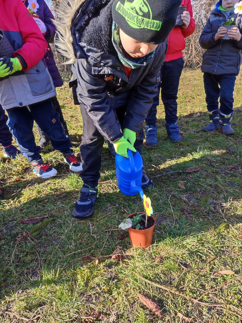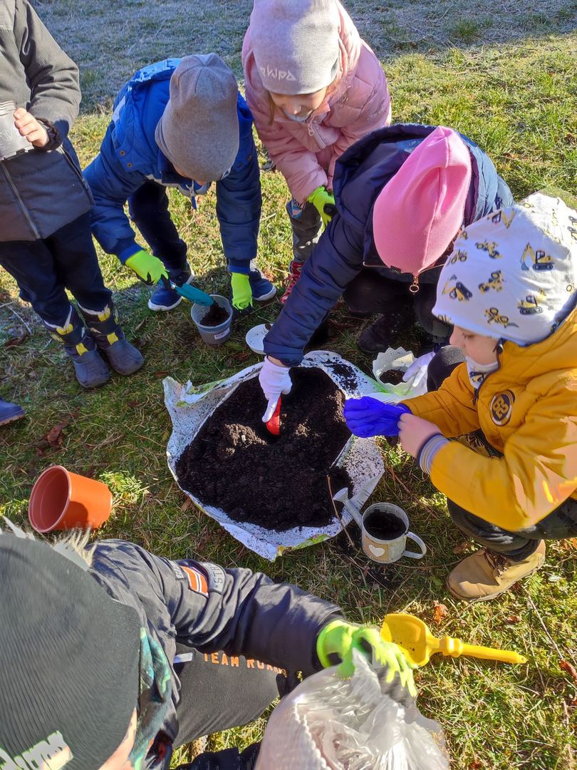 5 –latki w dniu dzisiejszym z niewielką pomocą pań posadziły wiosenne kwiatki - bratki. Celem zajęć było między innymi poszerzenie wiadomości na temat warunków niezbędnych do rozwoju roślin. Mali ogrodnicy nie spodziewali się, że tyle radości może im sprawić sadzenie kwiatków. Dzieci zabierając bratki do domu zobowiązały się codziennej pielęgnacji poprzez podlewanie i doglądanie.