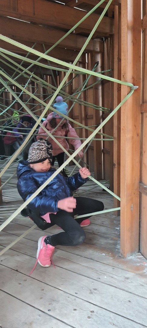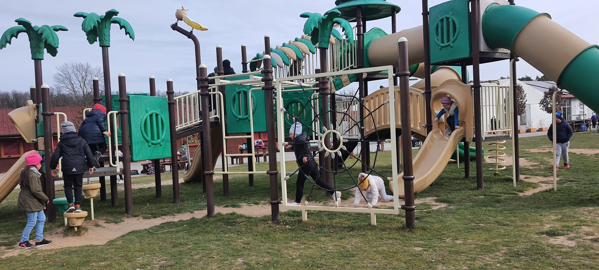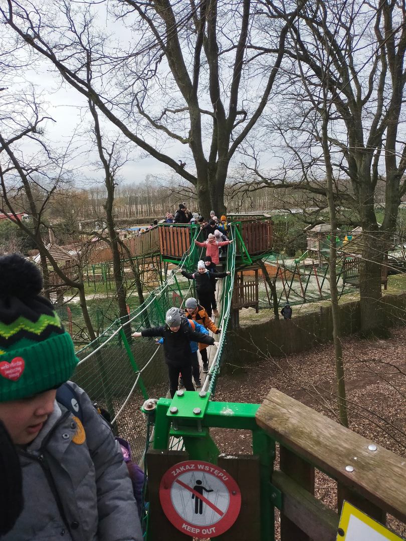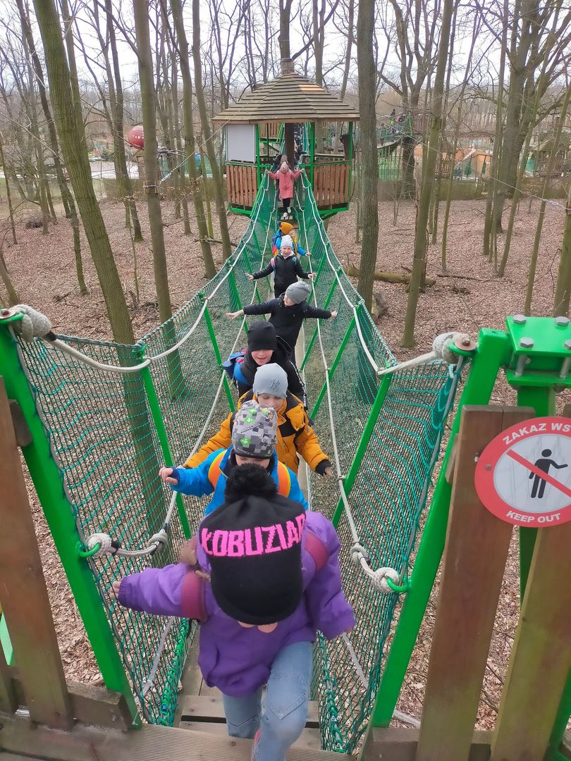 Skorzystaliśmy również z małpiego gaju, a także zabawy na zewnętrznych placach zabaw. Mimo niesprzyjającej pogody mali poszukiwacze przygód doskonale się bawili. Zmęczeni, ale zadowoleni bezpiecznie wróciliśmy do szkoły.