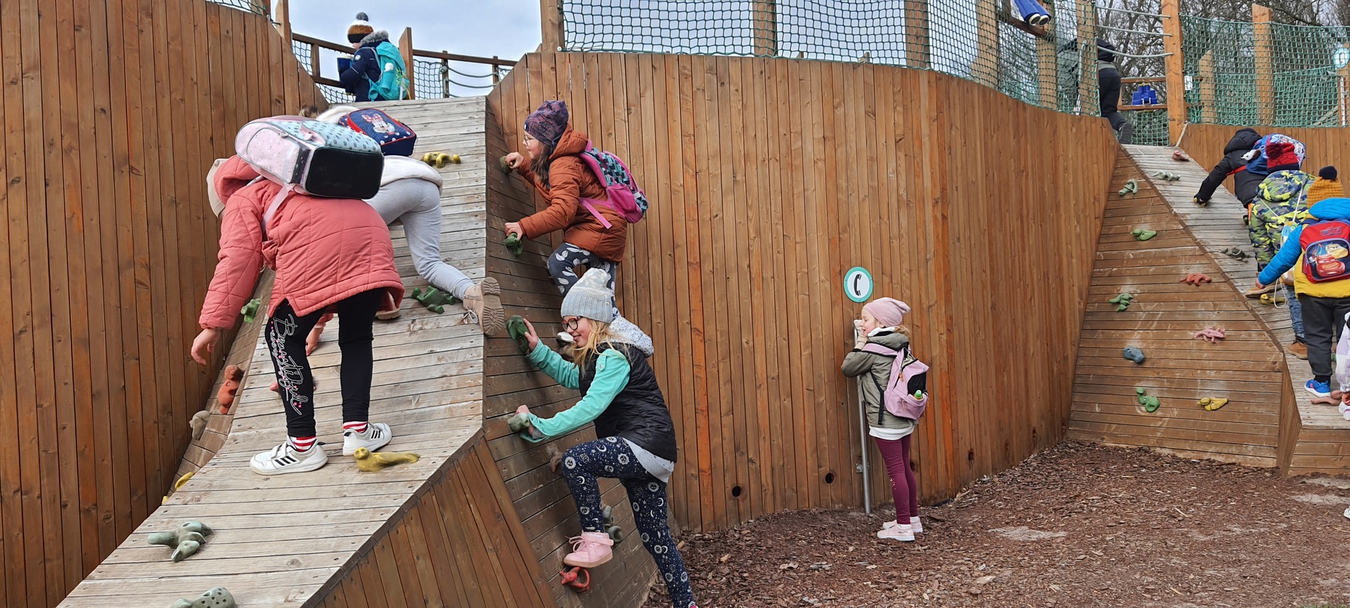 Na terenie parku czekało na dzieci mnóstwo atrakcji m.in. spacer w towarzystwie zwierząt, które żyły w trwającej ponad milion lat epoce lodowcowej na terenie Wielkopolskiego Parku Narodowego i jego okolic takich jak mamut, nosorożec włochaty czy tur. Mogliśmy również zobaczyć jak wygląda świat oczami kozioroga dębosza, jelonka rogacza poznać niesamowity świat gigantycznych owadów. Wielkim przeżyciem było przejście podniebnej Eko Wioski. To 250 metrów tras wiodących wśród drzew: domki, tarasy, wiszące mosty i tajemnicze przejścia. Tarasy widokowe na ścieżce zawierały tablice edukacyjne, zagadki, łamigłówki.