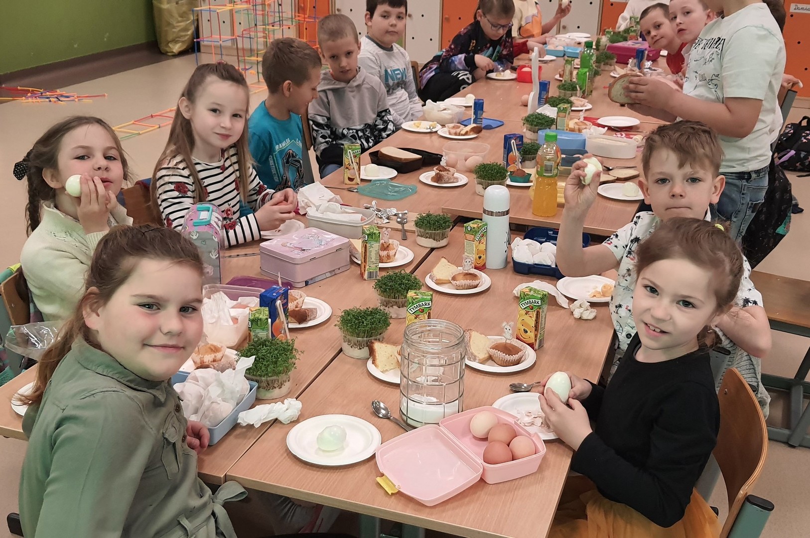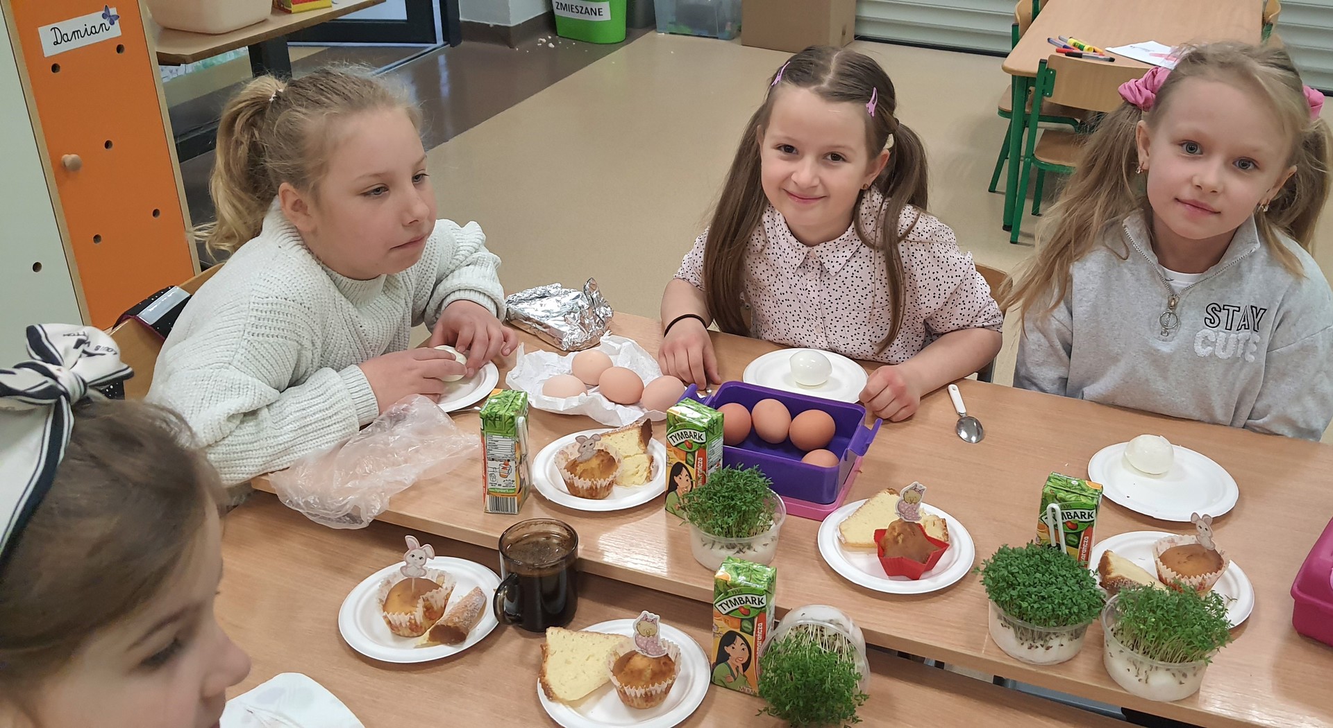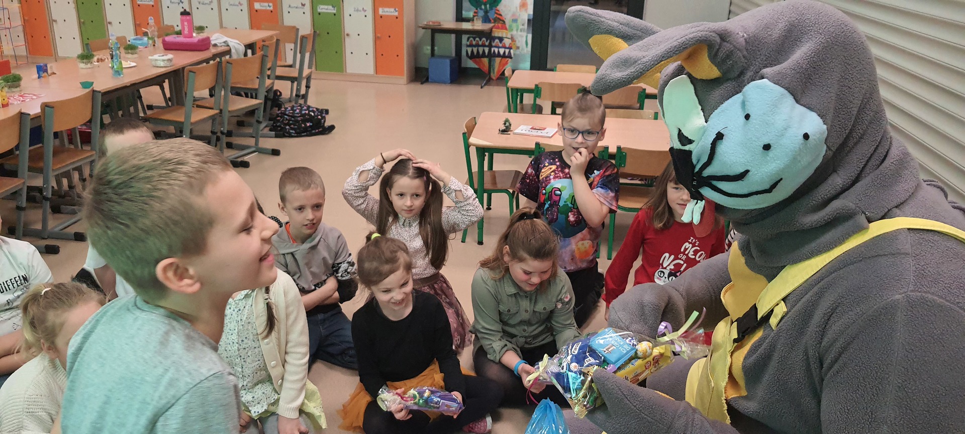 Ostatni dzień przed świętami wielkanocnymi obfitował w uroczyste spotkania klasowe. Nie zabrakło kolorowych pisanek, smacznych jajek i oczywiście podarónków od ZAJĄCZKA.
