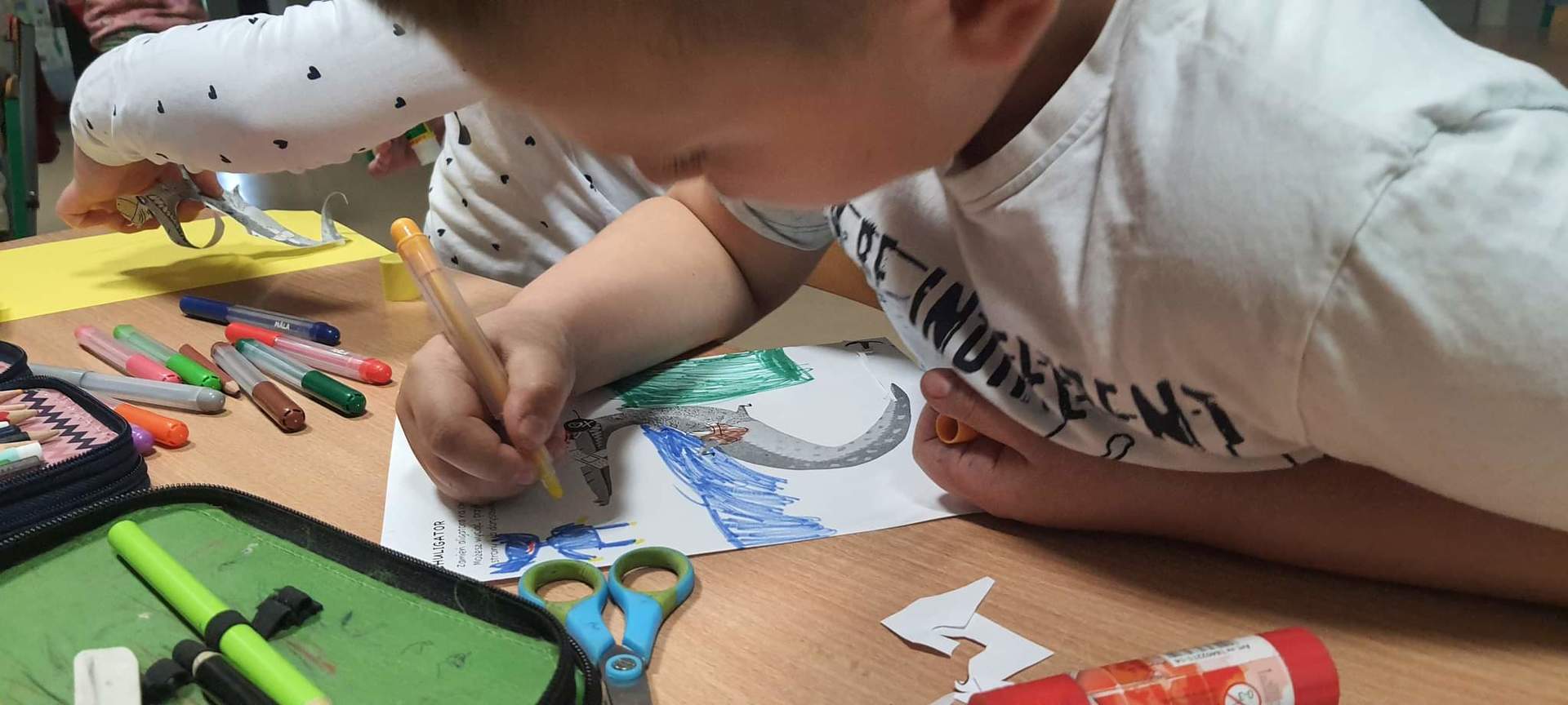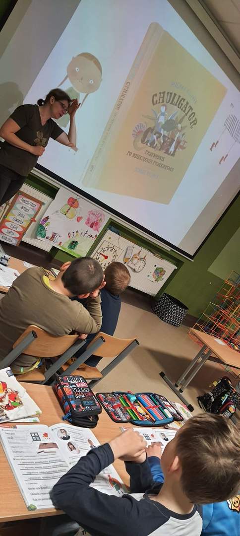 W kwietniu w ramach projektu czytelniczego spotkaliśmy się na kolejnych zajęciach zarówno z klasą 1 i 2, jak i przedszkolakami z najmłodszych grup. Tym razem pierwszaki podjęły się próby rozszyfrowania trudnego słowa CHULIGATOR. Cóż to jest? Pomysłów było wiele... Natomiast według autora książki Chuligator, czyli przewodnik po dziecięcych przekrętach, Michała Rusinka niestrudzonego tropiciela tajemnic naszego języka, świata słów przekręcanych, łamanych i sklejanych od nowa jest to połączenie aligatora z chuliganem. Dzieci tworzyły własne CHULIGOTORY, odnajdywały ukryte słowa a przede wszystkim świetnie się bawiły. Drugoklasiści wybrali się w podróż latającym dywanem. Zaprojektowali własne latające dywany, opracowali zasady poruszania się oraz zasady bezpieczeństwa obowiązujące na tymże pojeździe latającym. W podróż wyruszyli w Zakazane miejsca na świecie. Podróże magicznym dywanem, Patricka Makina. Dotarli nad wulkan Arenal, dowiedzieli się o trzech stanach wulkanów oraz stworzyli swoje własne wulkany. Przedszkolaki, jak zawsze chętnie uczestniczyły w zajęciach poznając przygody kolejnych zwierząt gospodarskich. Po "Koniku Figaro", "Krówce Matyldzie" przyszedł czas na "Świnkę Malinkę". Odwiedzili także nasza szkolną bibliotekę oraz Bibliotekę Publiczną w Obornikach. Kolejne przygody z książkami już niebawem.