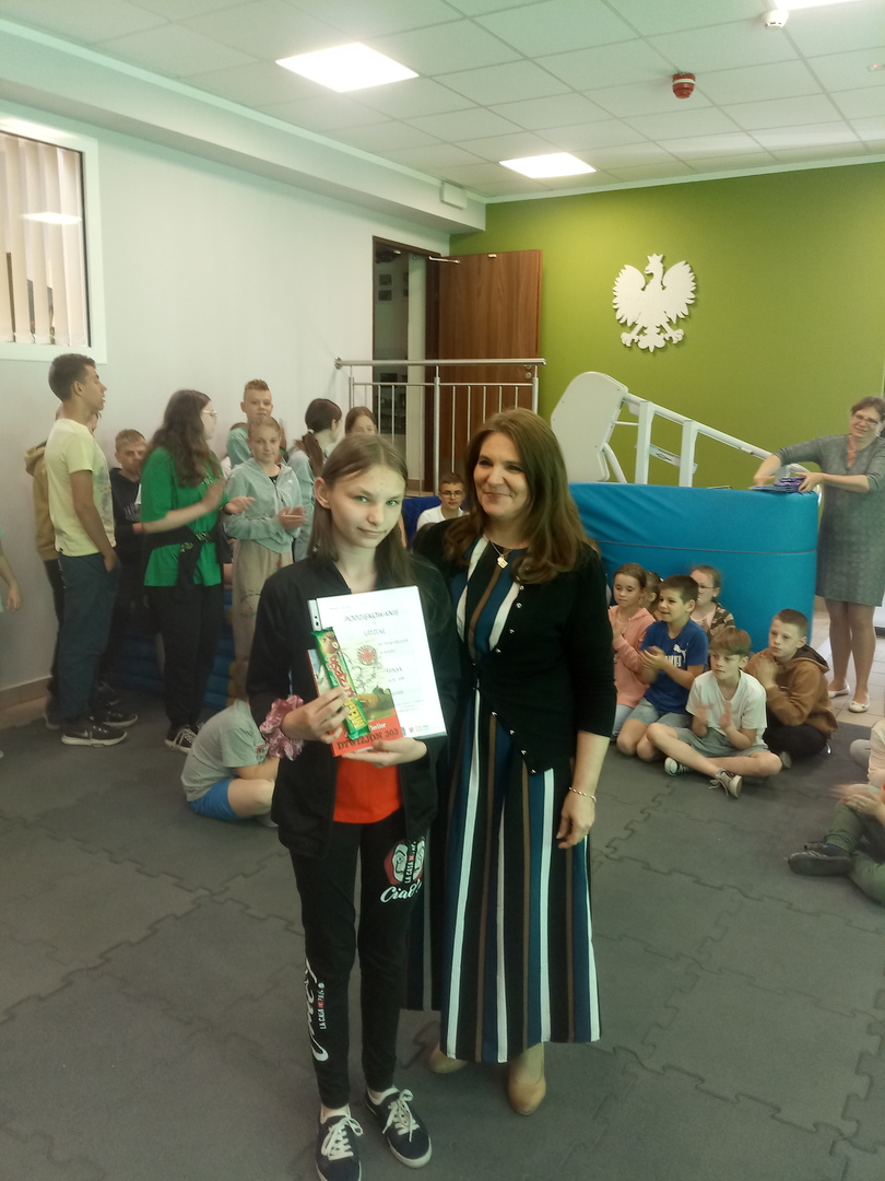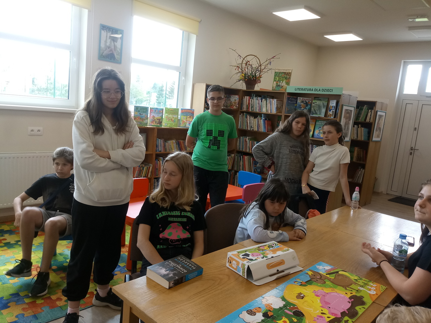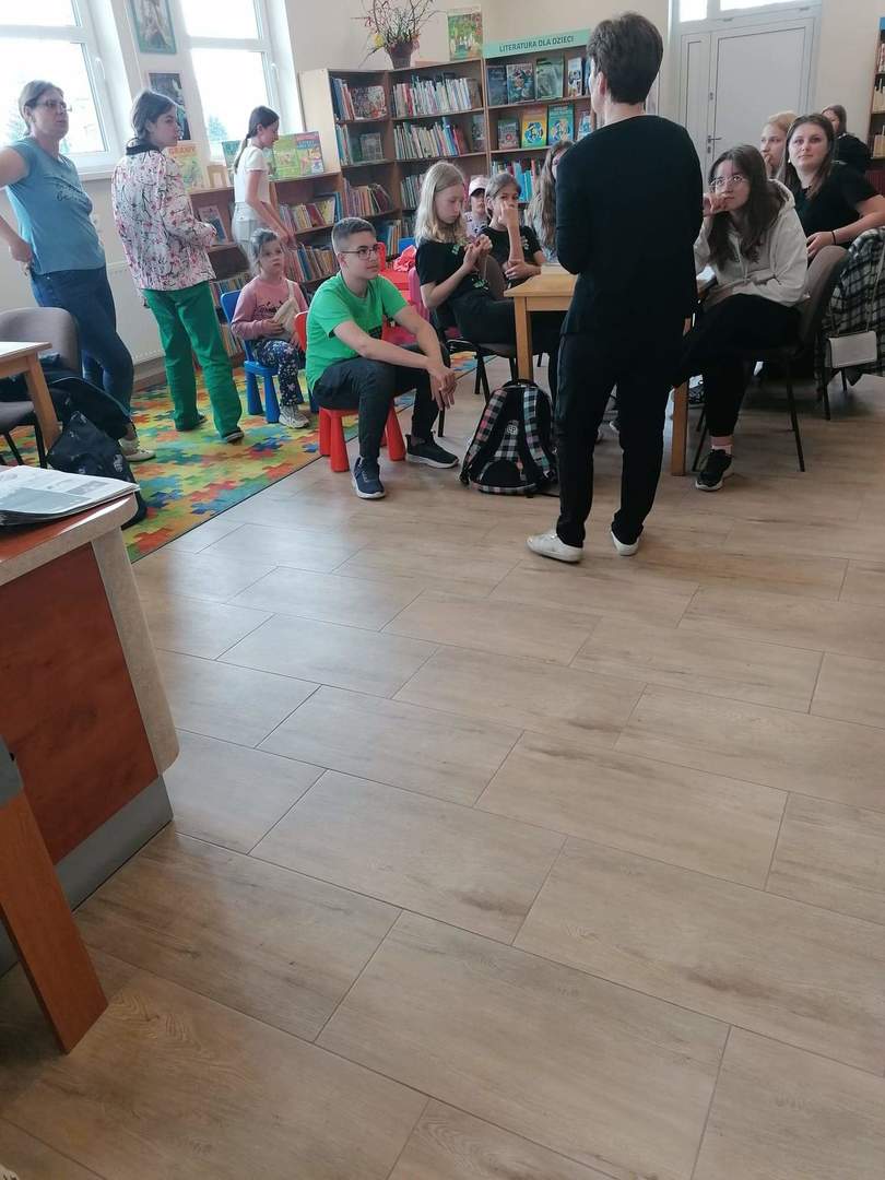 Jak co roku w maju obchodziliśmy Tydzień Bibliotek, był to czas wykorzystany przez nasze Panie z biblioteki na promocję czytelnictwa. W ramach naszego szkolnego Tygodnia Bibliotek zorganizowany został konkurs na wierszyk/rymowankę zachęcającą do czytania i odwiedzania biblioteki. Spośród dostarczonych prac na wyróżnienie zasłużyły dwa wiersze uczennic z klasy 5 Julii Dachtery i Moniki Jankowiak oraz rymowanka ucznia klasy 6 Jakuba Waszkowiaka, a także krótkie hasło autorstwa Pauliny Grajek uczennicy klasy 6. Wręczone zostały również podziękowania dla uczniów naszej, którzy brali udział w gminnym konkursie fotograficznym pt. "Ubierz się w książkę". Dyplomy otrzymali Stanisław Górowski, Julia Izychart, Wiktoria Izychart, Kacper Izychart oraz Wiktoria Hancyk. Na zakończenie tegorocznej edycji Tygodnia Bibliotek odbyło się spotkanie z Panią Wiolettą Baum z Biblioteki Publicznej w Ocieszynie. Podczas zajęć zostały nam zaprezentowane zbiory biblioteki oraz krótka historia tejże placówki. Wszystkim uczestnikom serdecznie dziękujemy i zapraszamy na nasze kolejne akcje.